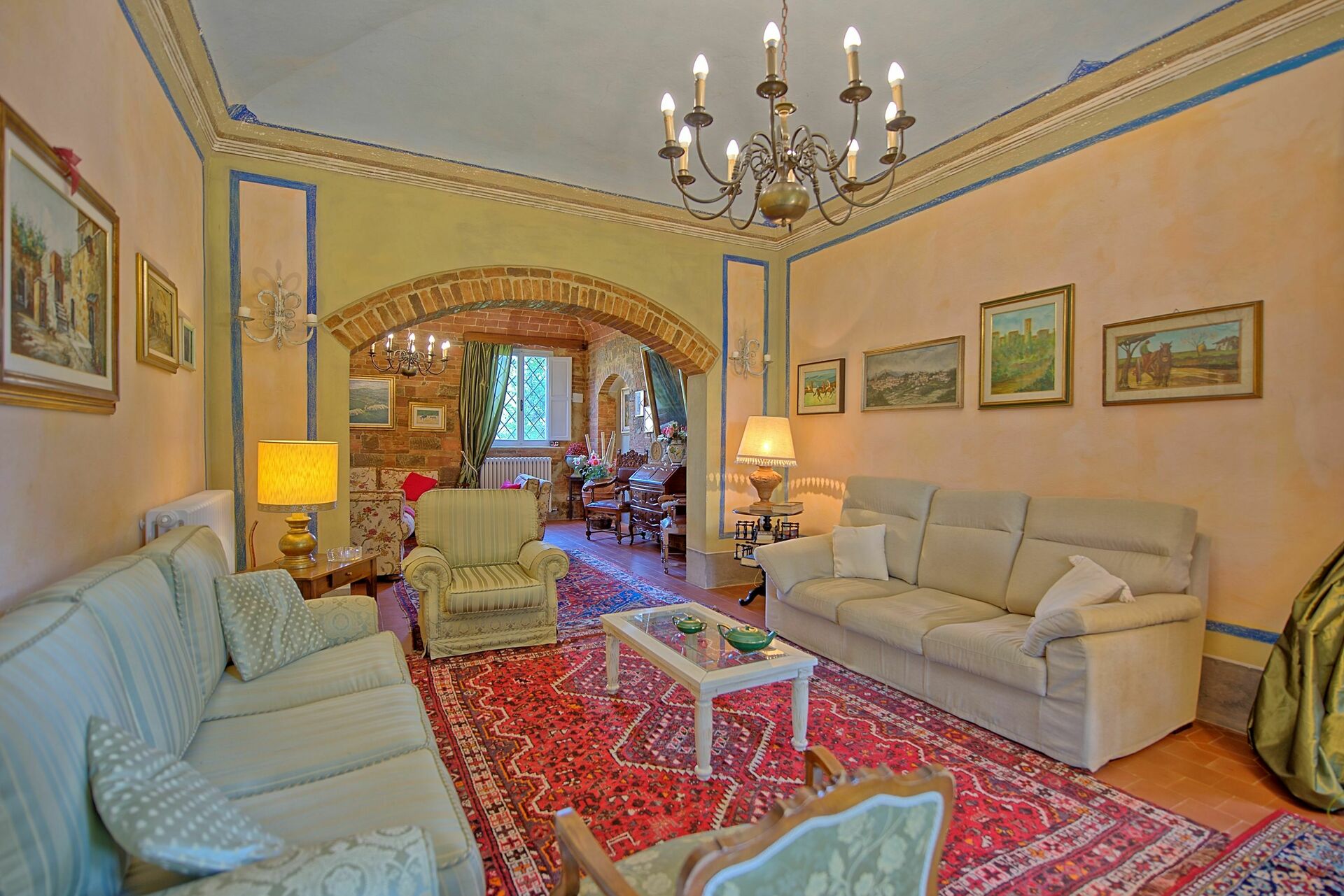 De villa is onlangs gerestaureerd met behoud van de oorspronkelijke architectonische kenmerken en is veranderd in een gastvrije landelijke vakantievilla met 10 slaapkamers op 3 verdiepingen. Het interieur is smaakvol ingericht in een rustieke stijl.