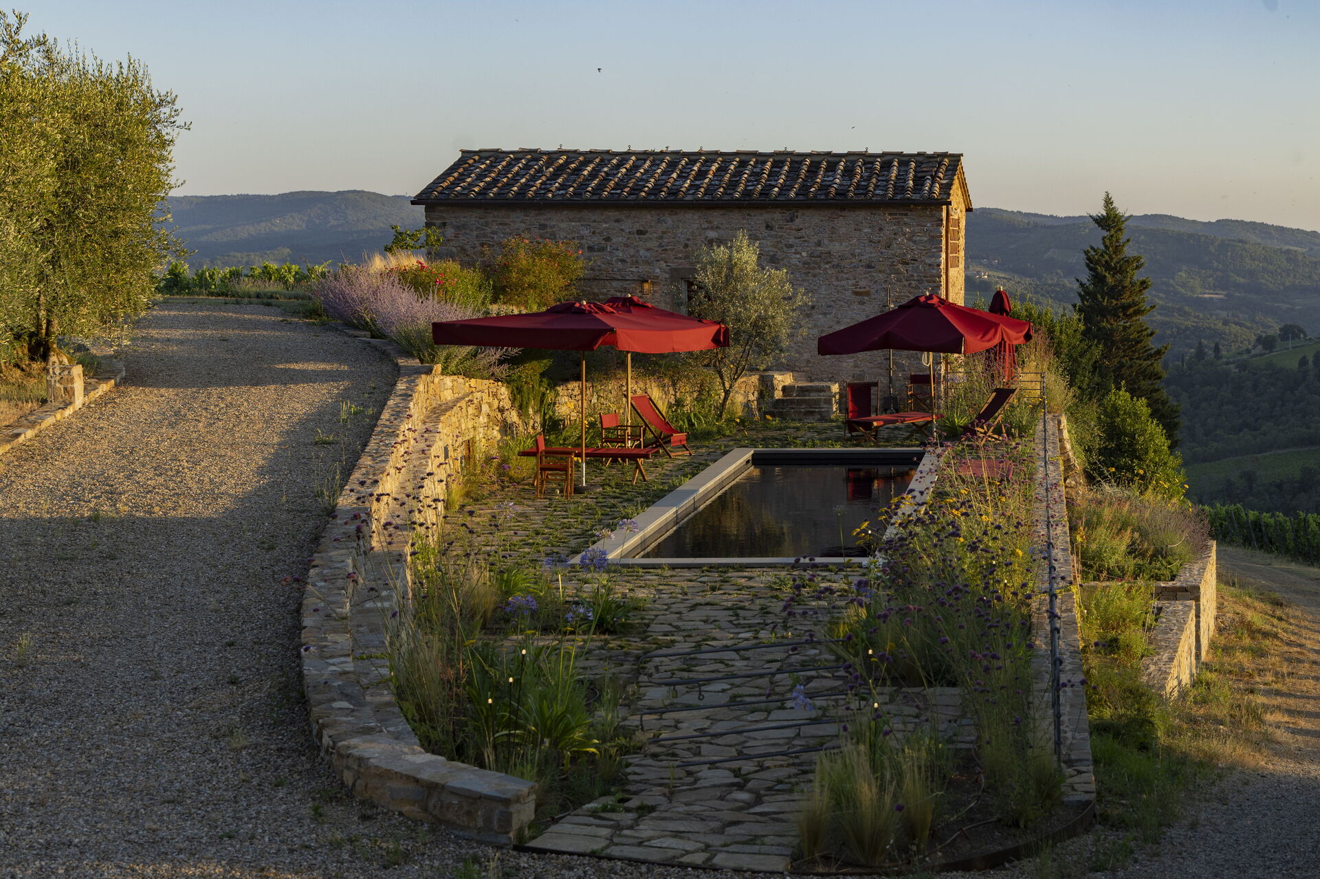 Op het terrein is er een privézwembad met een benijdenswaardig panoramisch uitzicht over de glooiende heuvels met wijngaarden die kenmerkend zijn voor de Chianti Classico, wereldwijd bekend om zijn landschap, zijn wijnen en zijn olijfolie van de hoogste kwaliteit.