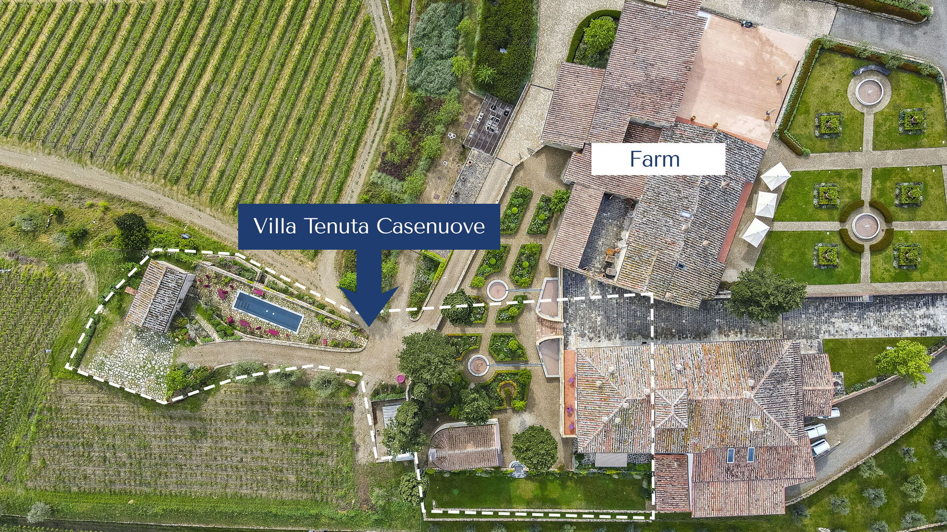 Villa Tenuta Casenuove ligt op een gerenommeerd landgoed met 135 hectare wijngaarden en olijfgaarden. De eigenaren gebruiken de druiven voor de productie van Chianti Classico-wijn en grappa, en de olijven voor hun extra vierge olijfolie.