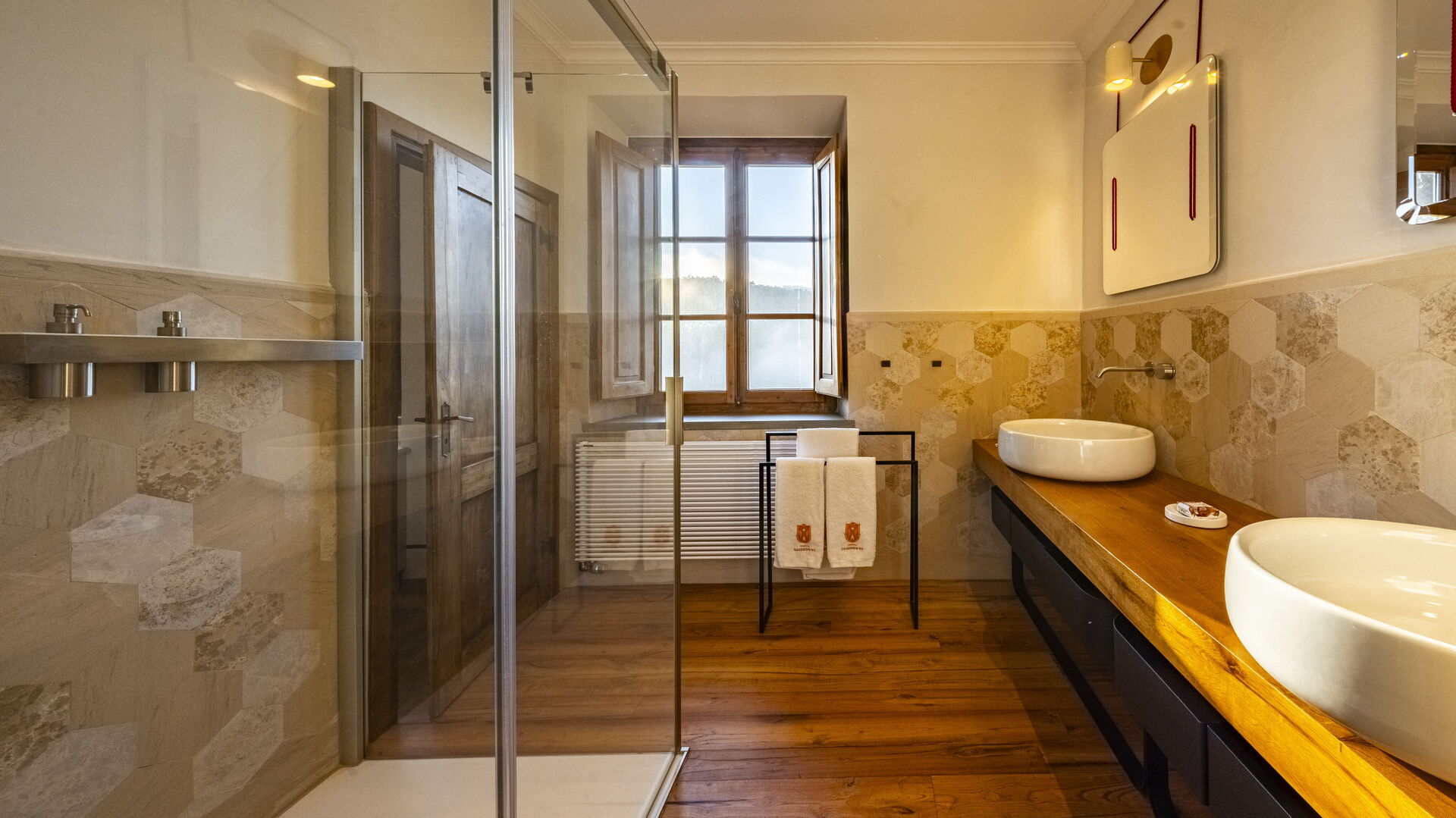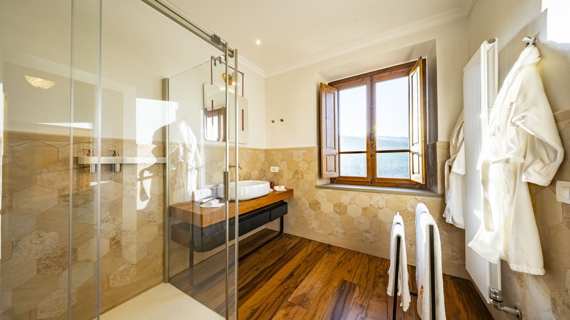 Vanaf de buitenruimtes kun je genieten van het natuurschoon en vind je ook verschillende zones waar gasten tijd kunnen doorbrengen met familie of vrienden: kom tot rust in de sauna op de verbouwde hooizolder, bij het zwembad (op verzoek verwarmbaar) of op het zonneterras. Alles om onvergetelijke momenten te beleven onder de Toscaanse zon.