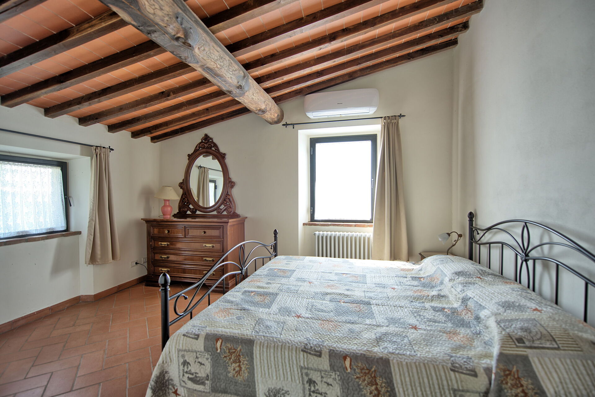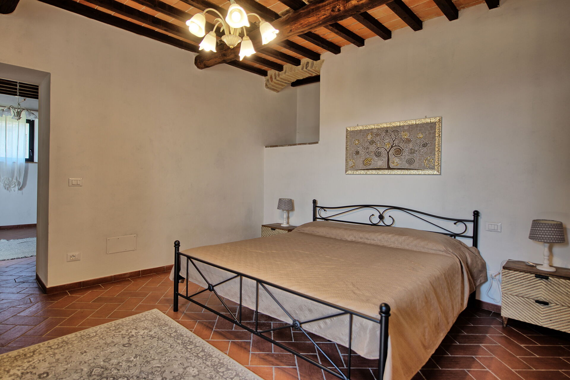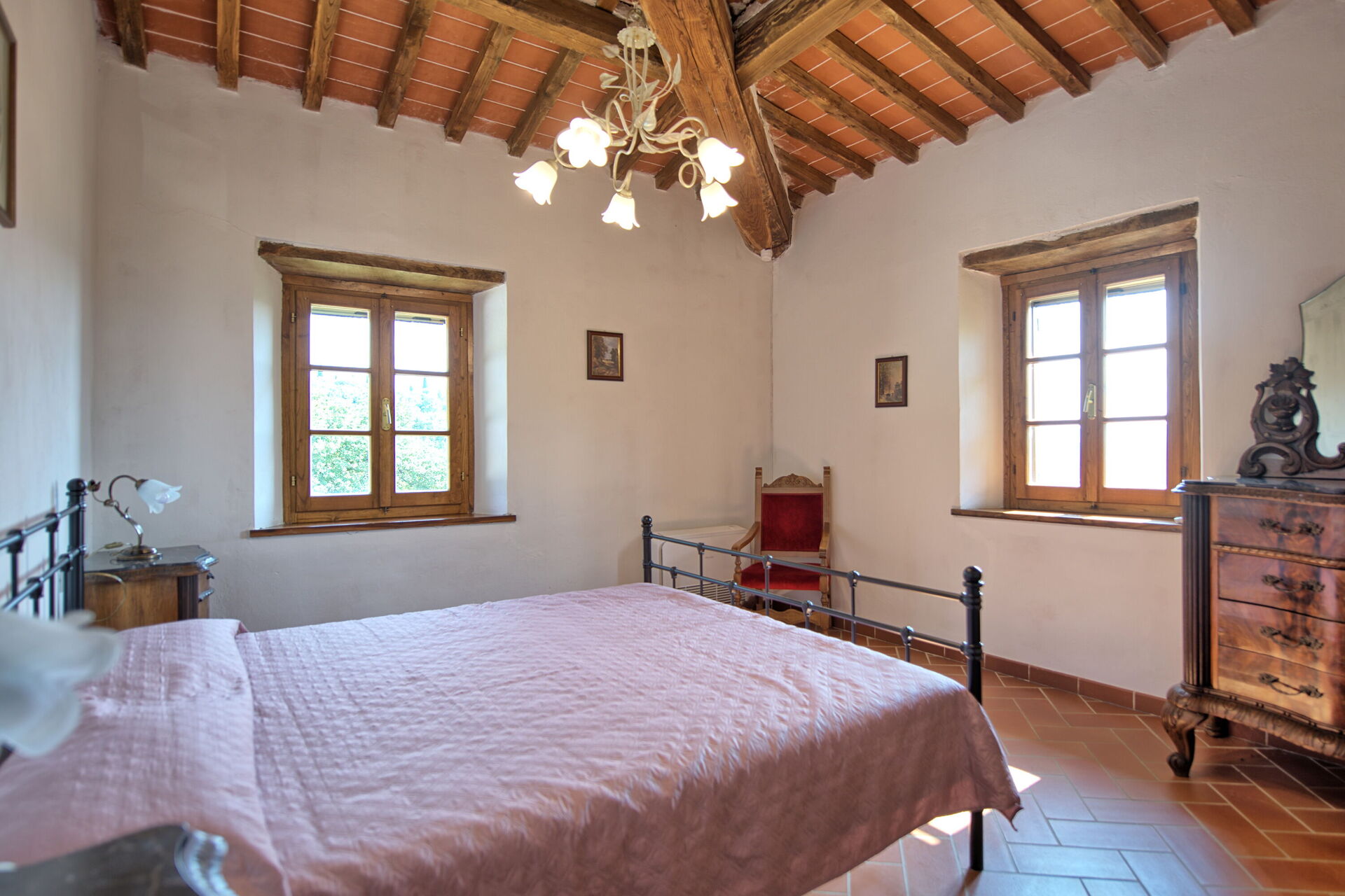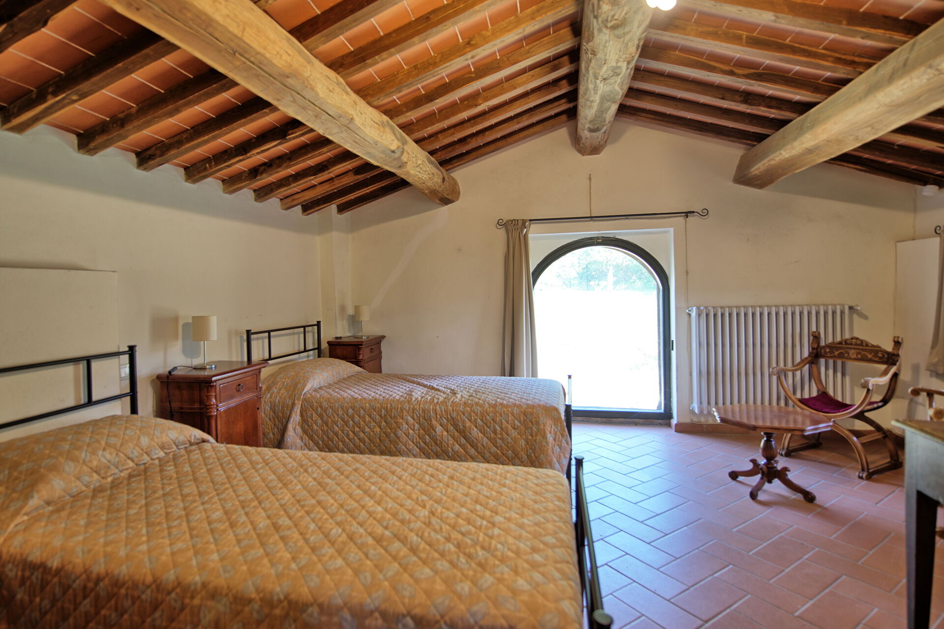 Querciolaia ligt tussen de glooiende heuvels van Chianti en Arezzo en biedt een prachtig uitzicht op wijngaarden, bossen en open velden. De woning bestaat uit een hoofdgebouw met vier slaapkamers en twee badkamers, samen met een aparte gastenverblijf op slechts een paar meter afstand, met twee extra slaapkamers en badkamers - ideaal voor gezinnen en groepen op zoek naar ruimte en privacy.