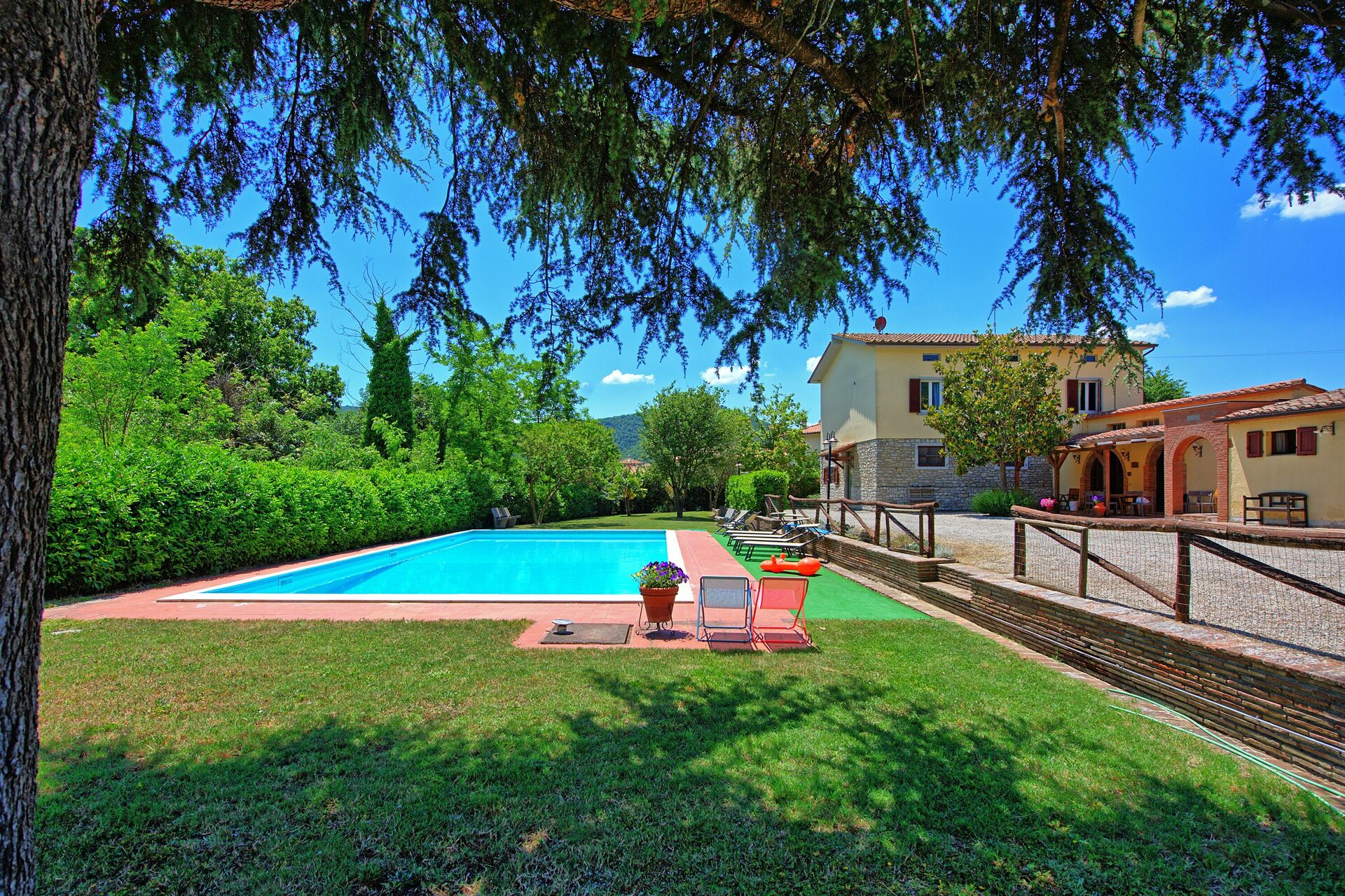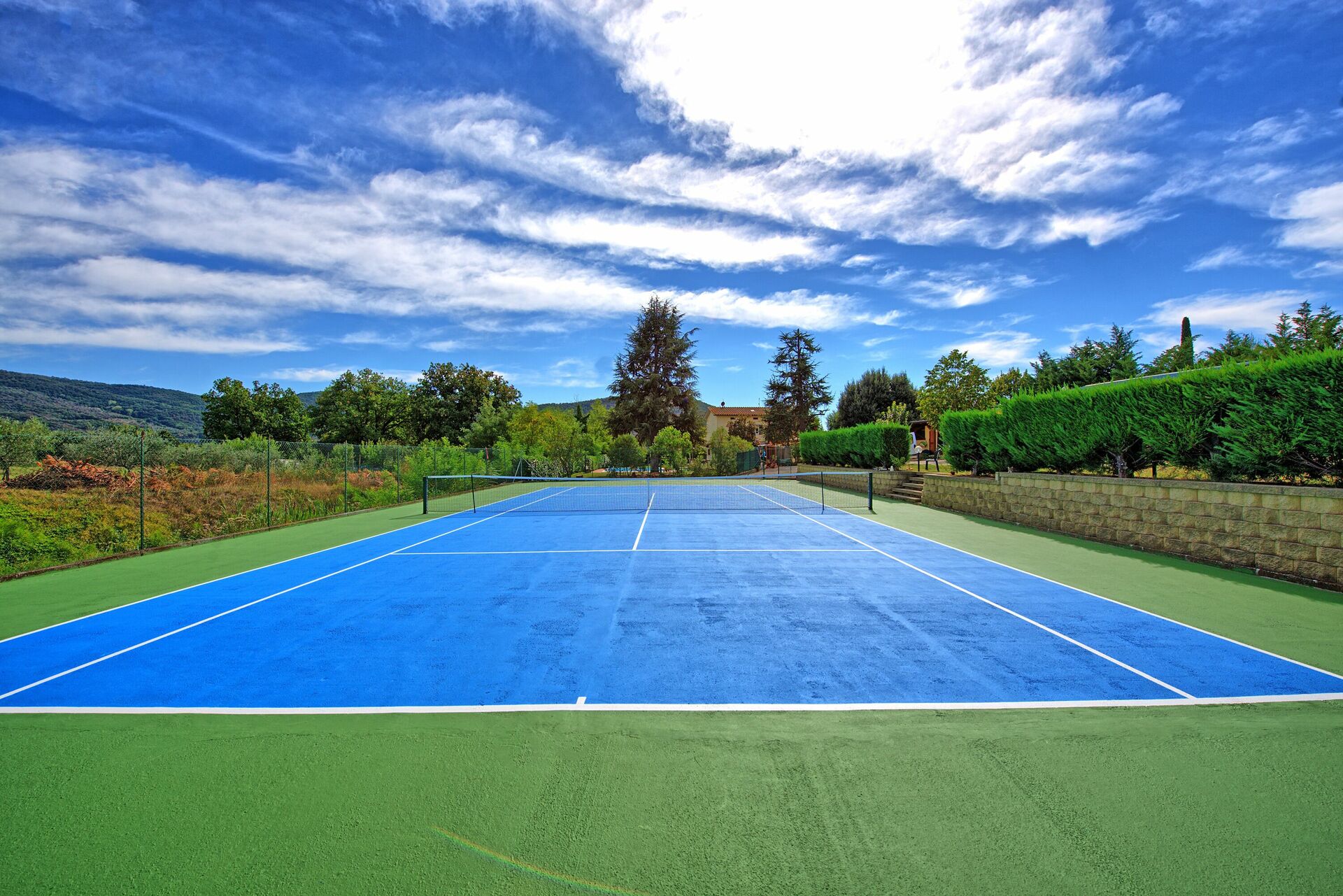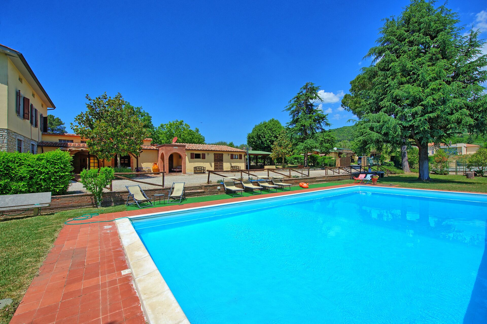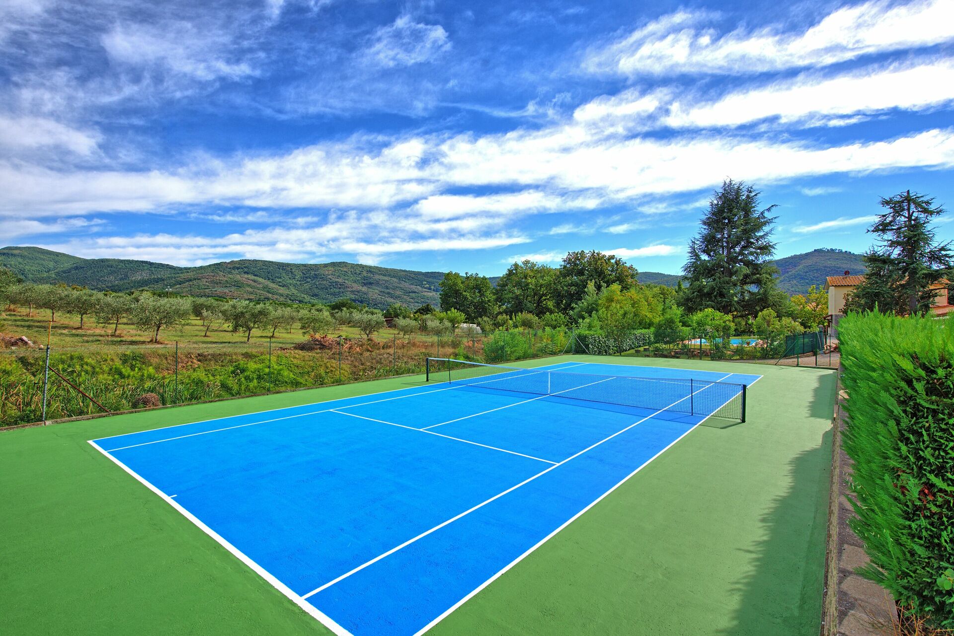 Very well located house in Tuscany. Everything is clean and user friendly. Pool is big enough + nice to have tennis court next to the house. The view on the hill is very charming