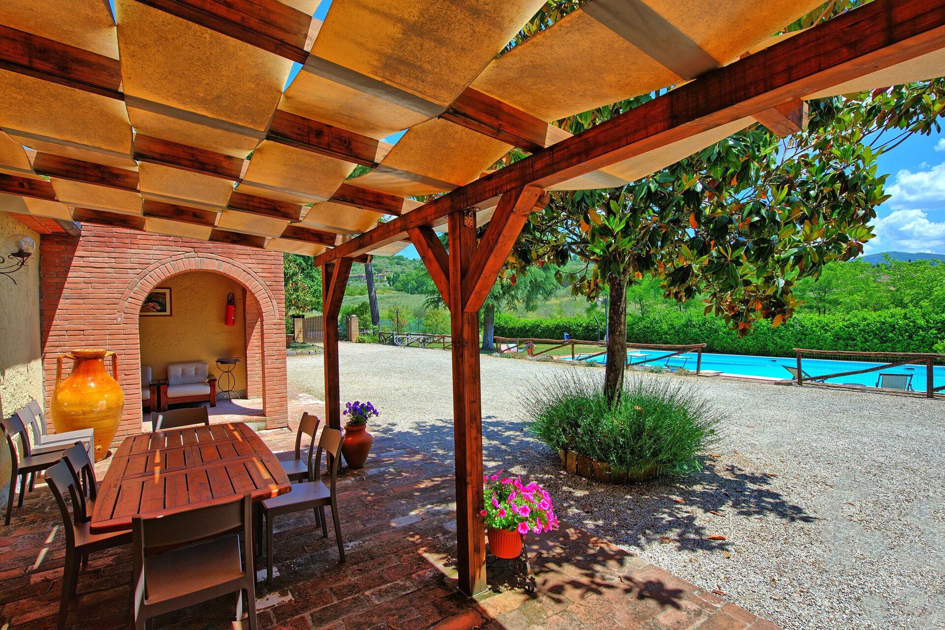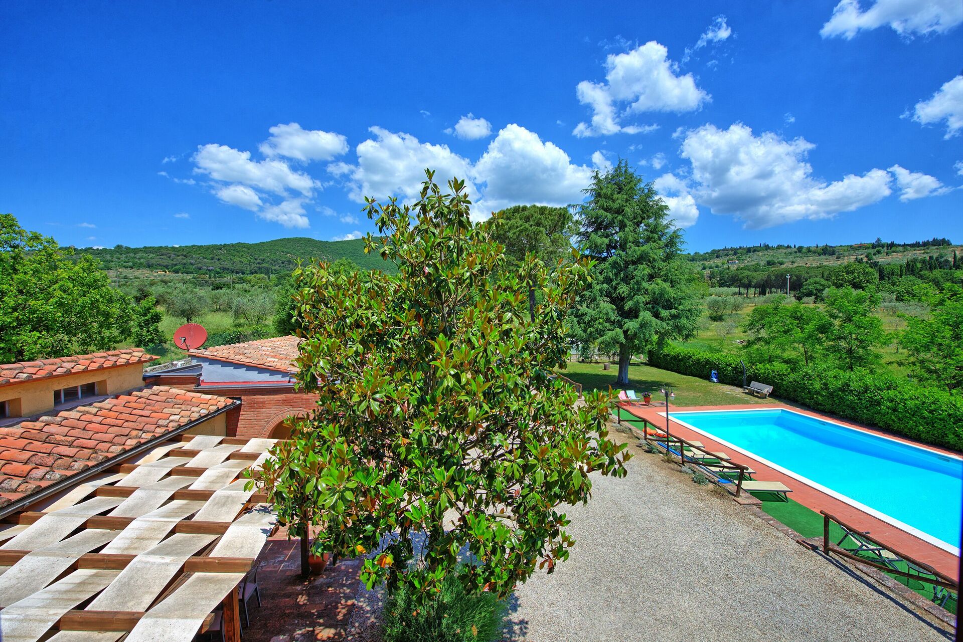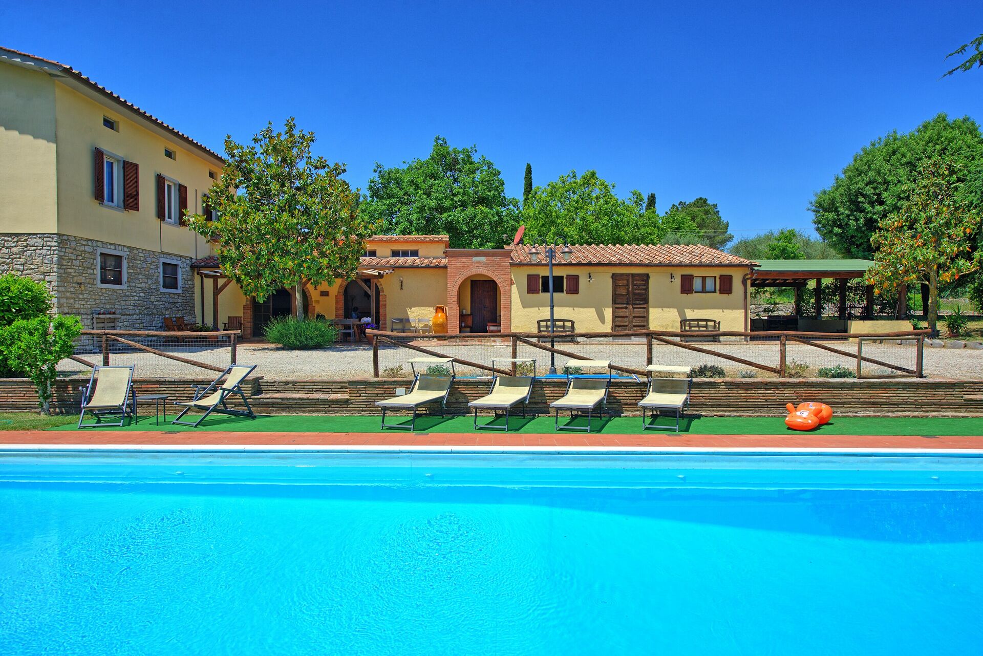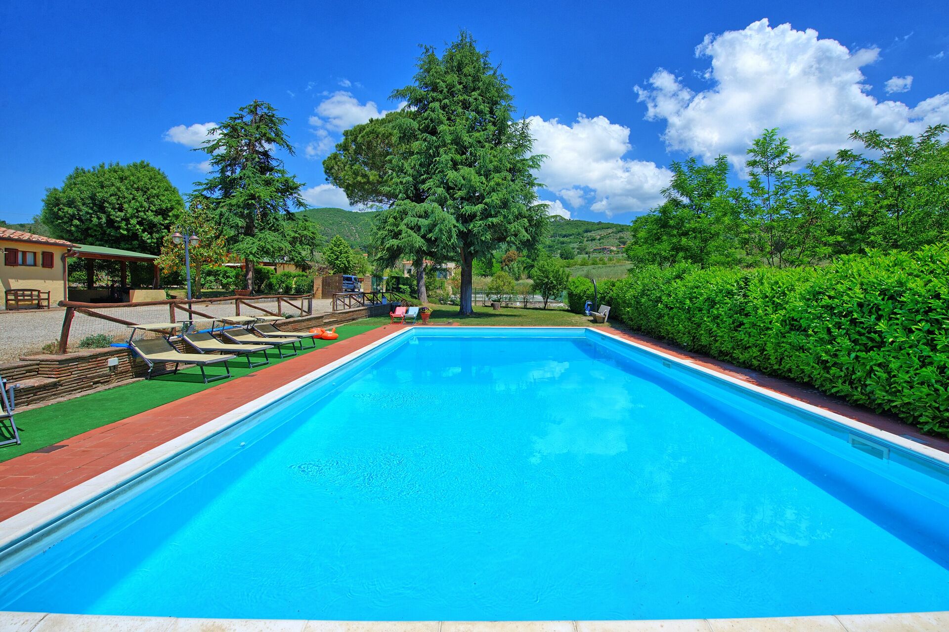 Very well located house in Tuscany. Everything is clean and user friendly. Pool is big enough + nice to have tennis court next to the house. The view on the hill is very charming
