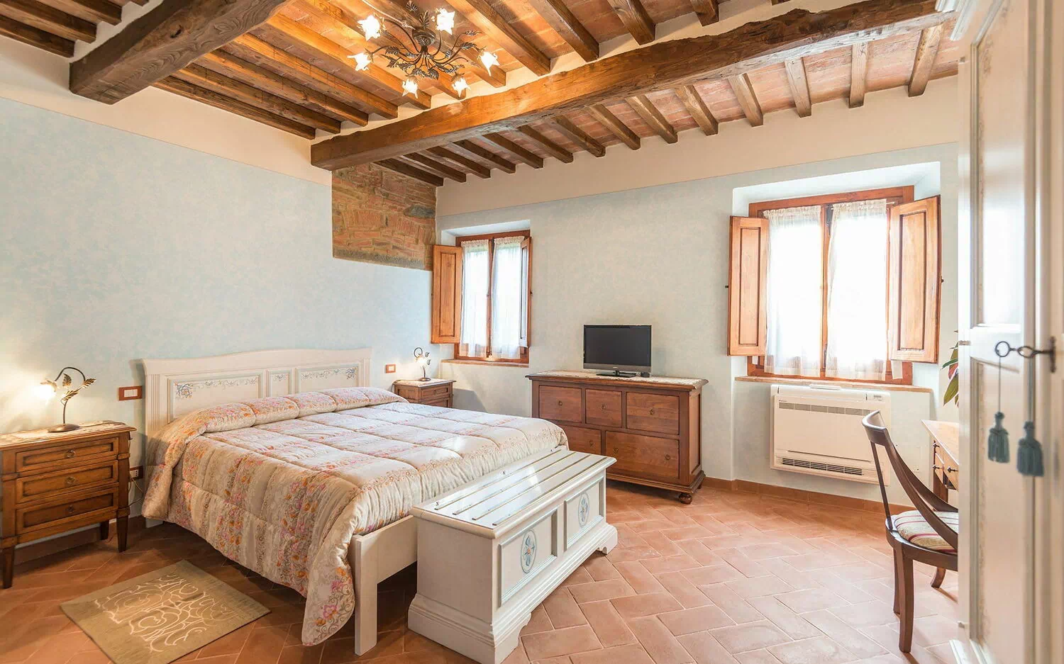 Er is airconditioning in alle kamers.