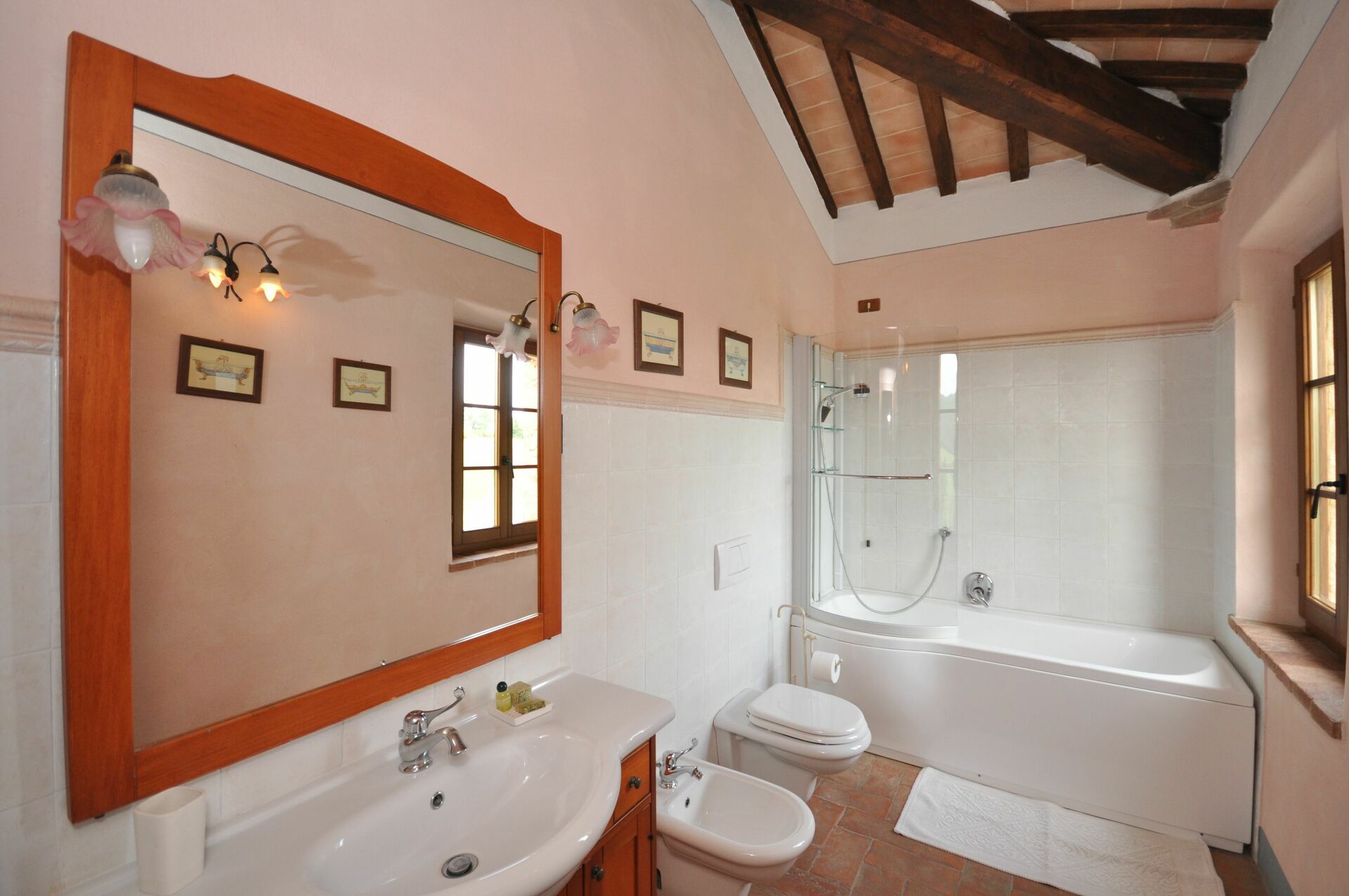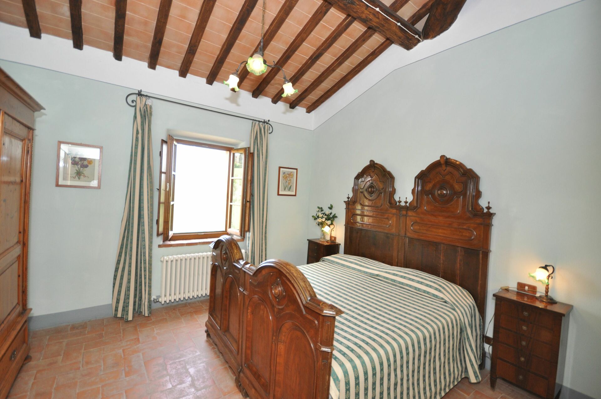 Grote Toscaanse villa uit de 15e eeuw, gebouwd op de ruïnes van een oud klooster uit het jaar 1200. Het huis, met een charmante binnenplaats, is rustig en panoramisch gelegen op een groot landgoed van 100 ha., dat olijfolie en wijn produceert.