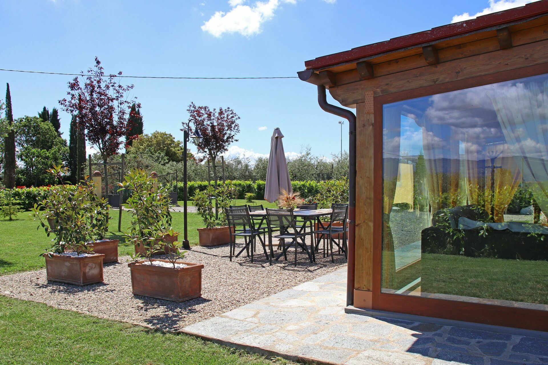 Het huis biedt een grote, geheel omheinde tuin (1 hectare) en privé zwembad. Het huis is goed ingericht en licht dankzij de grote ramen in de woonkamer.