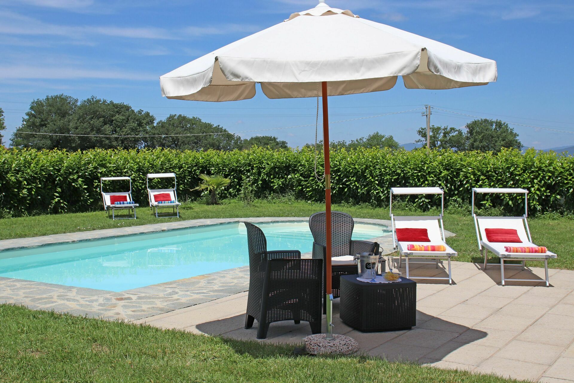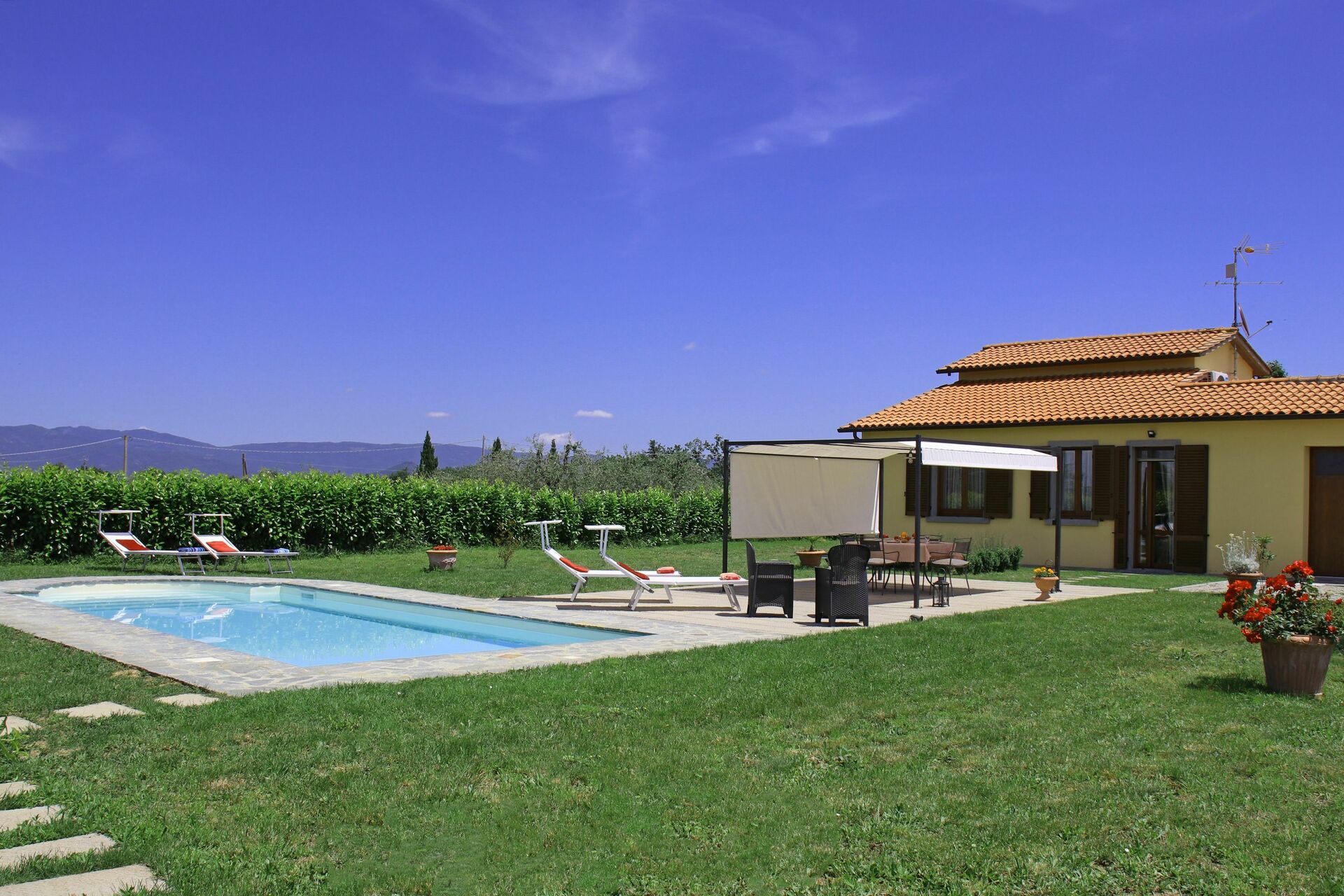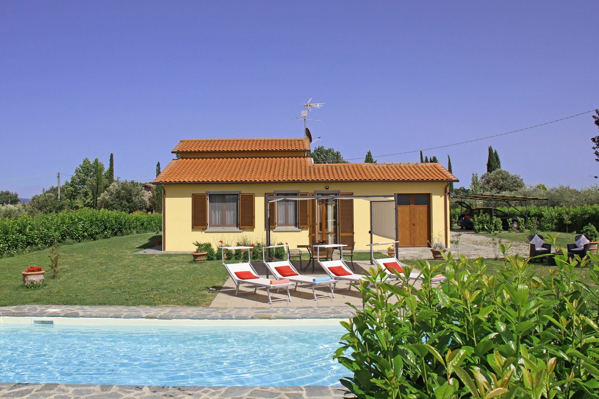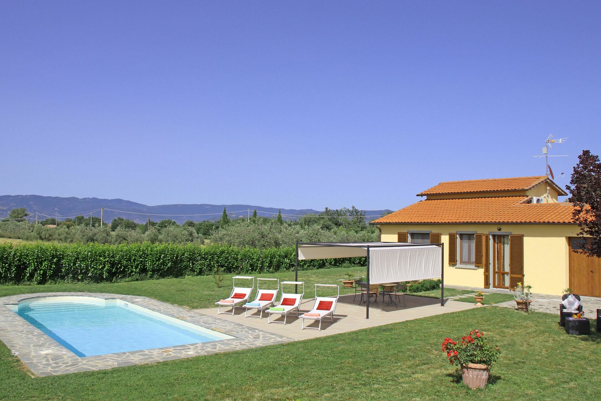 Schönes, renoviertes Haus auf einem umzäunten Grundstück. Sehr ruhige Lage ohne direkte Nachbarschaft. Der grosse Pool wird täglich morgens gereinigt. Gute Beschattung beim grossen Sitzplatz. Küche gut ausgestattet. Klimaanlage kann bei Bedarf eingeschaltet werden. Alle Fenster sind mit guten Fliegengittern ausgestattet. Pool-Badetücher vorhanden. Sehr nette und hilfsbereite Eigentümer . In der Nähe ein kleiner Laden, ein grösserer Laden befindet sich etwa 12 km entfernt in Cortona.