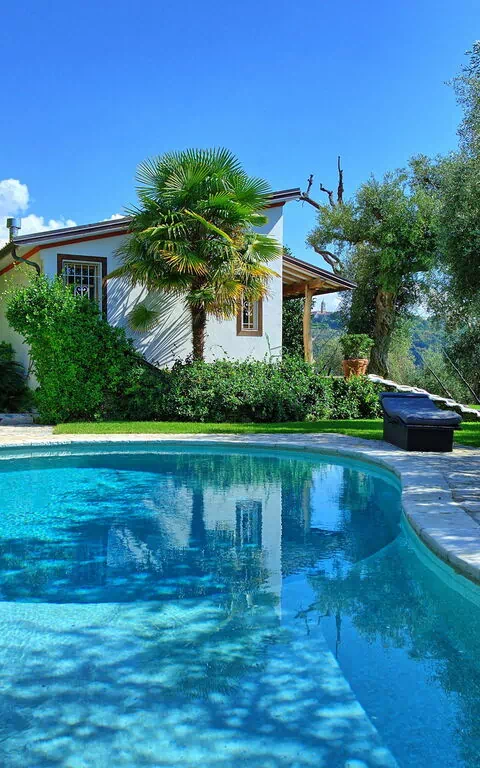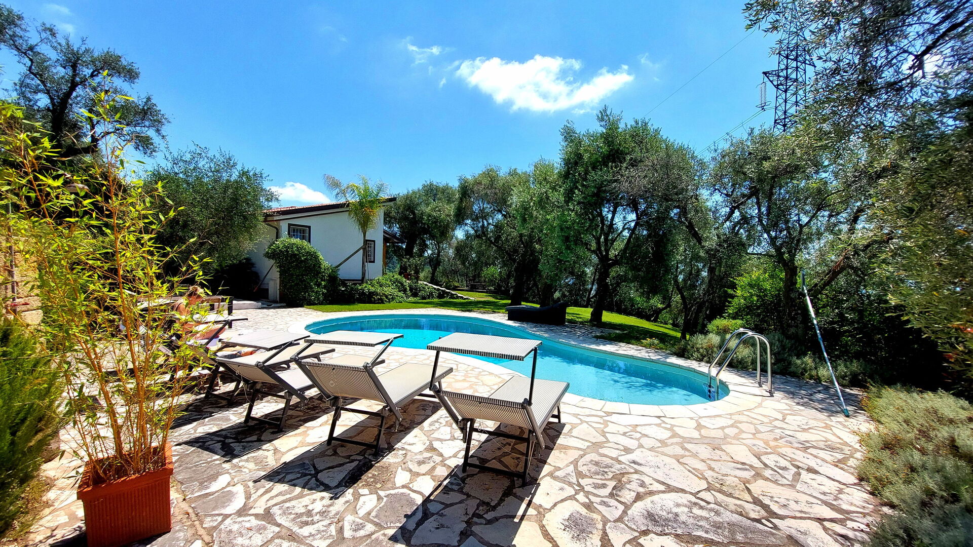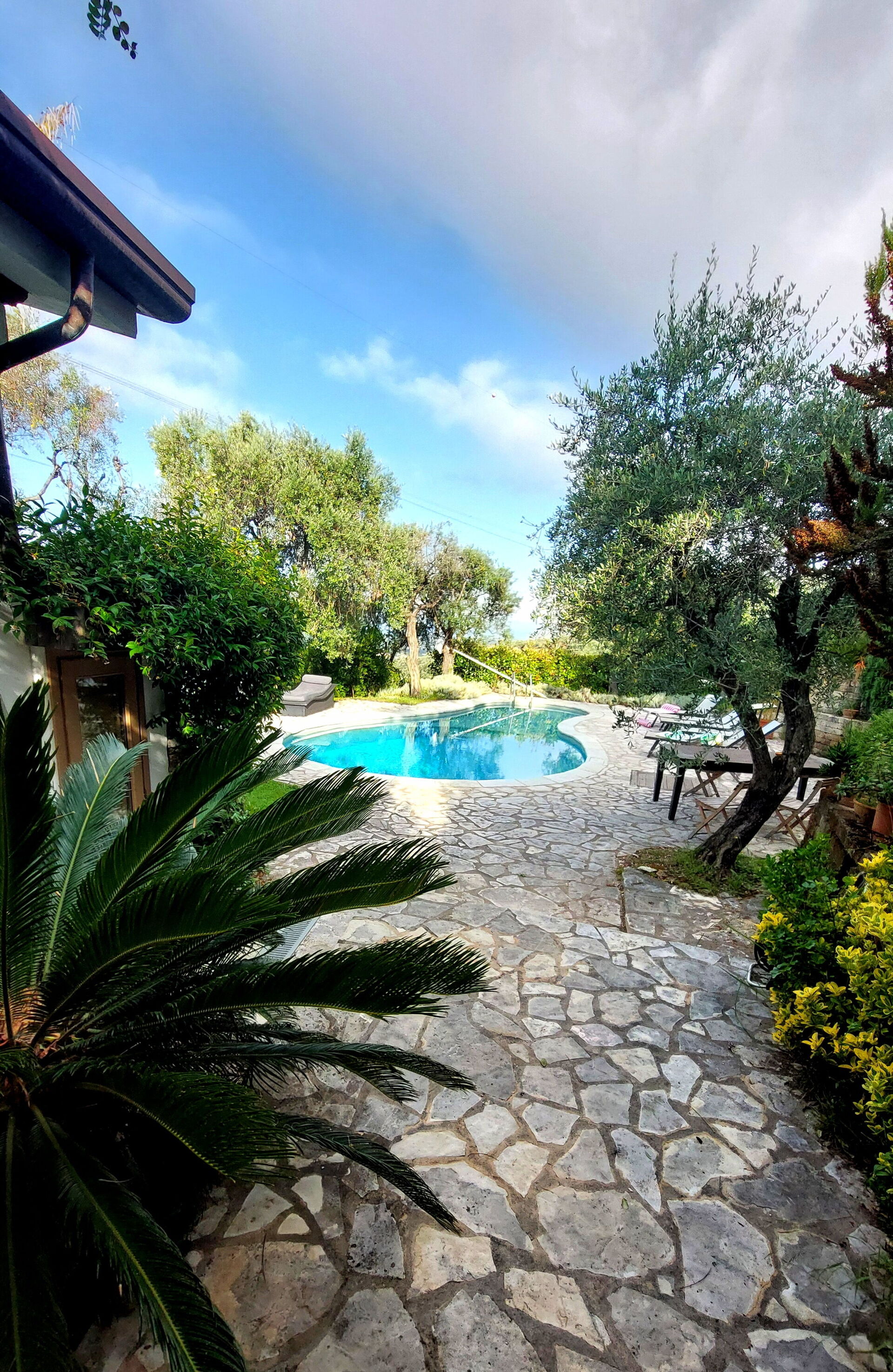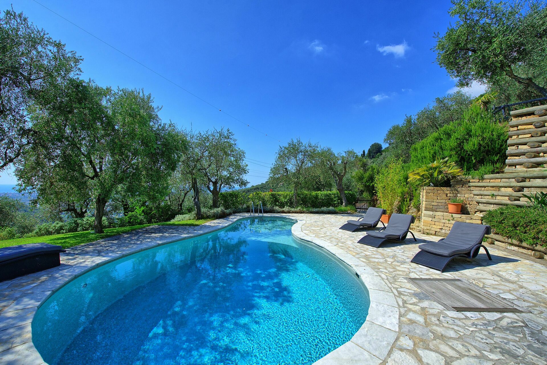 [English translation] very nice situated villa on hill with olive grove and fantastic views. Lovely pool and beautiful garden.