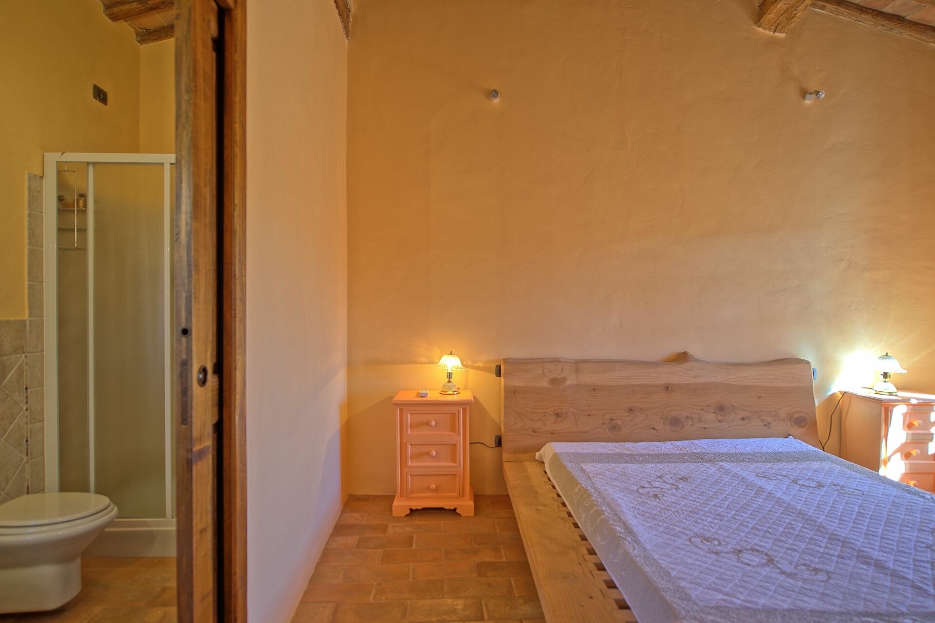 The grounds were beautiful and the location, pool and host were great, but the mattress in the master bedroom was extra firm, old and uncomfortable. The beds in the other rooms were somewhat better. Also, the curtains in all the bedrooms were very sheer material that let in all the light and prevented sleeping in the morning. The AC worked well in the bedrooms, but there were large cracks under the main exterior doors that let in mosquitos and even a lizard. The winery on the property was great as was their olive oil. The kitchen was nice and the property had a peaceful, rustic charm.