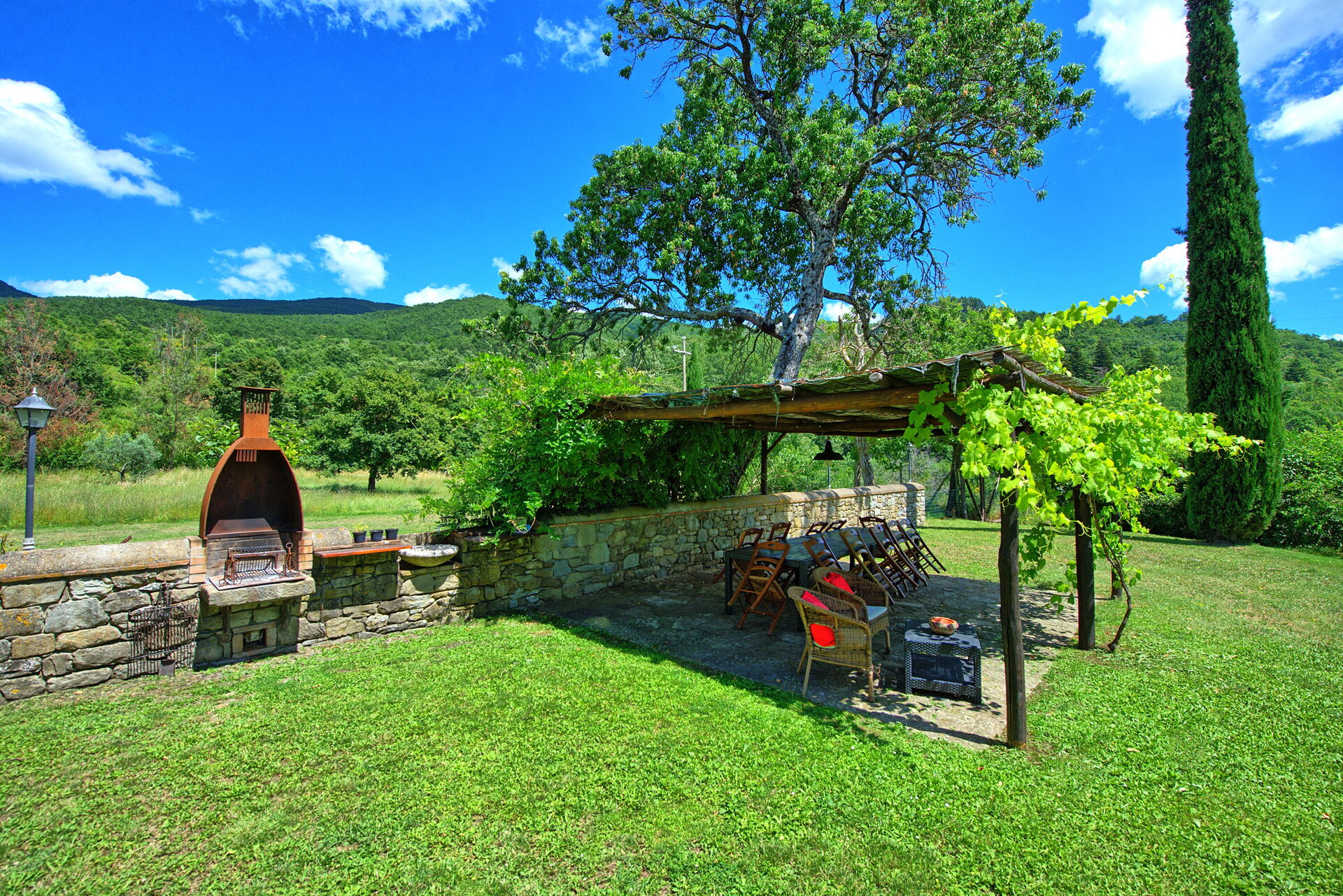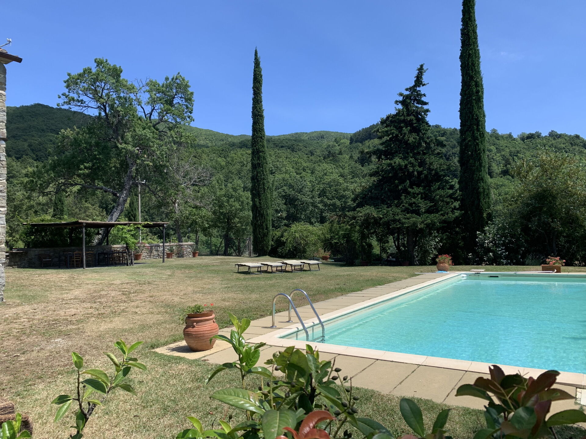 A comfortable house in a great location. Amazing views across the valley to the castle. Garden and pool well kept (pool has shade in the afternoon which was perfect for the long hot days). Shaded outdoor dining area was good - we had all our meals here. Plenty of beds - but some rooms are linked which can impact on privacy. Kitchen a little small but well equipped. 2 fridges very handy! Alessandra the owner was welcoming and attentive. Large supermarket and great gelateria in nearby Subbiano. Easy access to nearby attractions including Poppi, La Verna, Anghiari, Arezzo.