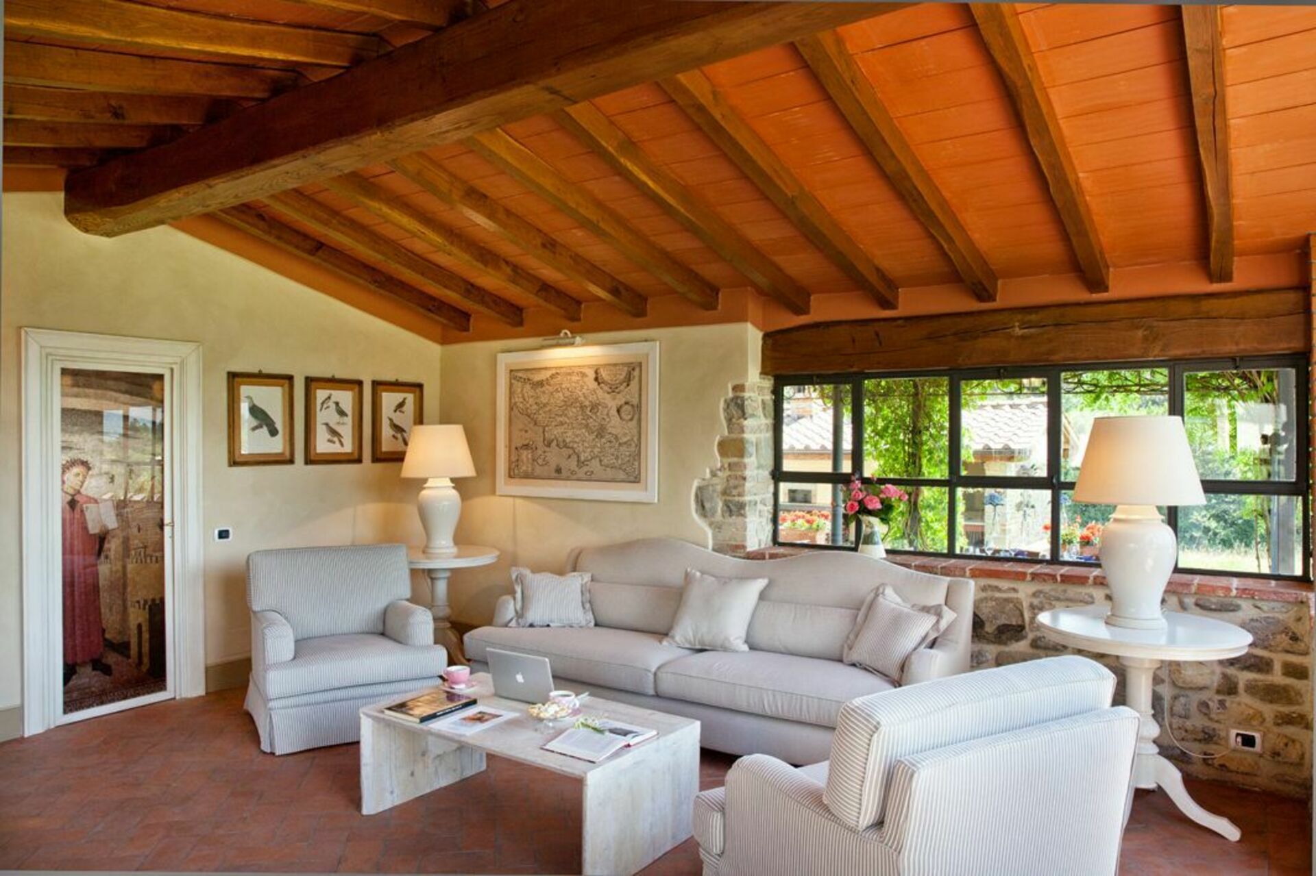 De Villa Sant'Angelo, met 8 slaapkamers, is omgeven door de betoverende Toscaanse heuvels.
