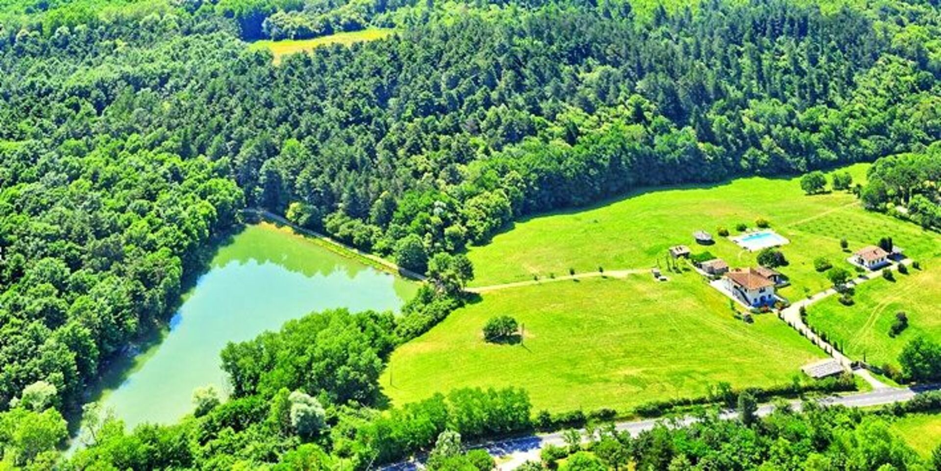 De boerderij ligt naast een groot dicht bos, en hier is er een natuurlijk voetpad dat de gasten toelaat om de tennisbaan en het meer te bereiken.