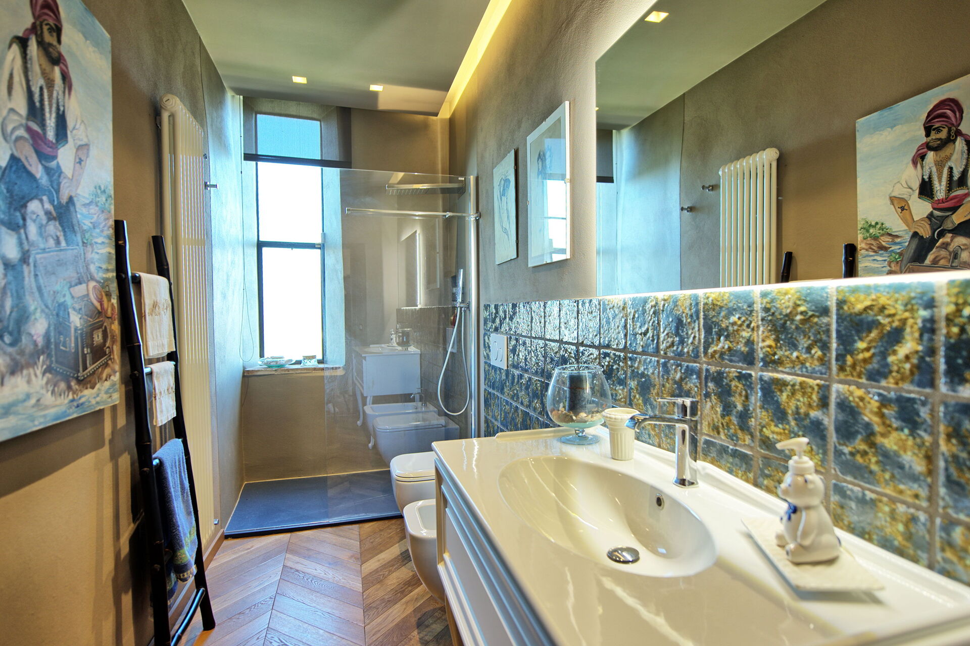 Het biedt meubels in Toscaanse stijl, moderne voorzieningen en 3 slaapkamers met airconditioning voor maximaal 6 personen.