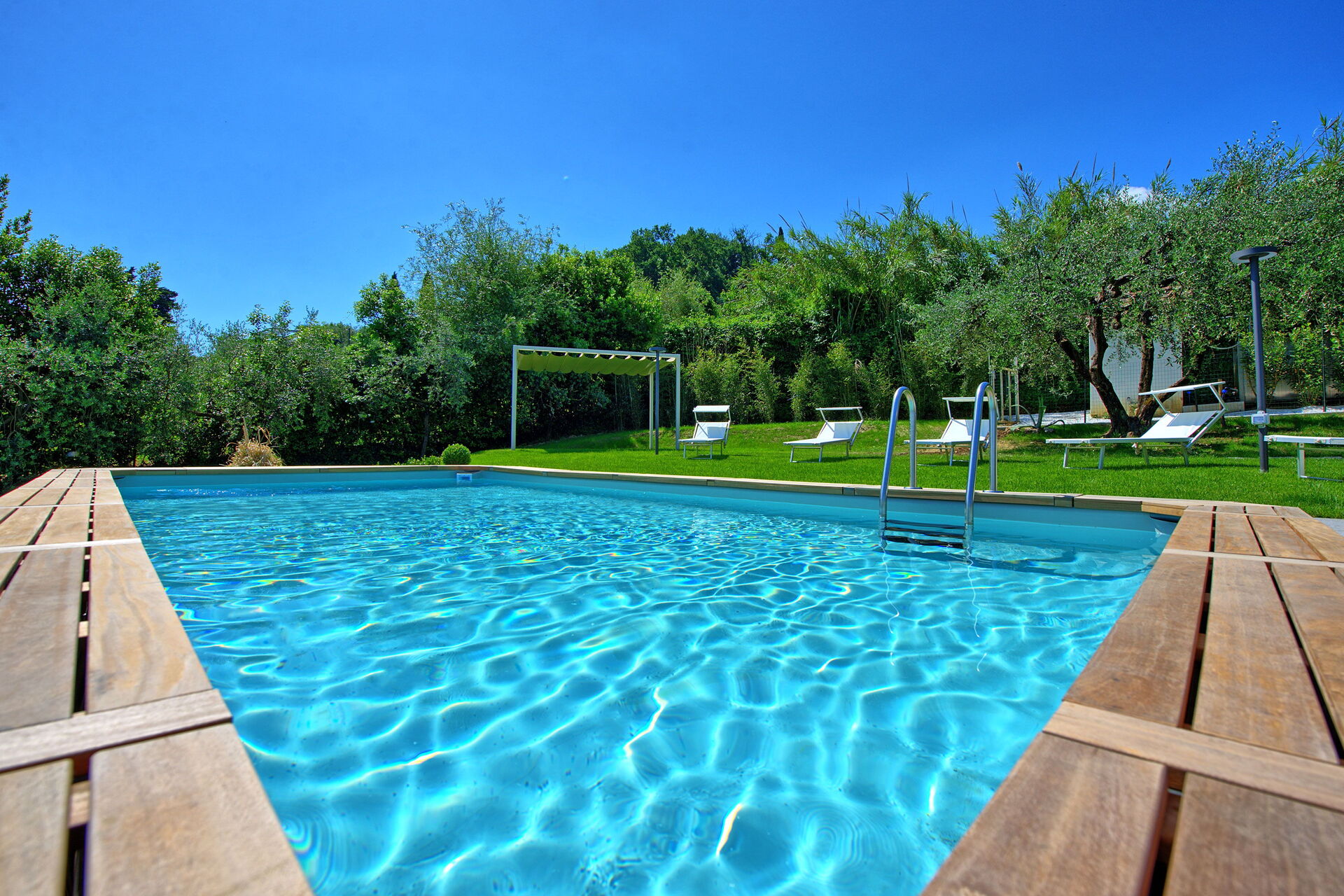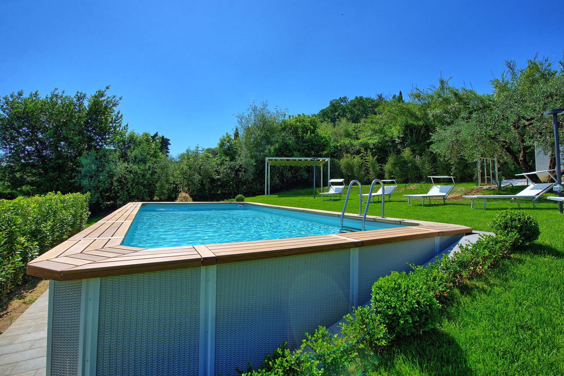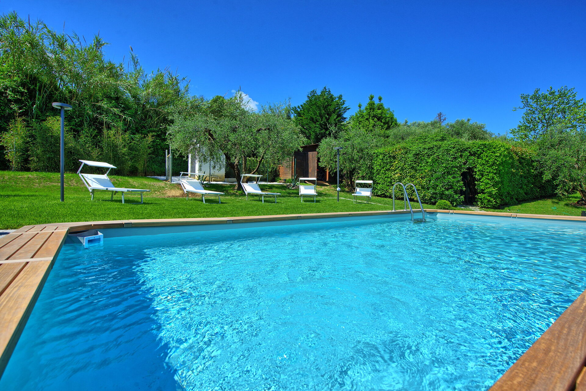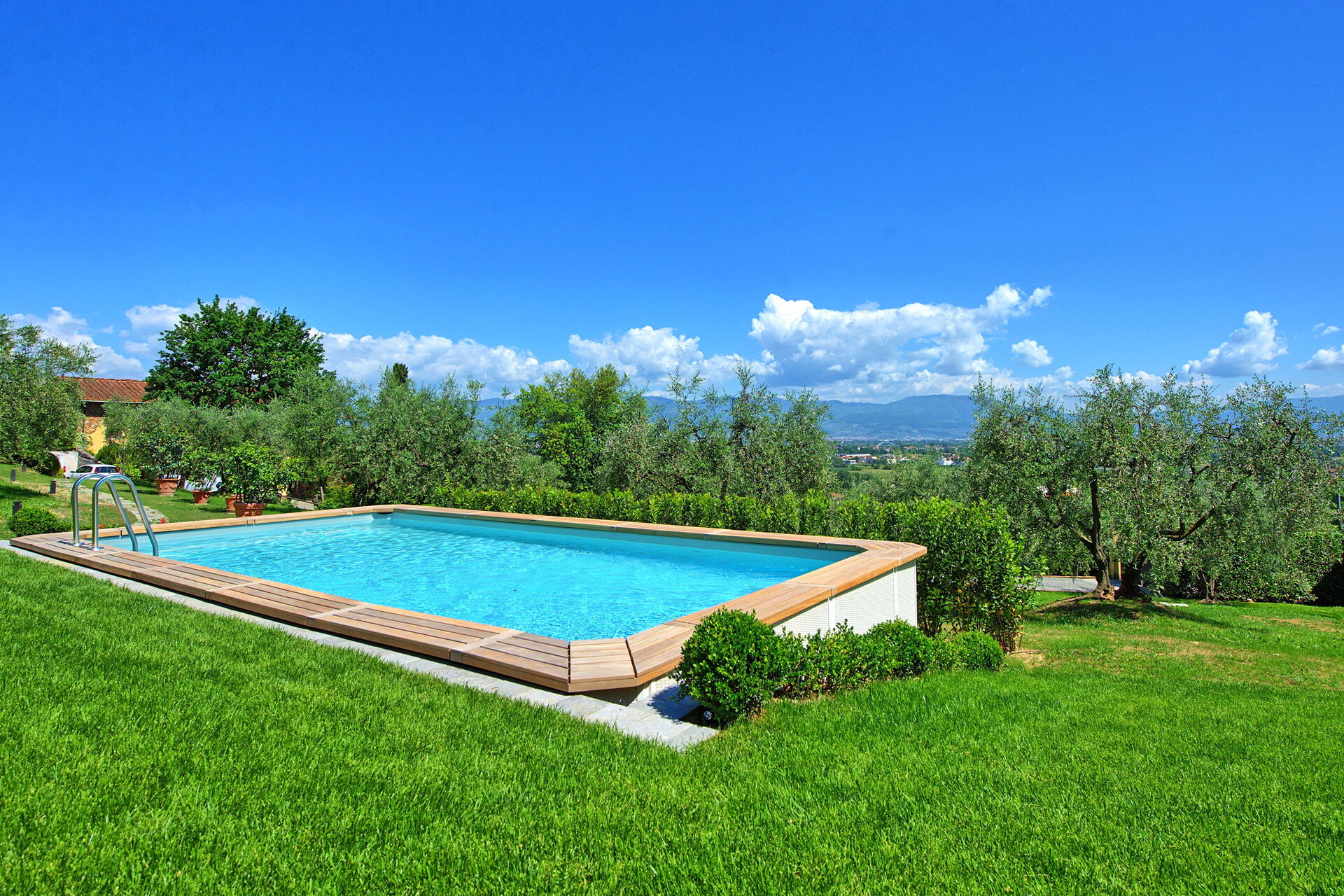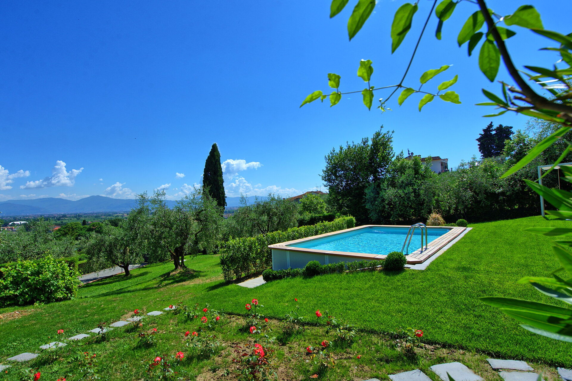 Er is een goed onderhouden tuin met een privé, bovengronds zoutwaterzwembad, ligstoelen en parasols: de perfecte plek om te ontspannen en af te koelen op warme zomerdagen. Een veranda met grote ramen biedt een barbecue, tafel en stoelen om te eten en te genieten van het prachtige omliggende landschap, met uitzicht van Abetone tot Florence.
