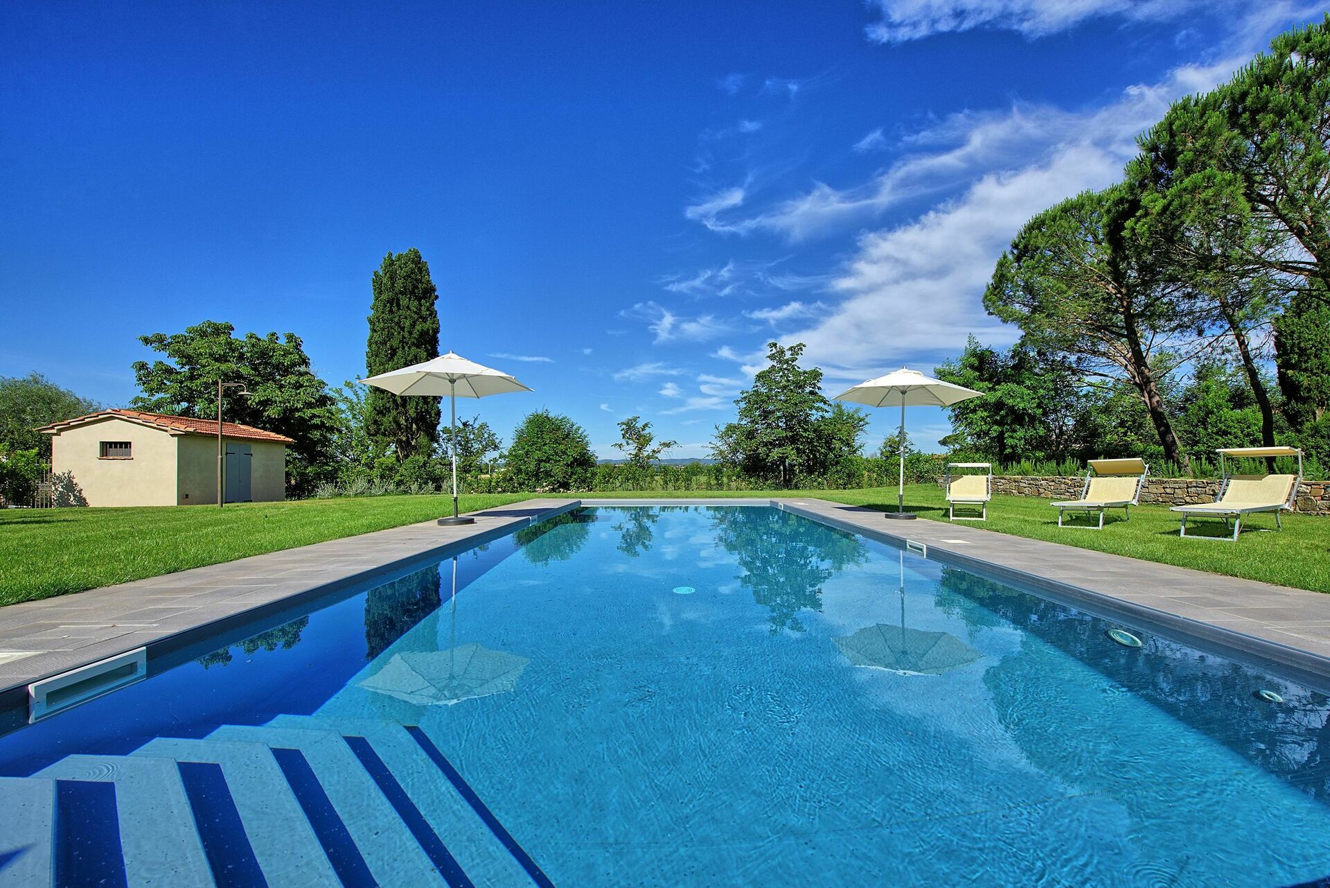 This was a beautiful, spacious villa which had all the modern conveniences but still retained the character of a period property. The house was immaculately clean and the high spec of the bathrooms was a very pleasant surprise. Outside, the gardens are simply beautiful and the pool area was perfect, all tended daily by Luciano who was very discreet but friendly. The house and the gardens provided plenty of space for our group of 13 adults. The owners were easily contactable and quickly responded to our requests.