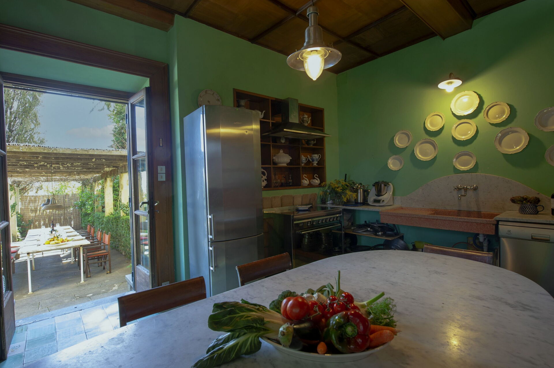 De keuken heeft een directe toegang tot het buitengedeelte van de tuin waar u met z'n allen kunt eten in de eethoek en een paar baden kunt nemen in het aangrenzende zwembad.