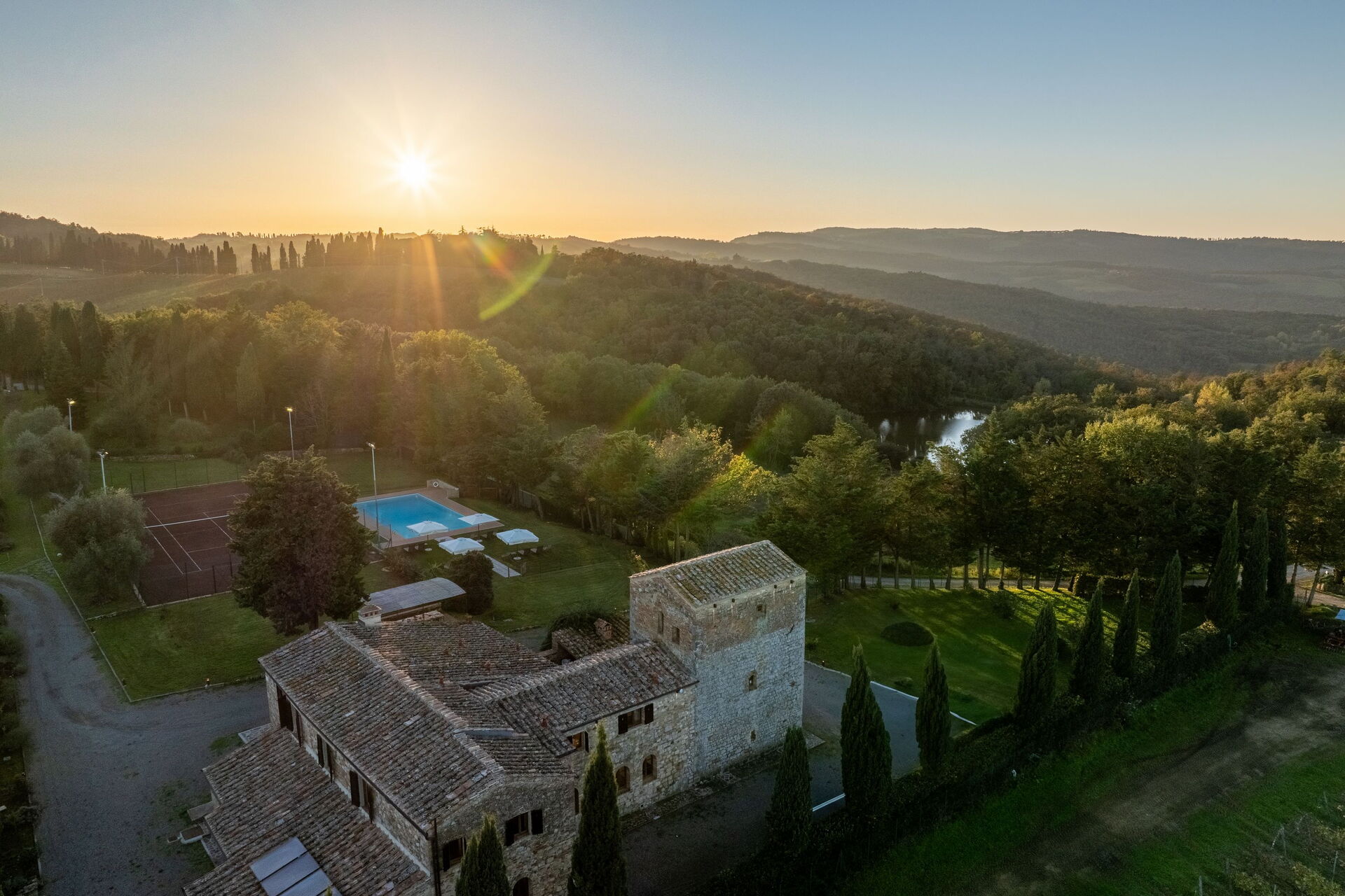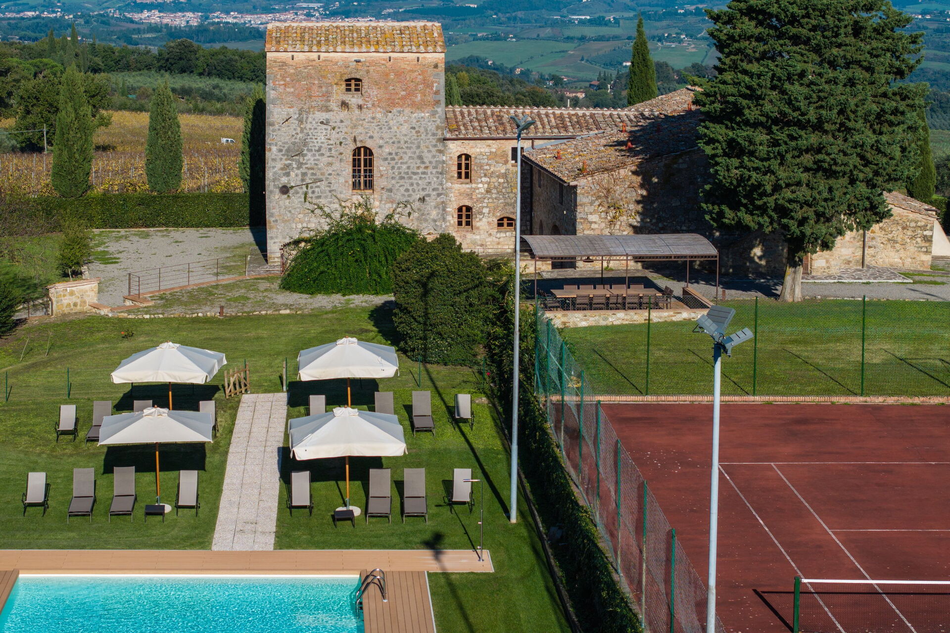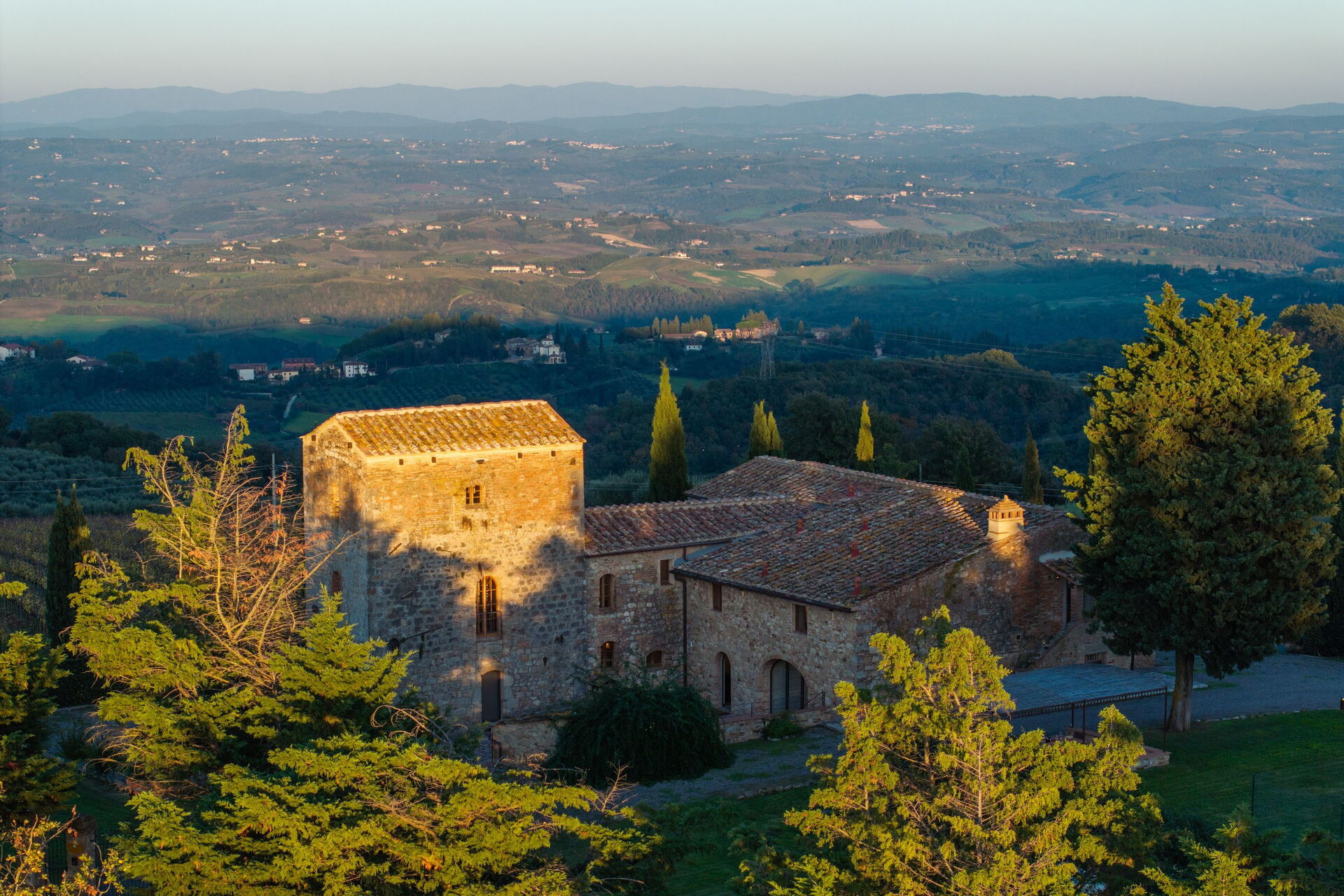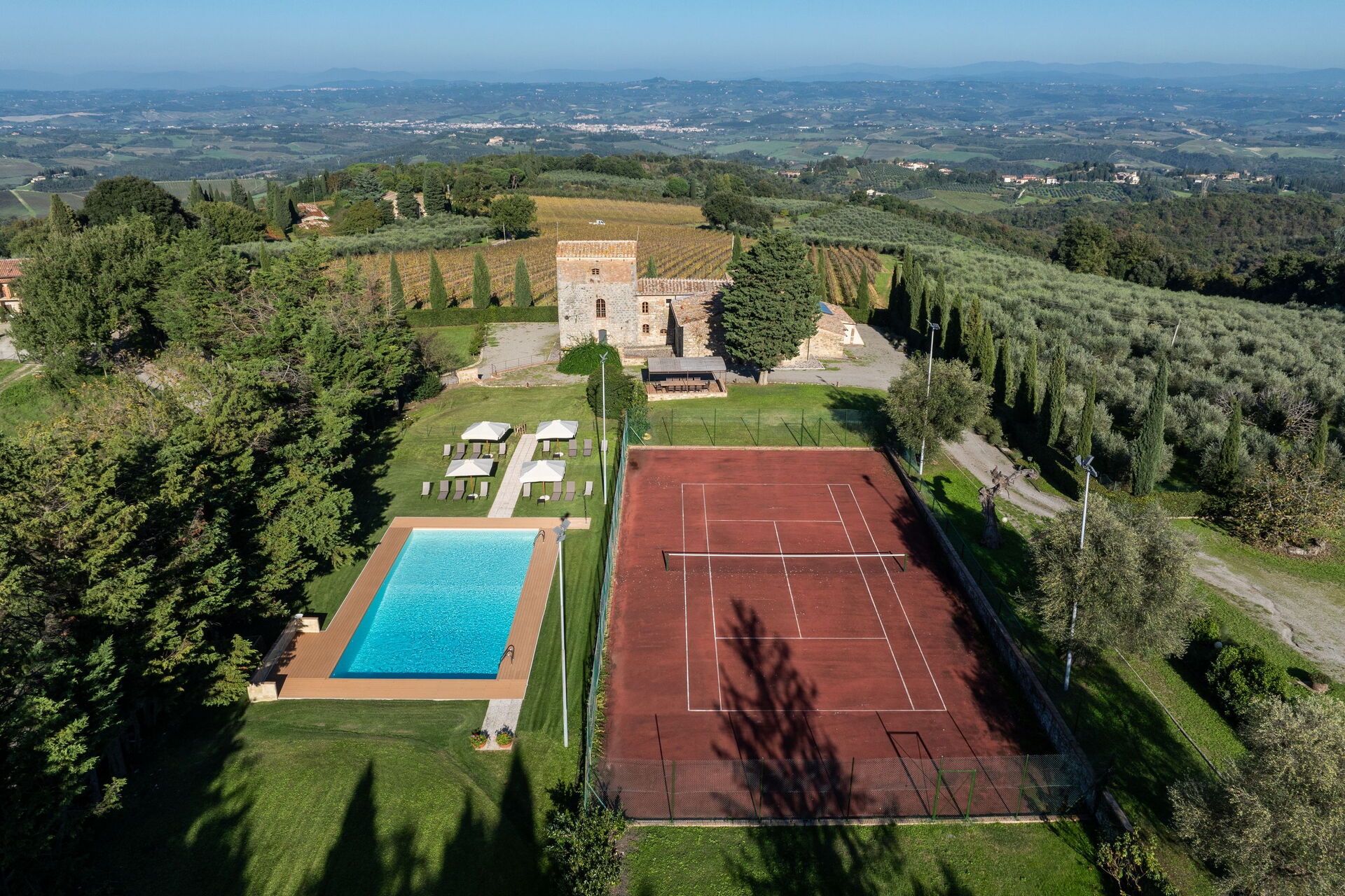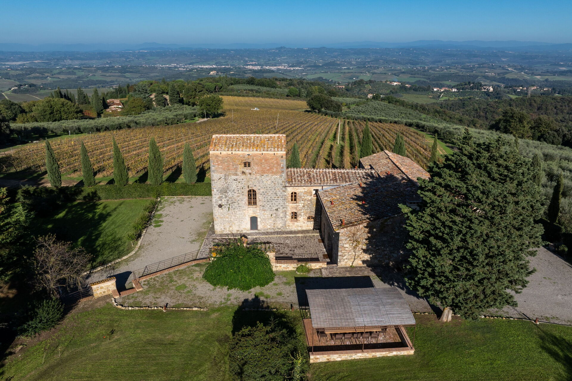 Een prachtige, stenen huurvilla in de Toscane, terugdaterend naar de 1500e eeuw gebouwd om een duizend jaar oude toren en gelegen in een rustige en panoramische positie op de heuvels van de middeleeuwse stad San Gimignano.