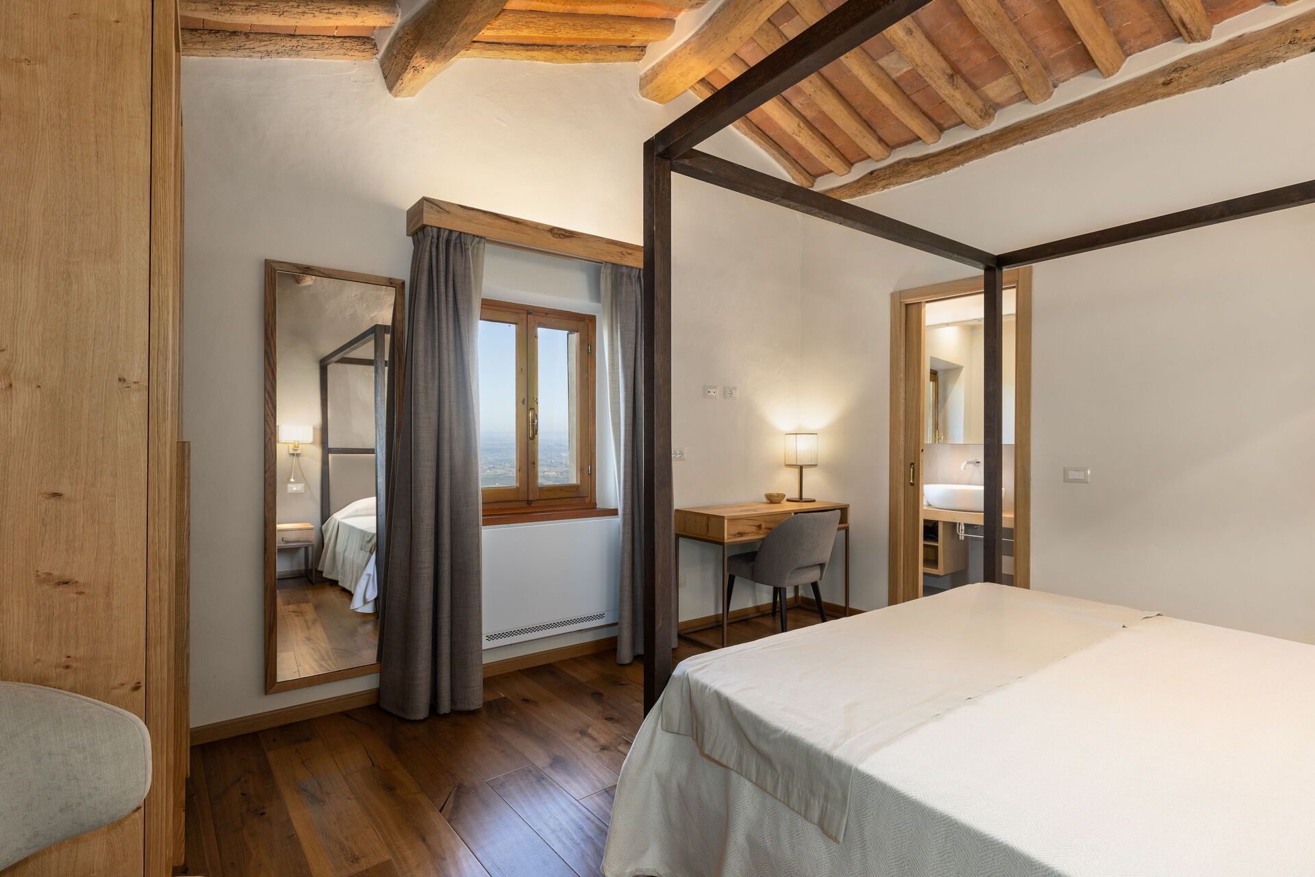 Deze villa werd gerestaureerd in 2023 om de originele en karakteristieke stijl te behouden. Deze zijn gebruikt om het nu in een charmant huis om te toveren. Deze villa wordt omringd door wijngaarden, olijfbomen en meer dan 400 hectaren land. Er is een prachtig uitzicht over het platteland van de Toscane.