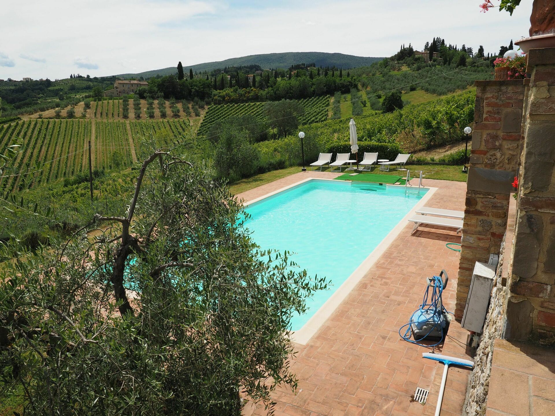 Afstanden: San Gimignano met allerlei winkels en restaurants op slechts 3 km, Volterra 20 km, Colle Val d’ Elsa 6 km, Siena ong. 40 km, Florence ong. 60 km.