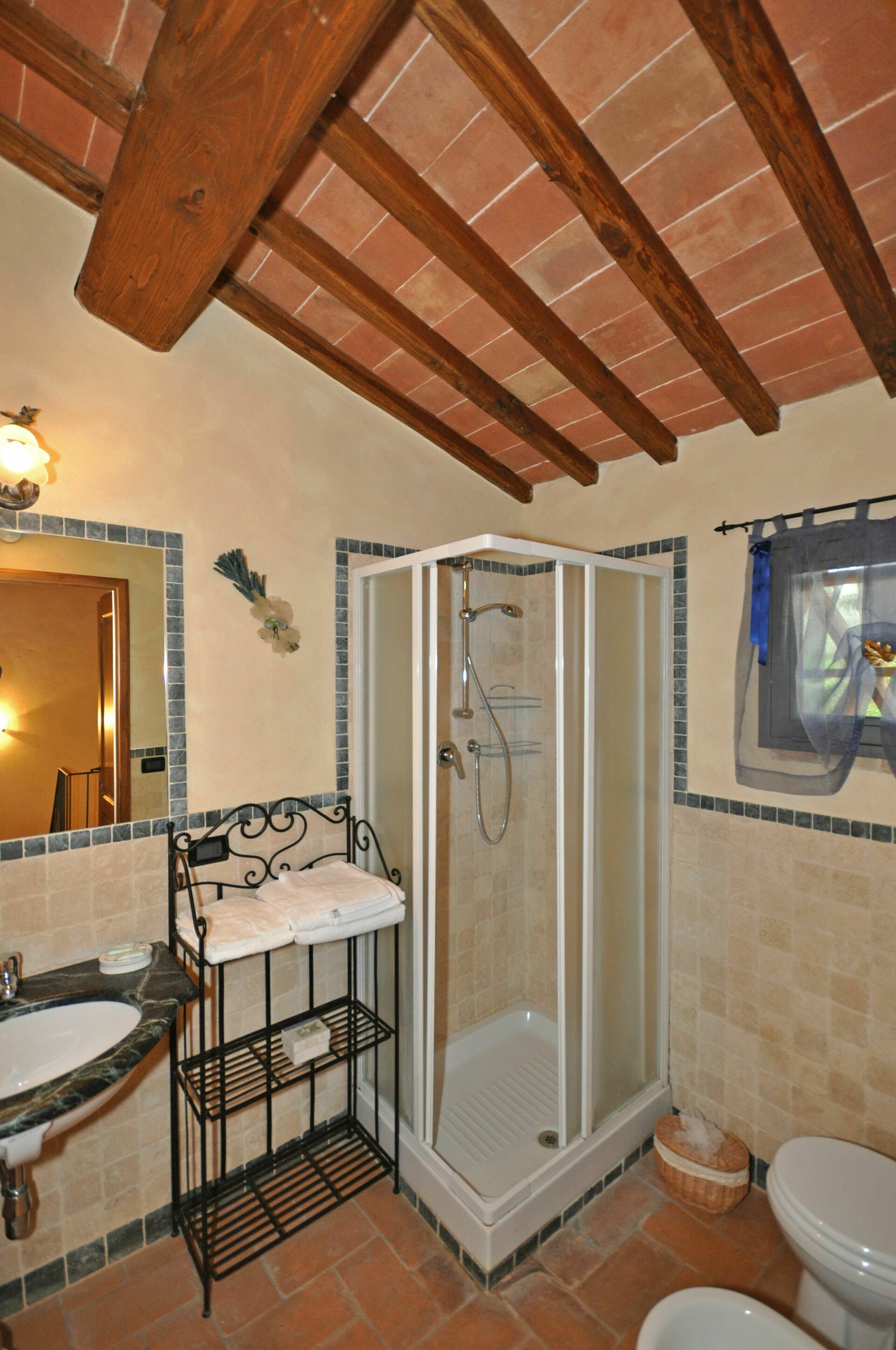 1° verdieping: ruime slaapkamer met tweepersoonsbed en mogelijk nog een extra eenpersoonsbed (30 € per persoon per dag), badkamer met douche.