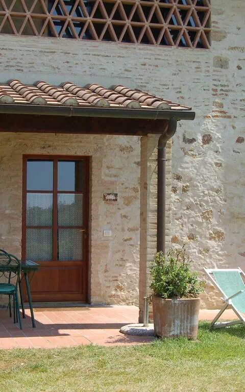 The nice loggia in front of the apartment gives shelter and protection from summer heat, thus permitting you to enjoy the superb landscape of the surrounding valley and hills.