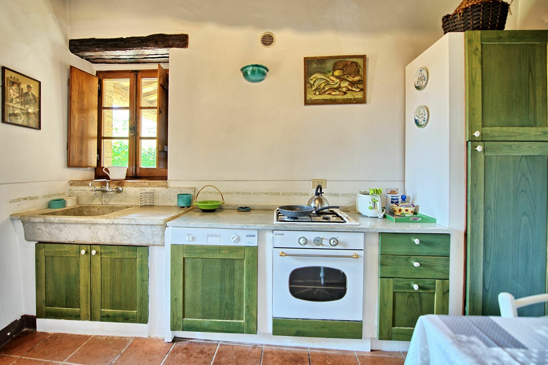 De inrichting van de appartementen is comfortabel in een rustieke Toscaanse stijl.