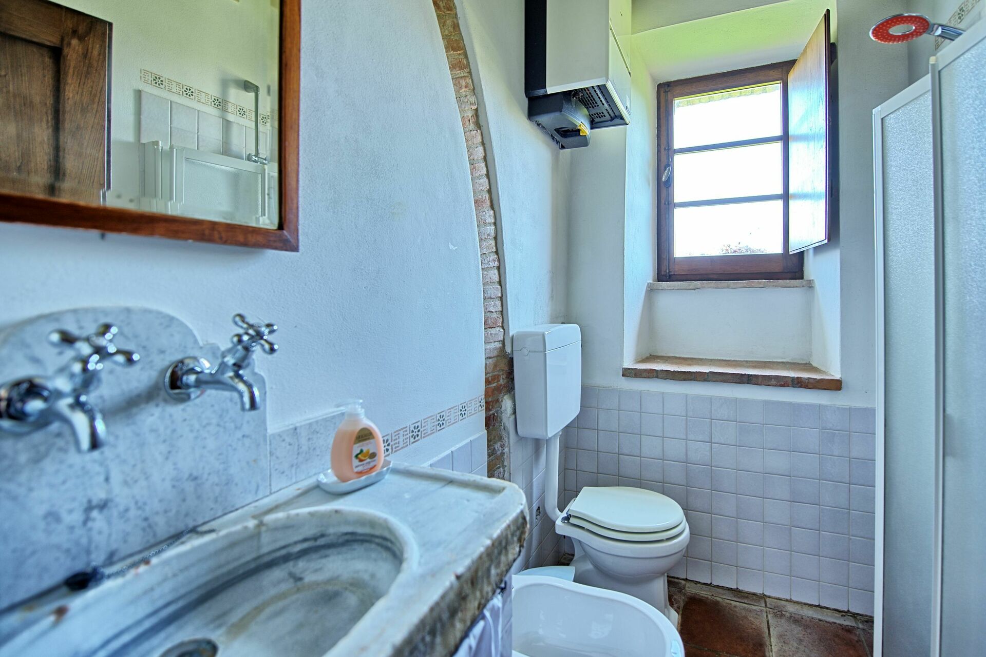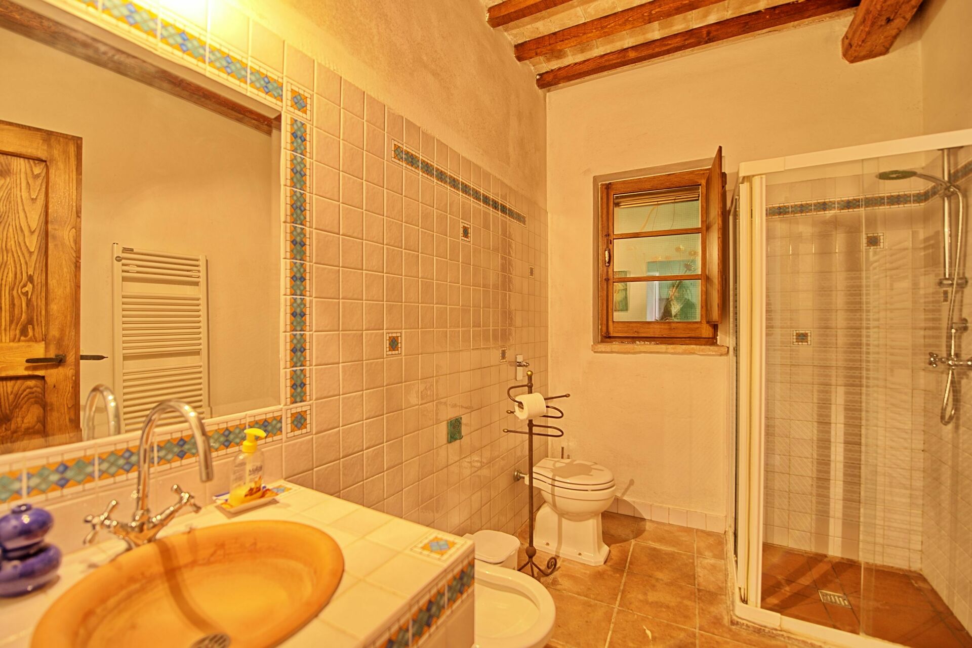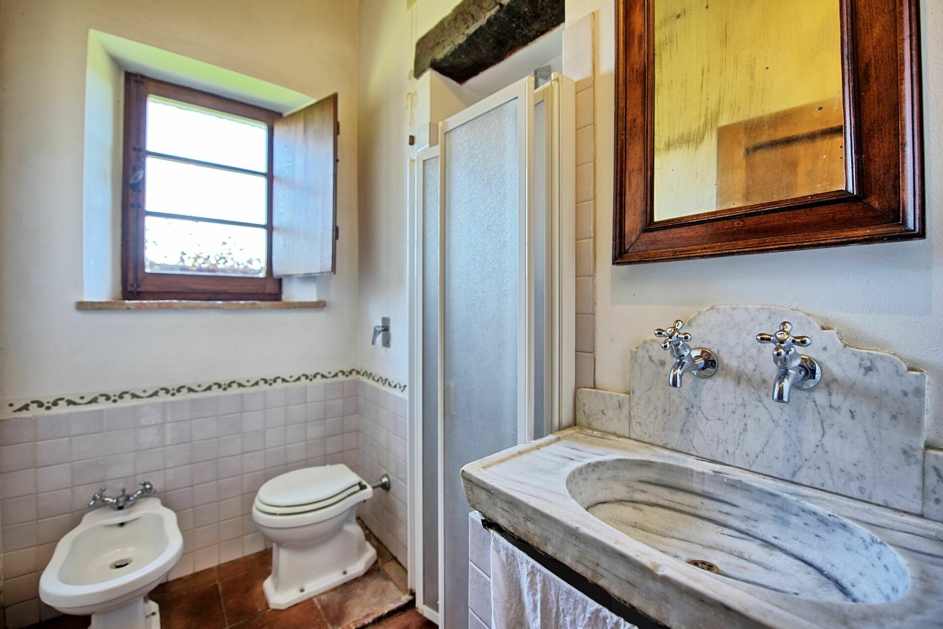 I would rate this villa between 3 and 4 star. The location of the villa is just perfect with a stunning view! It is located within 7 minutes of the autostrada to Florence and Siena. And there are a lot of nice villages to visit close by. The atmosphere of the villa is cosy and authentic. But it must be said that the kitchen in the upper villa (the other ones we didn't use for practical reasons) and bathrooms are outdated and not very clean. Hot water in some of the showers was not very stable, it varied from very hot to very cold, when you were lucky somewhere in the middle. Also the shower areas were very small and not very clean. The owners were very friendly and always available for help, but were not able to fix the hot water problem in the showers.