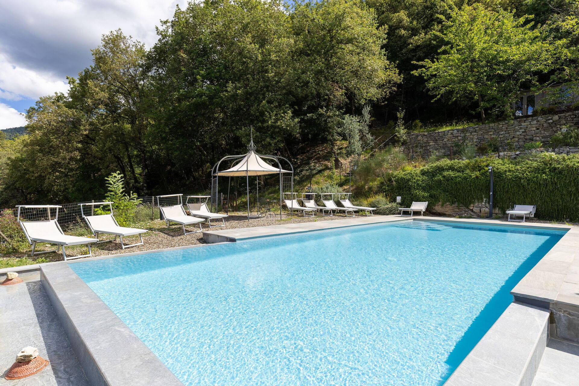 In de tuin bij het huis ligt een privé zwembad, dat is gereserveerd voor exclusief gebruik van de gasten. Op het landgoed staat ook een kleine boerderij met paarden, ezels en konijnen. Het is goed gemeubileerd en zeer comfortabel.