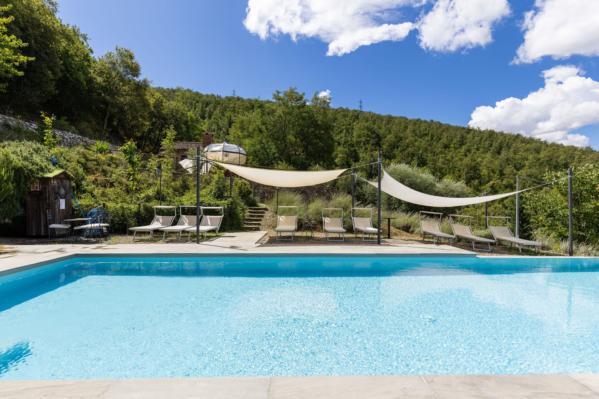 Villa Tenuta Lonciano heeft een verrukkelijk zwembad, waar men met familie of vrienden uren ontspannen kan doorbrengen, genietend van Uw zomerse gerechten bij een ingerichte barbecueplaats en voor de koudere dagen is er ook een gezellige open haard .