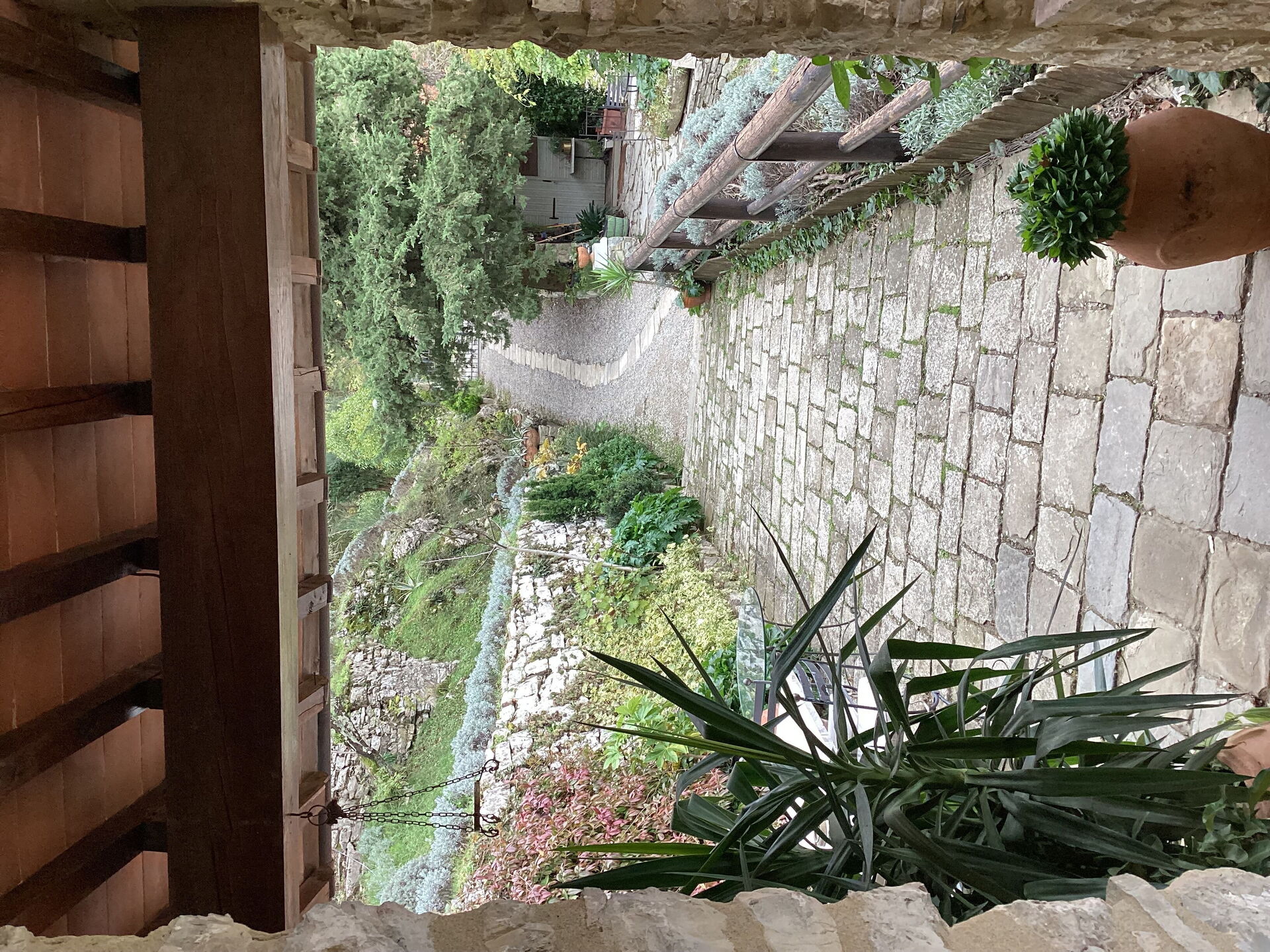 Het huis is verdeeld over drie verdiepingen en gelegen tegen de hellingen. Elke verdieping heeft toegang vanuit de tuin. De drie verdiepingen zijn niet onderling met elkaar verbonden.