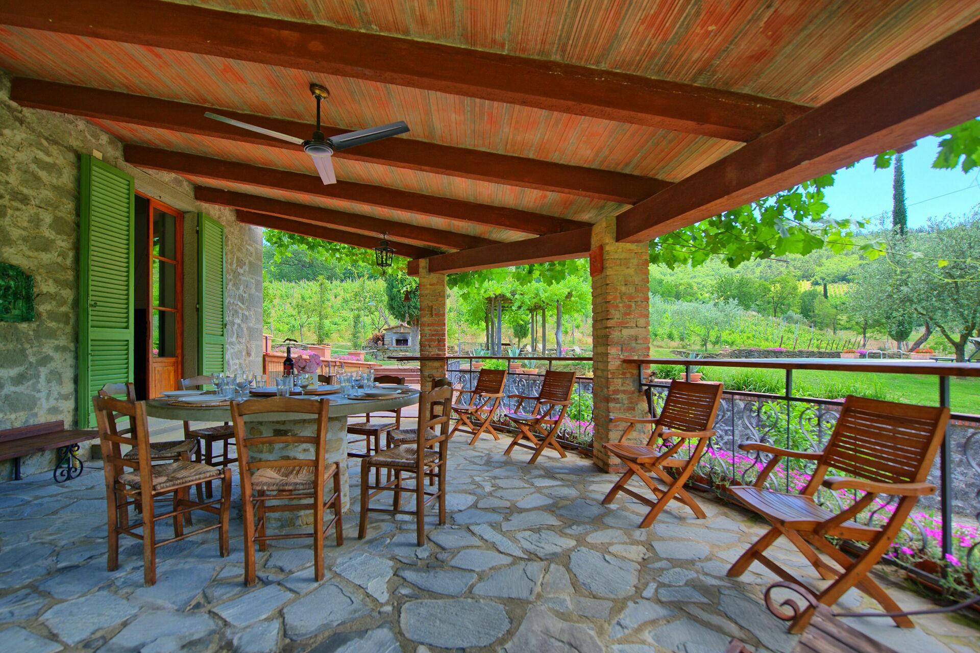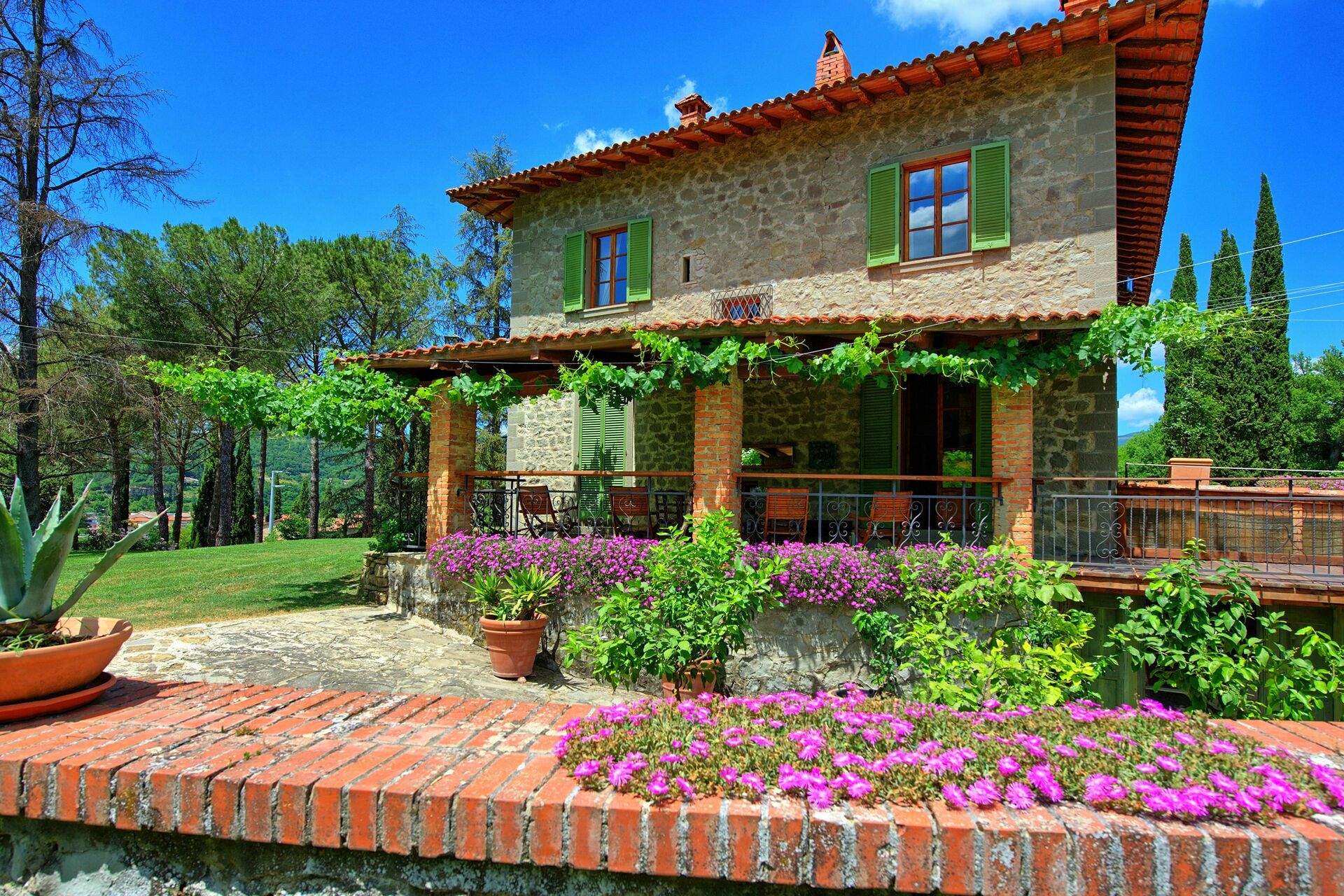 Het huis is ingericht in een rustieke stijl en is omgeven door een grote tuin voorzien van tuinmeubilair en een privézwembad. Deze villa staat op een 7 hectare groot landgoed, gedeeltelijk gecultiveerd met wijngaarden die mooie wijn opleveren (op het landgoed beschikbaar).