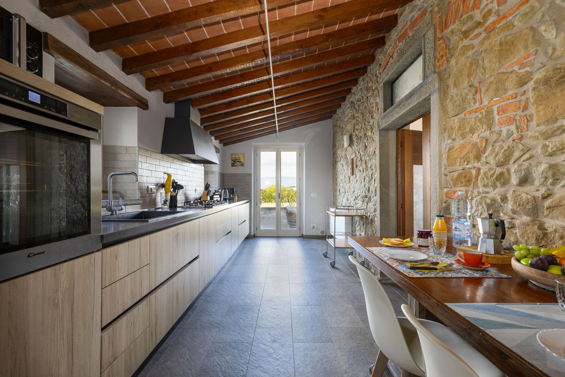 Newly renovated so everything is brand new. Clean rooms and great bathrooms. Excellent ktichen with everything you need to make great food. Nice outdoor area to have breakfast / lunch / dinner. Nice views from garden to Cortona that is only 10 minutes away.