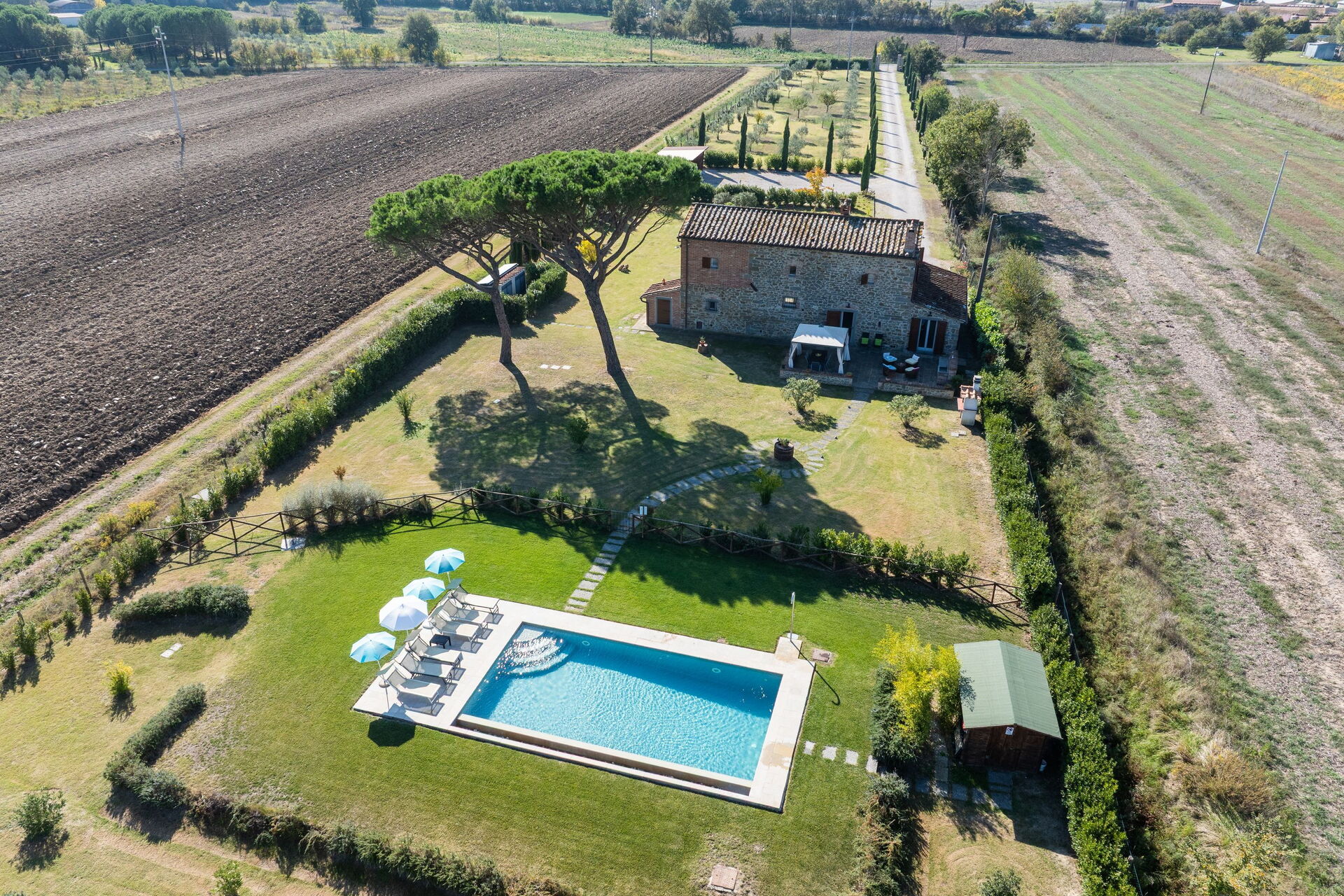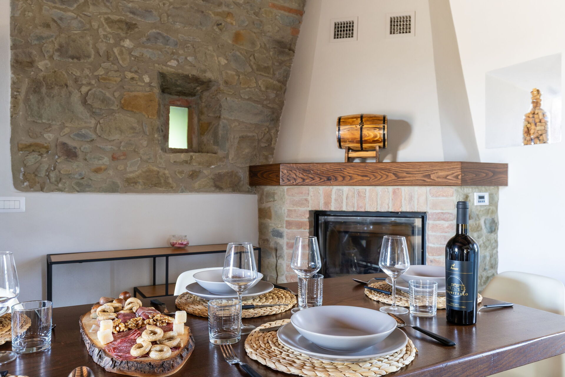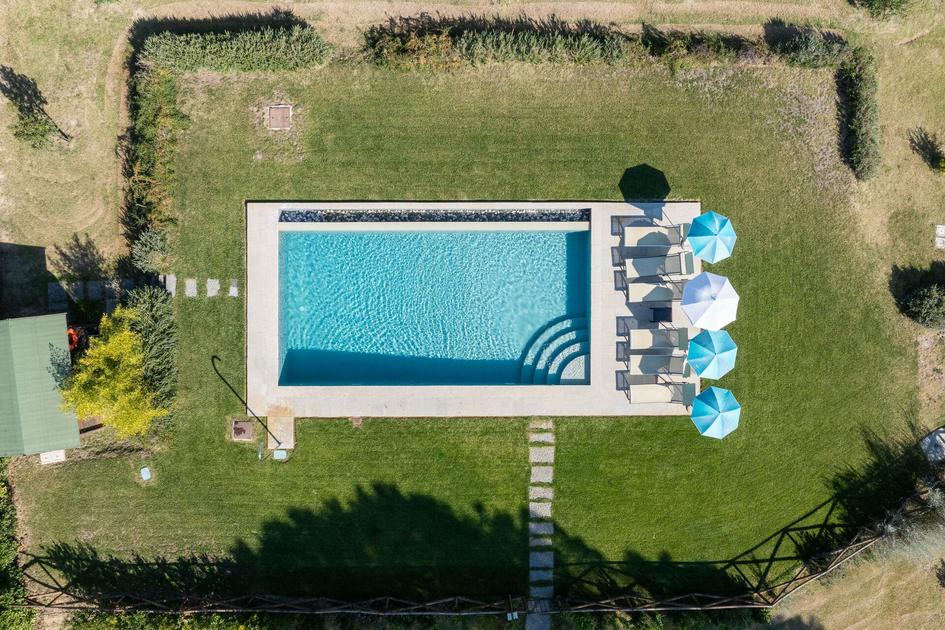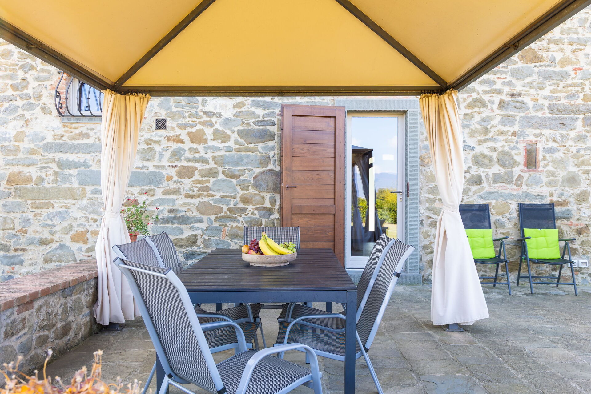 De grote, gemeubileerde buitenruimtes van de vakantievilla zijn perfect om tijd door te brengen in de buitenlucht. Gasten kunnen genieten van een groot nieuw zwembad met een panoramisch uitzicht op het landschap en Cortona, evenals van een buitenterras naast de villa om buiten te eten.