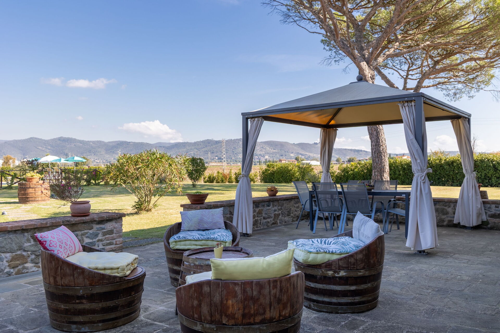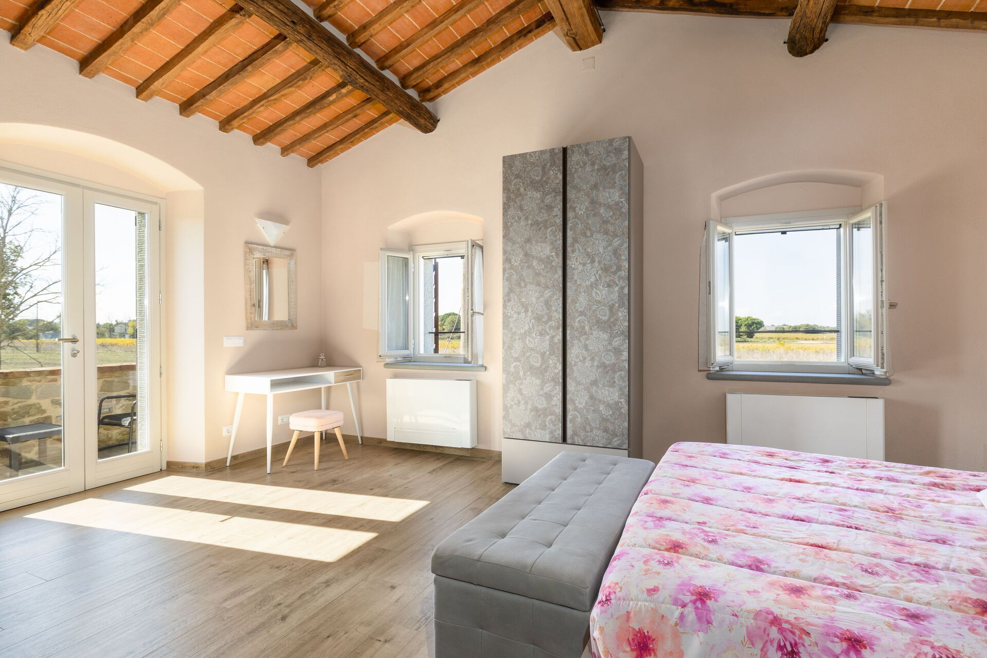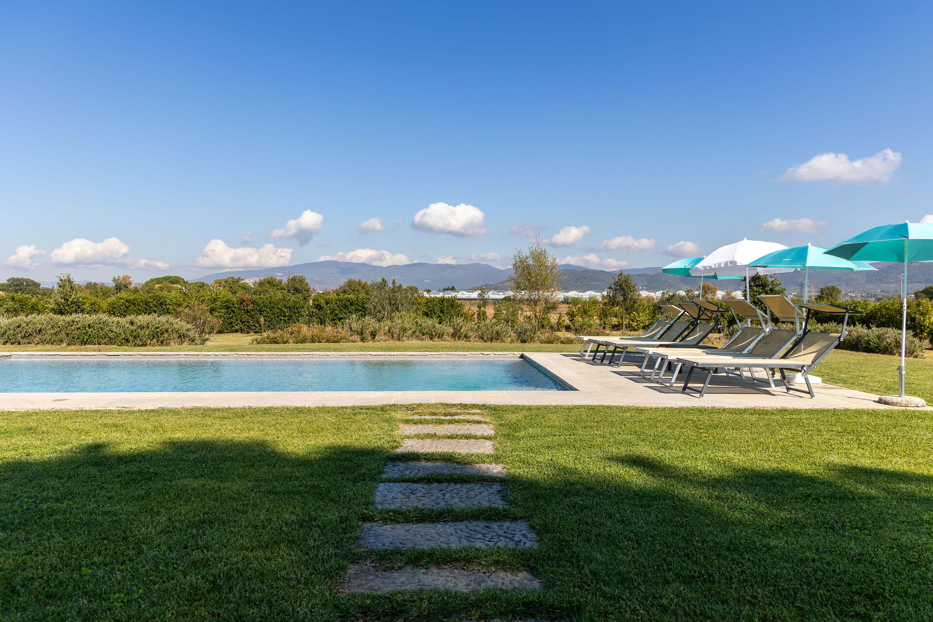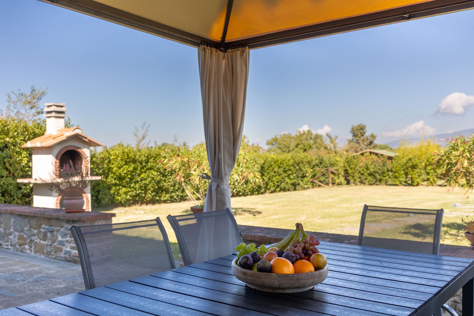 De grote, gemeubileerde buitenruimtes van de vakantievilla zijn perfect om tijd door te brengen in de buitenlucht. Gasten kunnen genieten van een groot nieuw zwembad met een panoramisch uitzicht op het landschap en Cortona, evenals van een buitenterras naast de villa om buiten te eten.