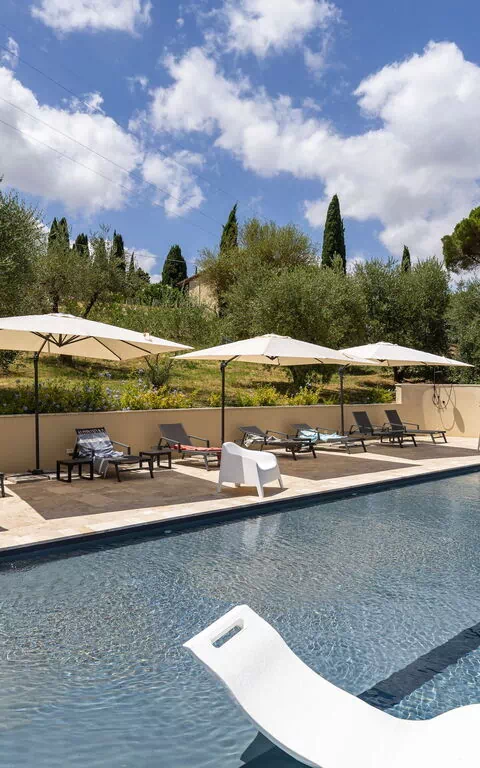 Villa Silvia is een exclusief vakantiehuis met privézwembad te huur in de glooiende heuvels van Toscane, met panoramisch uitzicht op het omliggende landschap en het stadje Peccioli in de provincie Pisa.
