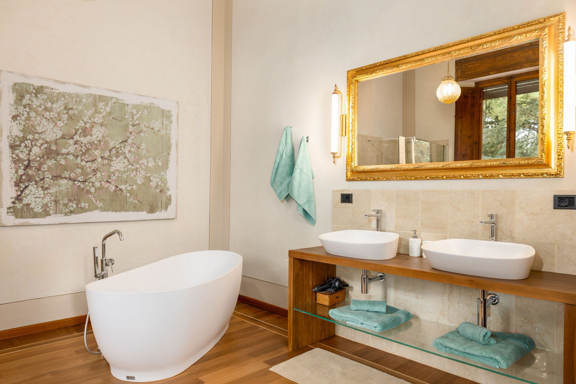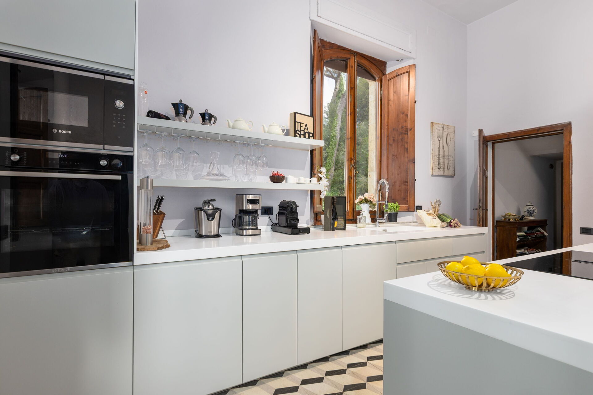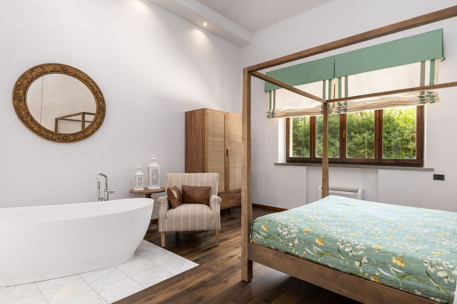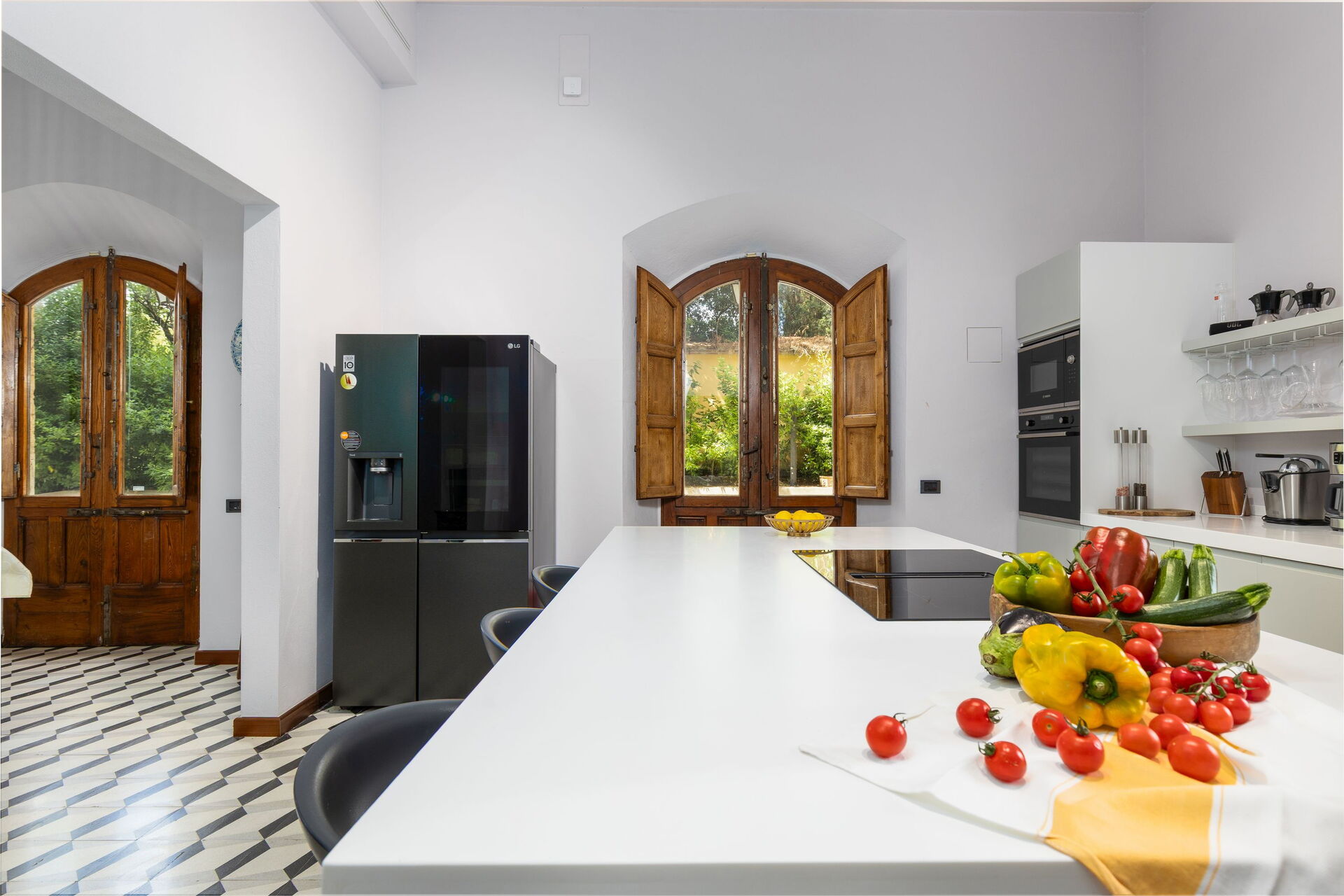 Het vakantiehuis is smaakvol gerenoveerd en omgevormd tot een modern landhuis dat is uitgerust met alle hedendaagse gemakken, terwijl de oorspronkelijke architectonische kenmerken behouden zijn gebleven. Het interieur van de villa is elegant en stijlvol ingericht.