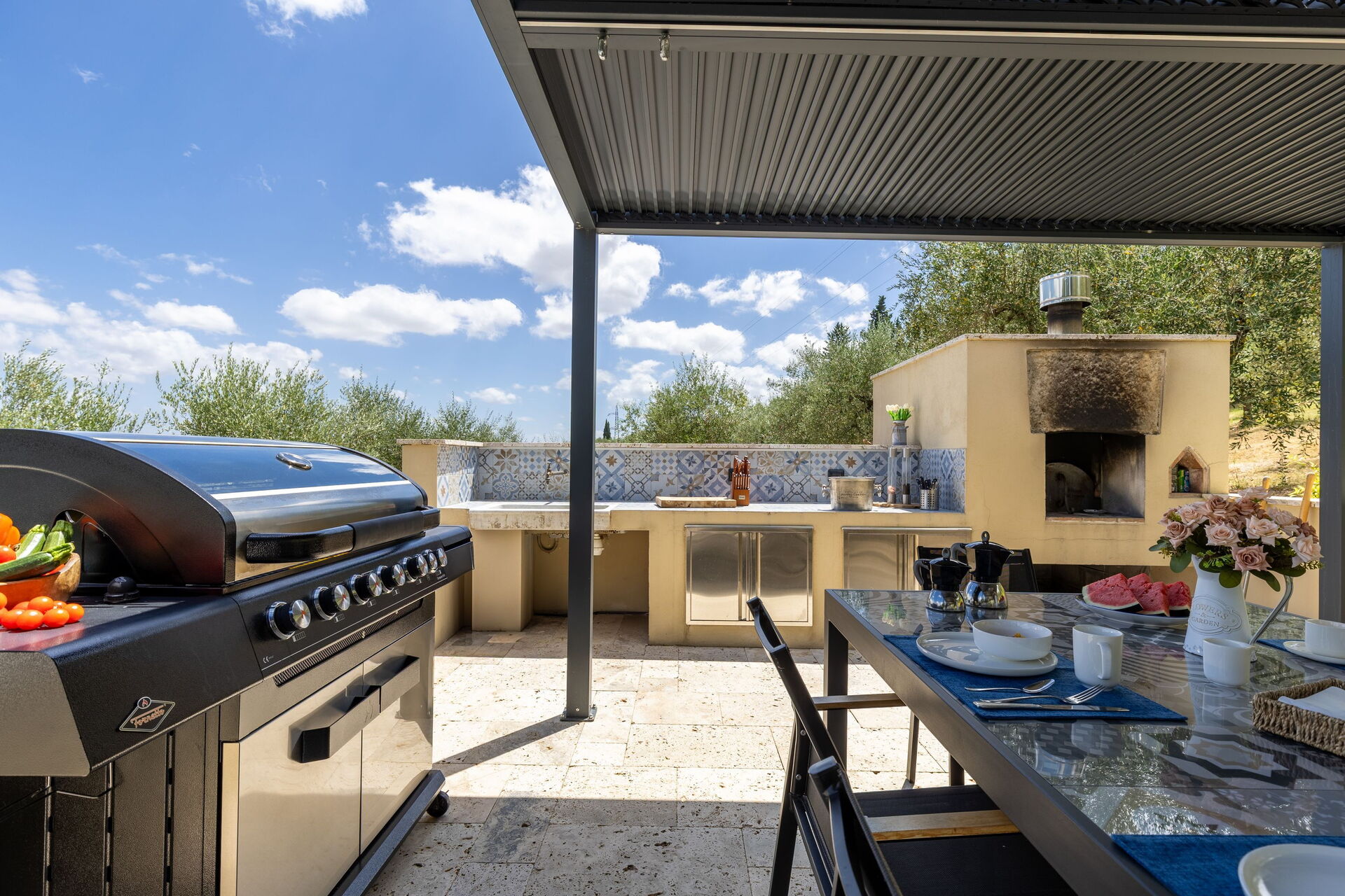 - buiten eetgedeelte met tafel, stoelen, houtoven en barbecue