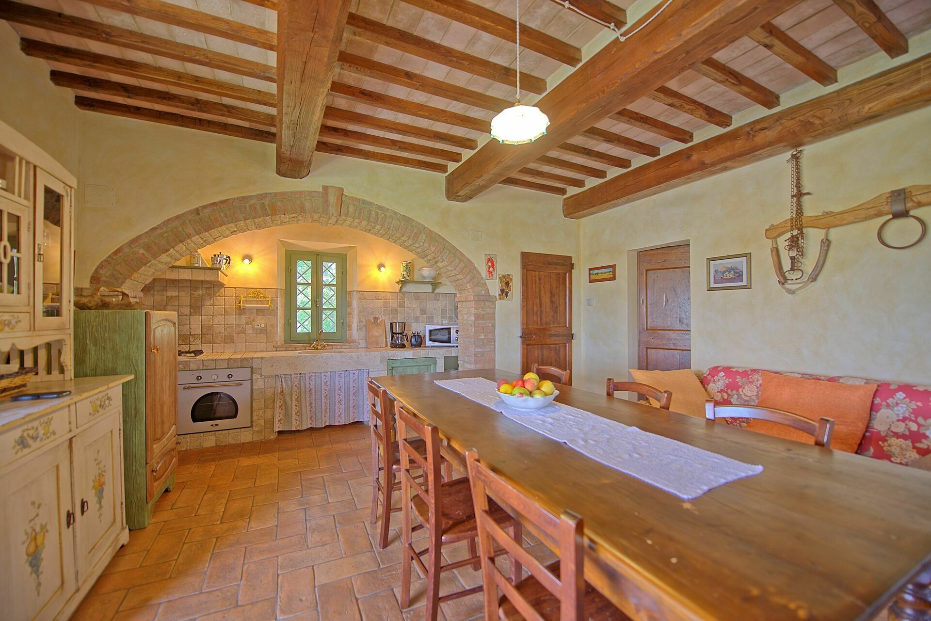 Het huis is kundig gerestaureerd met intact houding van de oorspronkelijke architectonische kenmerken en omgevormd tot een comfortabel landhuis, smaakvol en in typisch Toscaanse stijl ingericht.