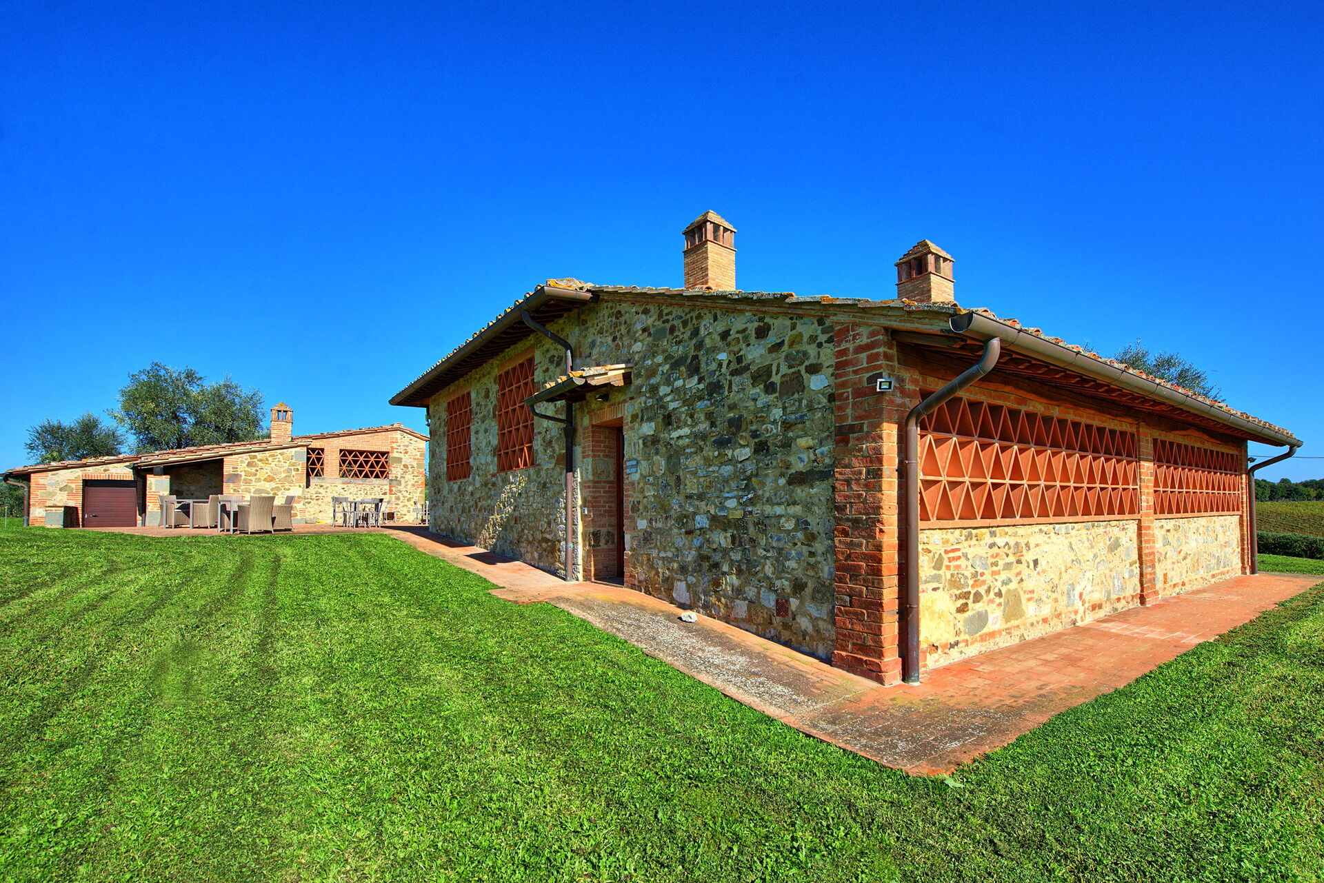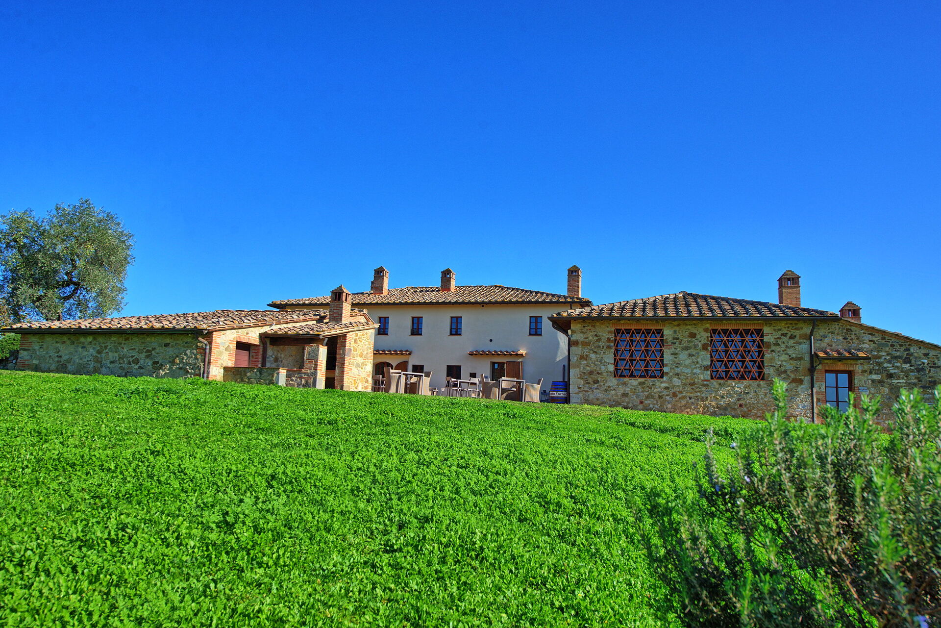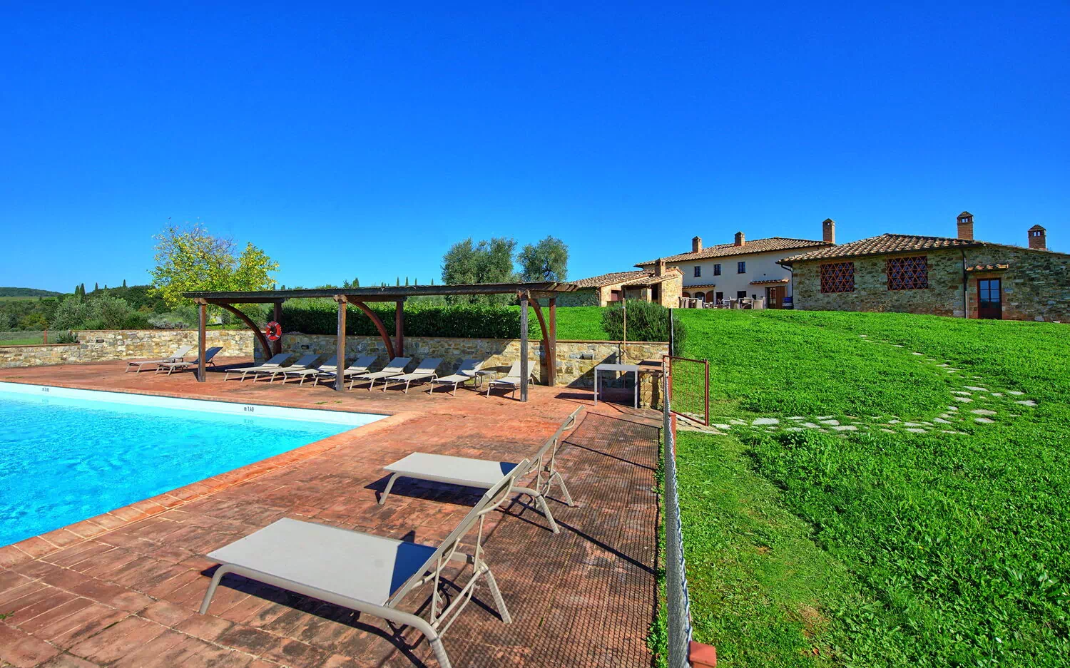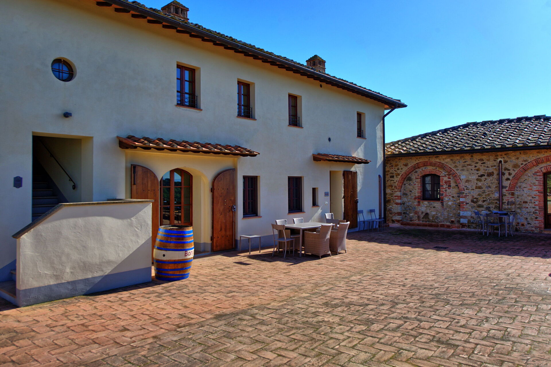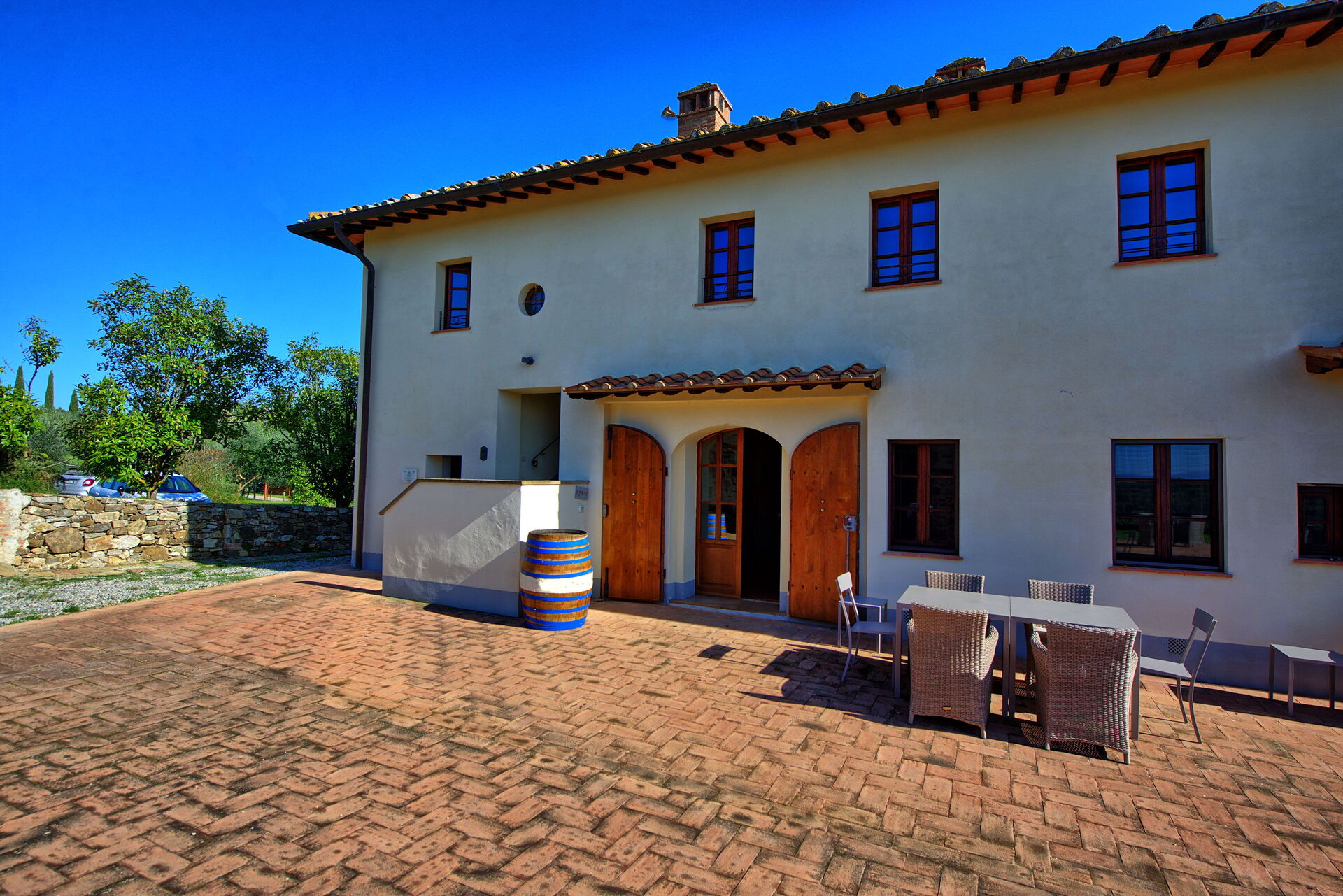 Antiek boerenhuis met bijgebouw gelegen midden op een beroemd wijndomein waar wijn en olijfolie geproduceerd worden. Het huis is recentelijk zeer smaakvol gerestaureerd en onderverdeeld in 6 comfortabele appartementen die landelijk zijn ingericht met tevens enige antieke stukken. De ligging, tussen wijn- en olijfboomgaarden, is rustig en hoog boven de Chianti heuvels. Vanaf het huis heeft men een schitterend panoramisch uitzicht tot aan de stad Siena en er is een grote zeer verzorgde tuin (6000 m2) met zwembad (overloop-effect) voor gemeenschappelijk gebruik van de gasten van de zes appartementen.