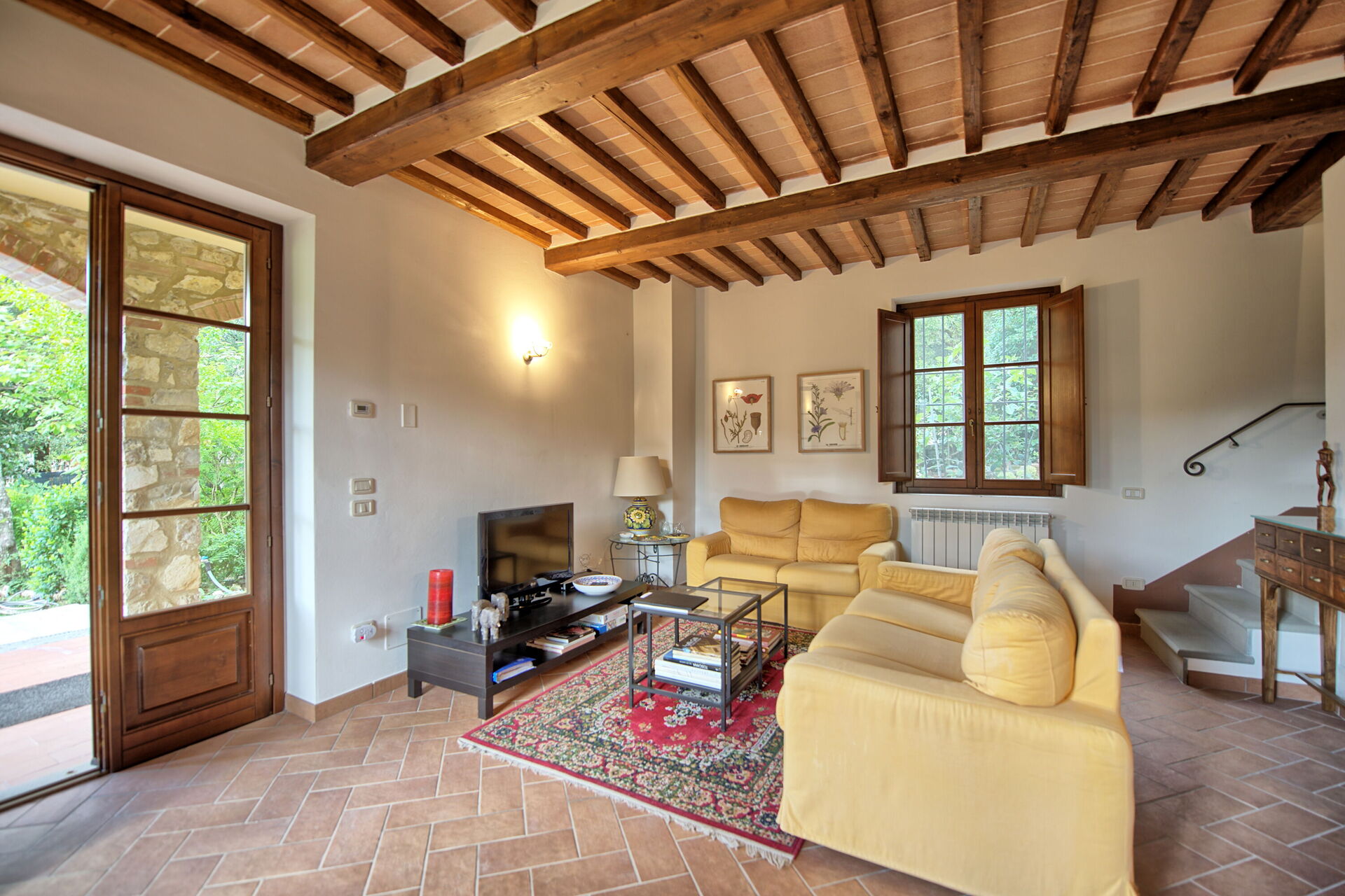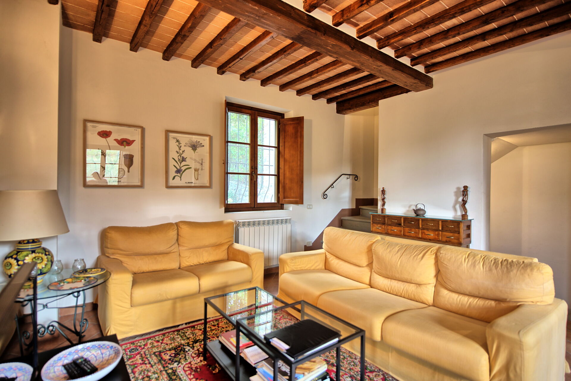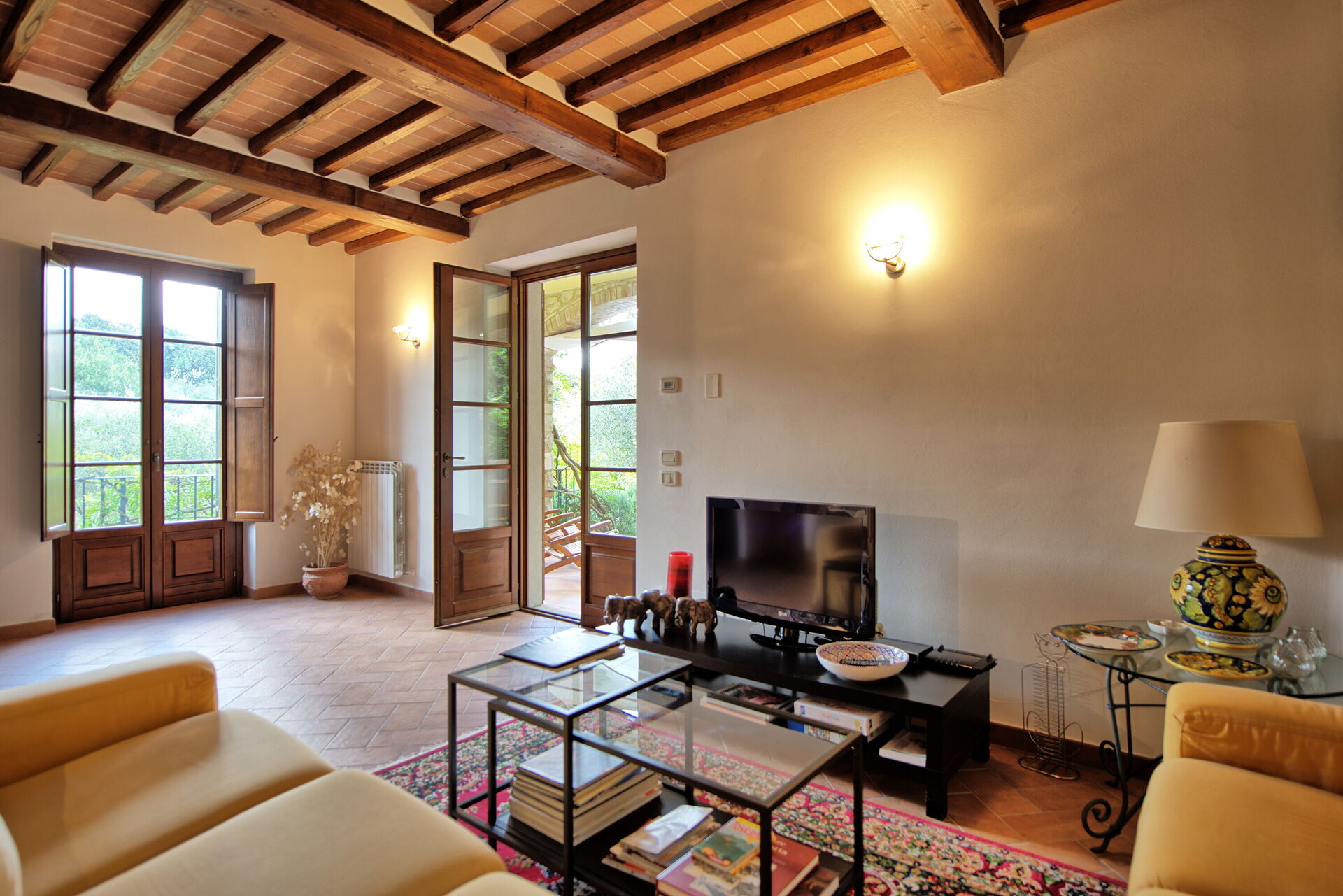 Het interieur biedt alle voorzieningen en is smaakvol ingericht, met elementen die kenmerkend zijn voor de landhuizen in dit gebied van Toscane.