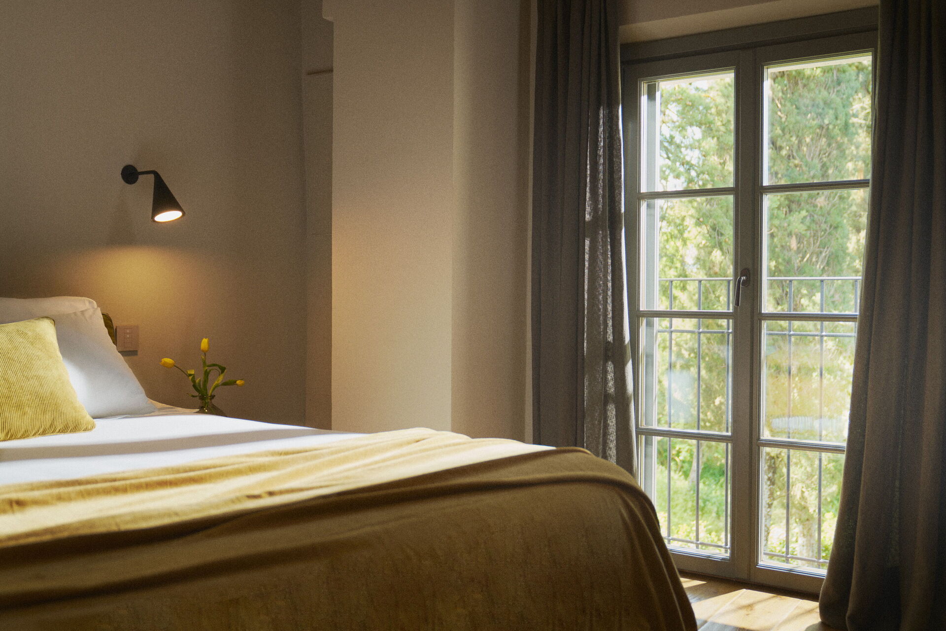 Er is een deur tussen twee van de vier slaapkamers op de eerste verdieping die geopend kan worden om twee aangrenzende kamers te creëren.