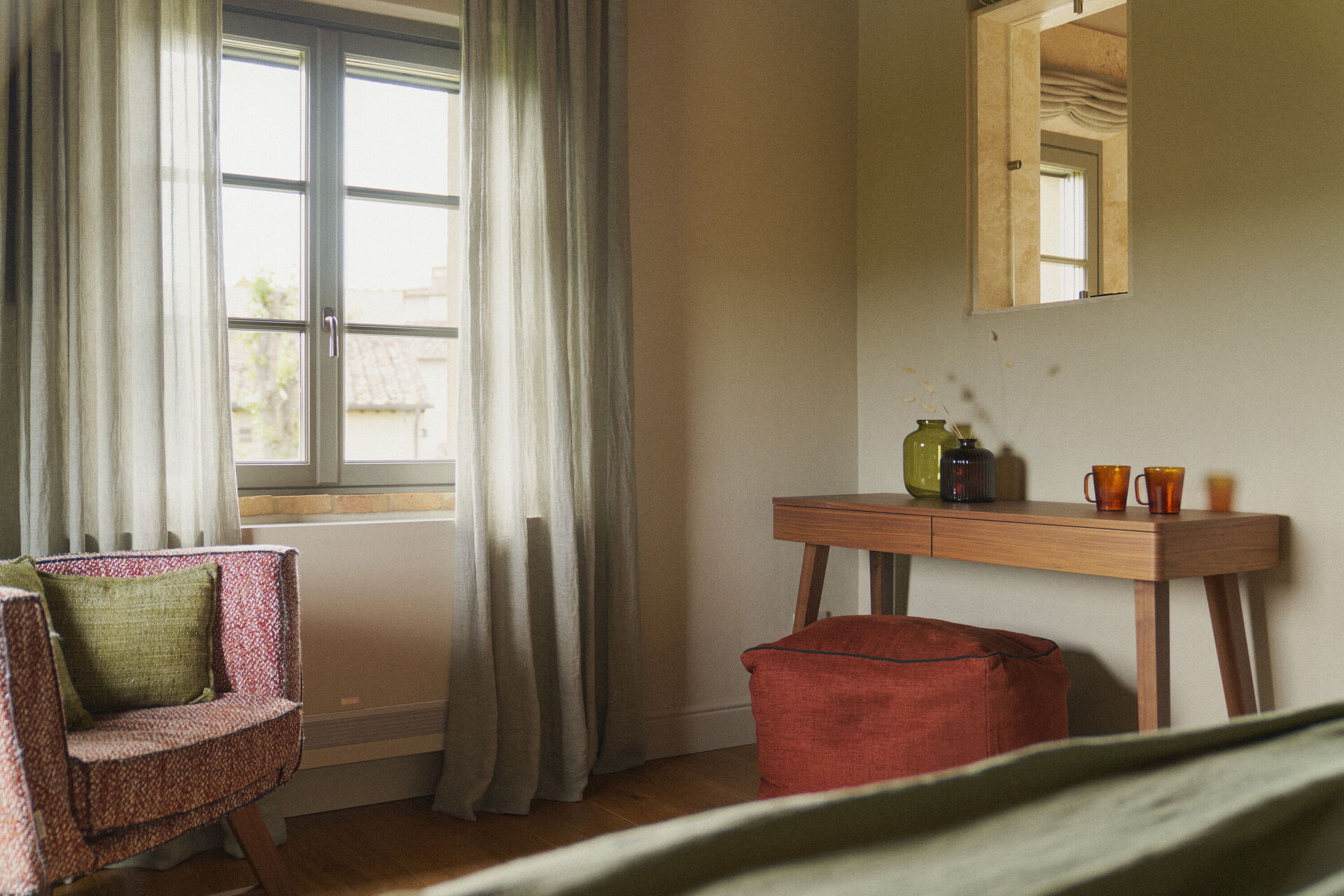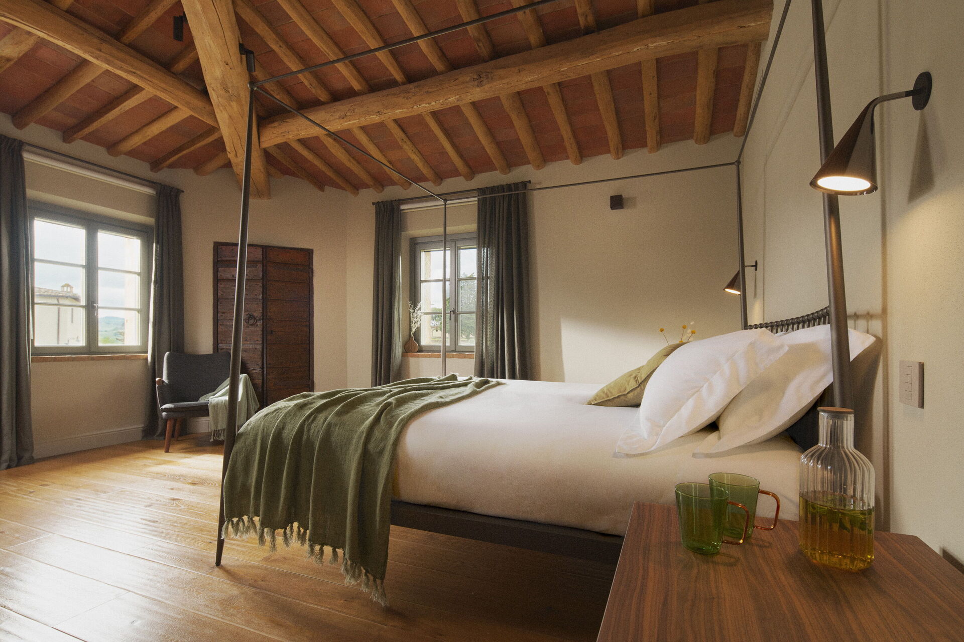 Op het terrein is er een grote, goed onderhouden tuin en een zithoek waar gasten kunnen genieten van panoramische uitzichten op de Chianti heuvels en de beroemde torens van San Gimignano.