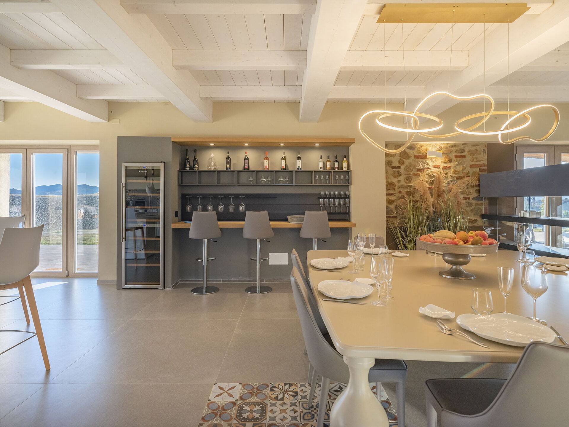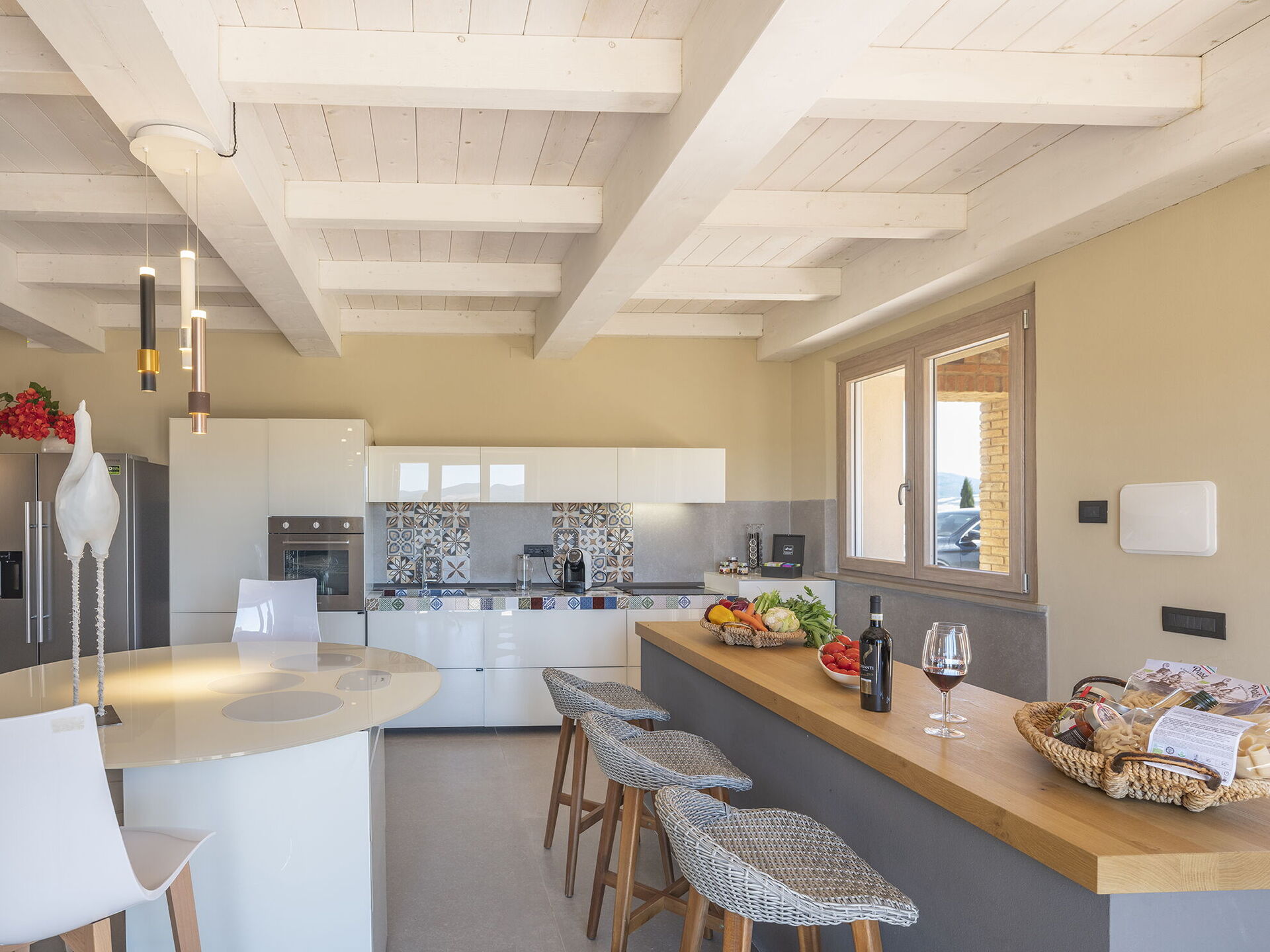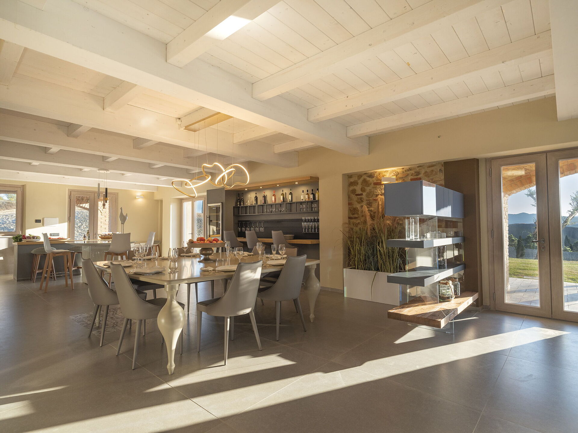 Binnen is de moderne villa elegant ingericht; buiten biedt het grote ruimtes om te ontspannen en plezier te maken, zoals het grote zwembad met zonneterras, een mooie barbecue, een vuurplaats en uitgestrekte groene ruimtes.