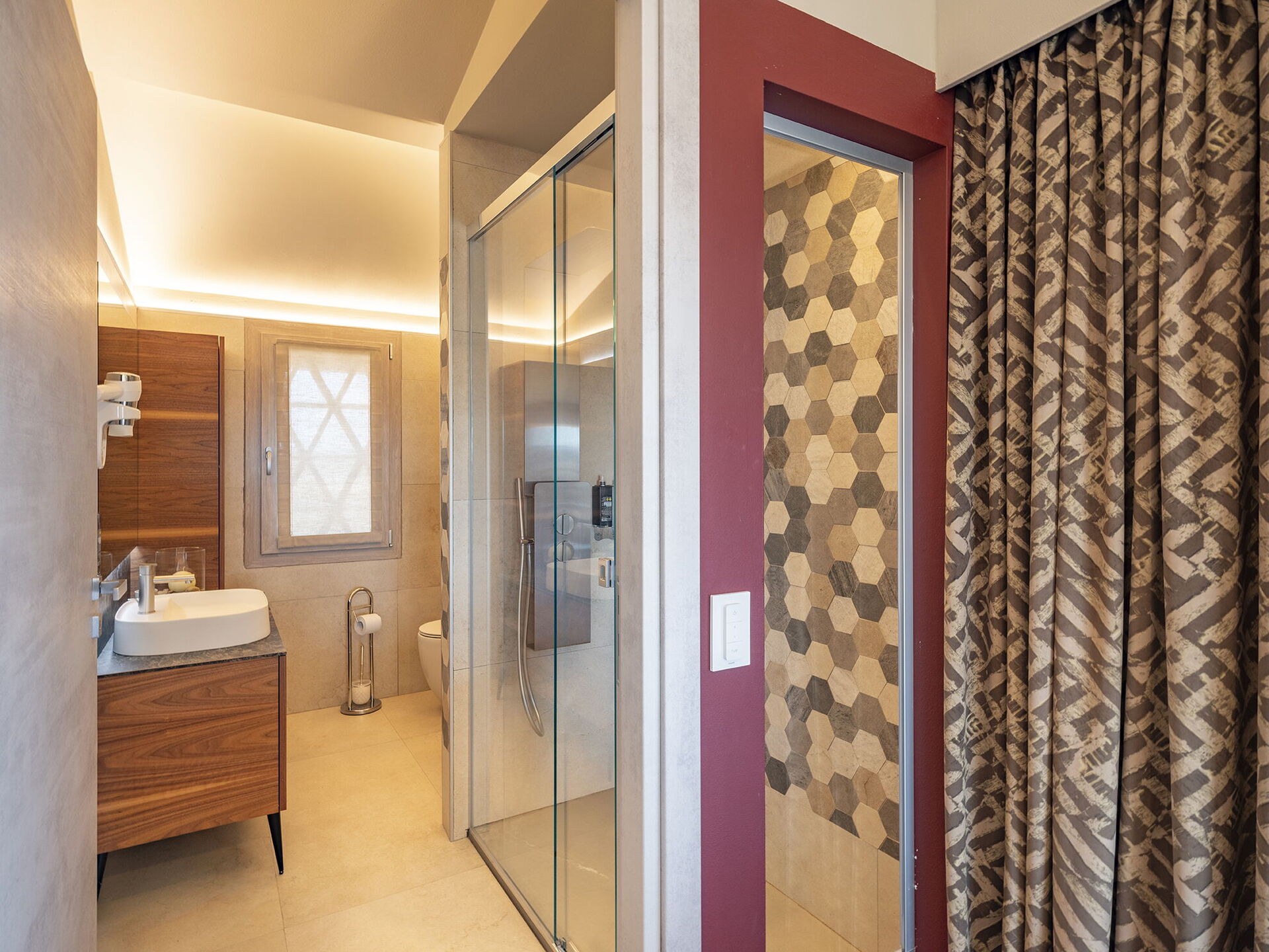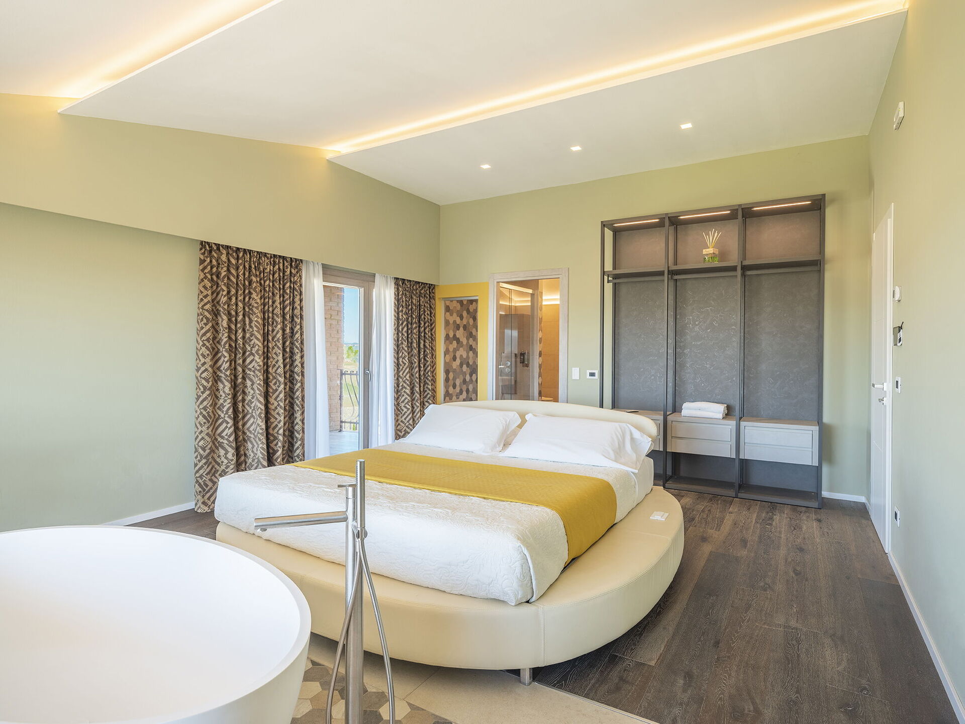 1 tweepersoonskamer met ligbad in de kamer en een eigen badkamer met douche; toegang tot privé terras;
