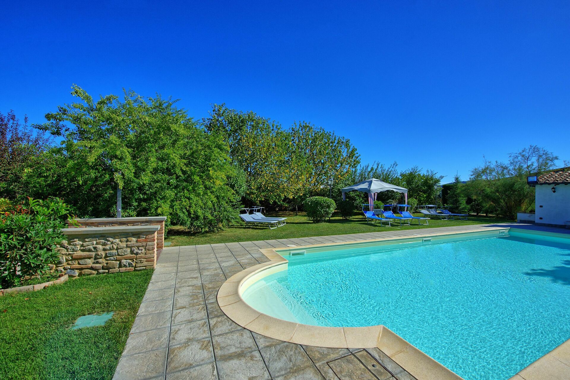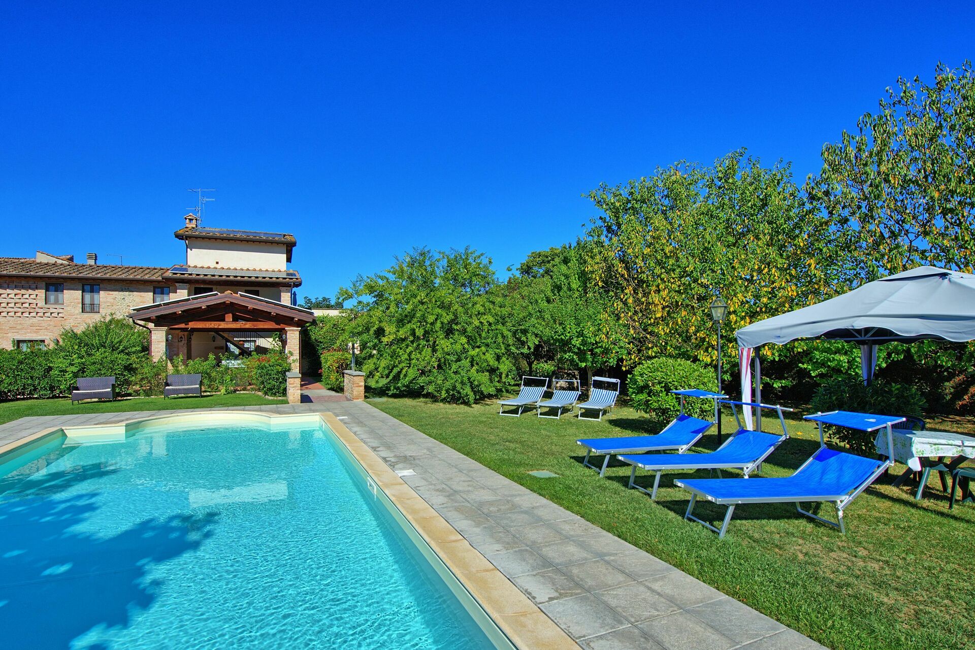 Groot vakantiehuis op het platteland met privé zwembad en een goed onderhouden tuin op de grens tussen Toscane en Umbrië.