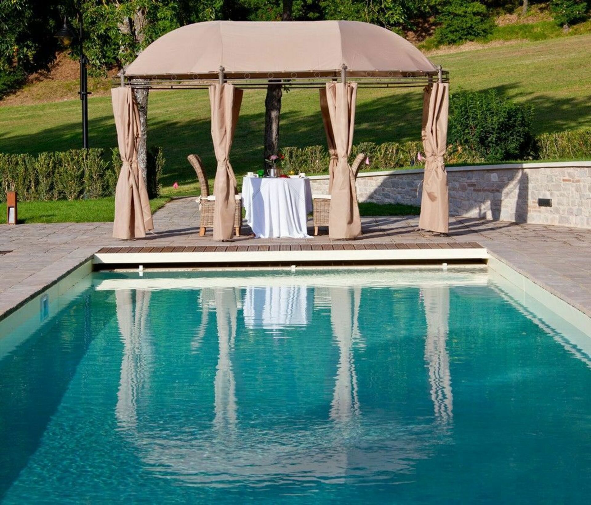 Deze verfijnde en goed onderhouden villa is tevens ideaal voor de organisatie van bijzondere evenementen en bruiloften (er zijn mooie kamers beschikbaar die samen met de villa gehuurd kunnen worden voor speciale evenementen).