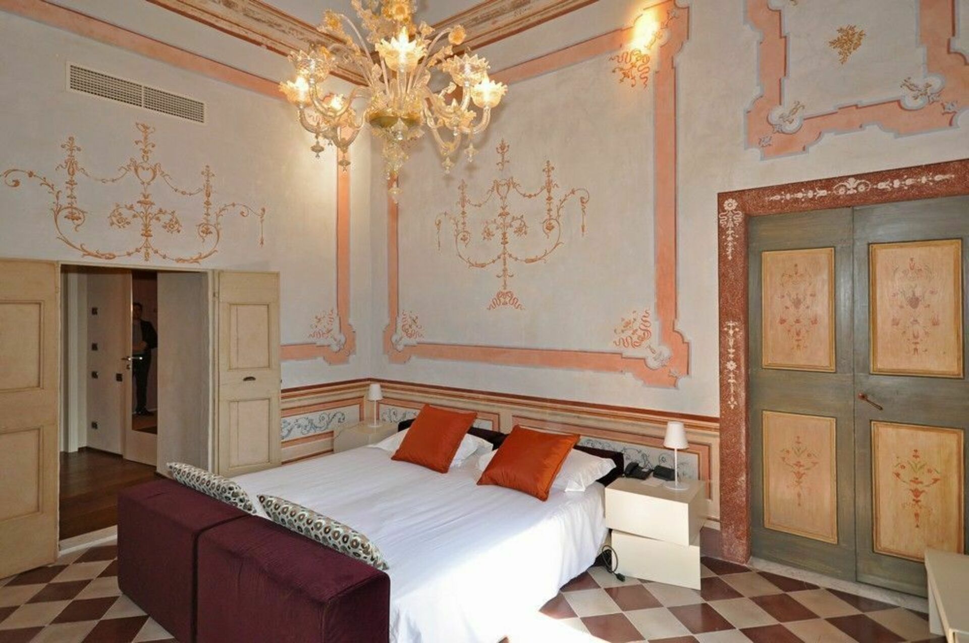 1° verdieping (ook bereikbaar met de lift): suite met woonkamer en slaapkamer met tweepersoonsbed met eigen badkamer met bad/douche, slaapkamer met tweepersoonsbed met eigen badkamer met bad/douche, slaapkamer met tweepersoonsbed met eigen badkamer met bad/douche, slaapkamer met tweepersoonsbed met eigen badkamer met douche, slaapkamer met tweepersoonsbed met eigen badkamer met bad, slaapkamer met tweepersoonsbed met eigen badkamer met douche, slaapkamer met tweepersoonsbed met eigen badkamer met bad/douche, slaapkamer met tweepersoonsbed met eigen badkamer met douche, keukenhoek met 2 elektrische kookplaten, ijskast en vriezer, toegang tot een terras, slaapkamer met smal tweepersoonsbed (ook geschikt voor 2 volwassenen) met eigen badkamer met bad/douche (deze kamer kan verbonden worden met de naast gelegen slaapkamer).