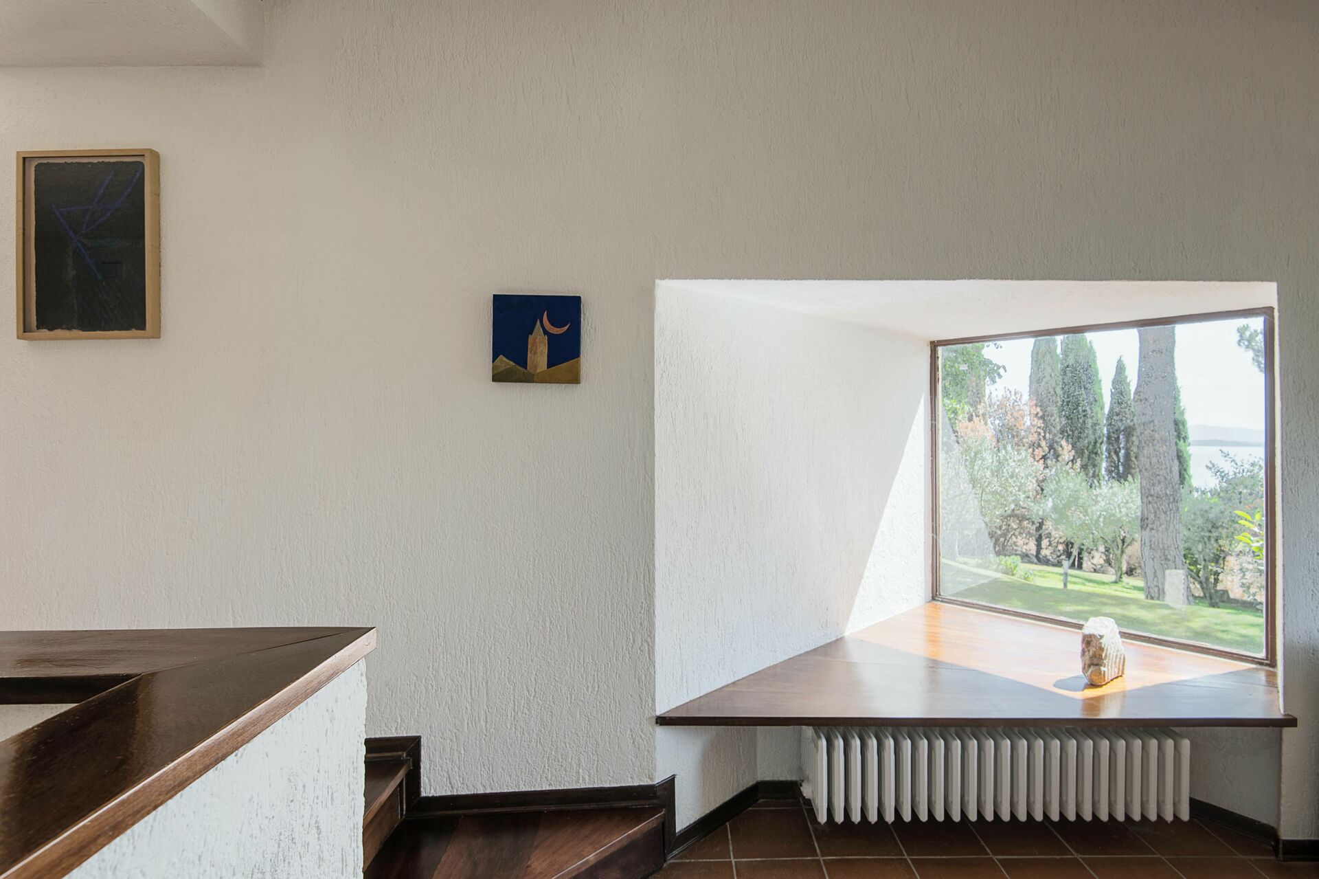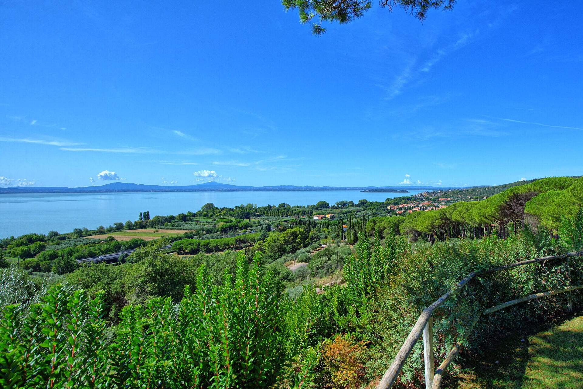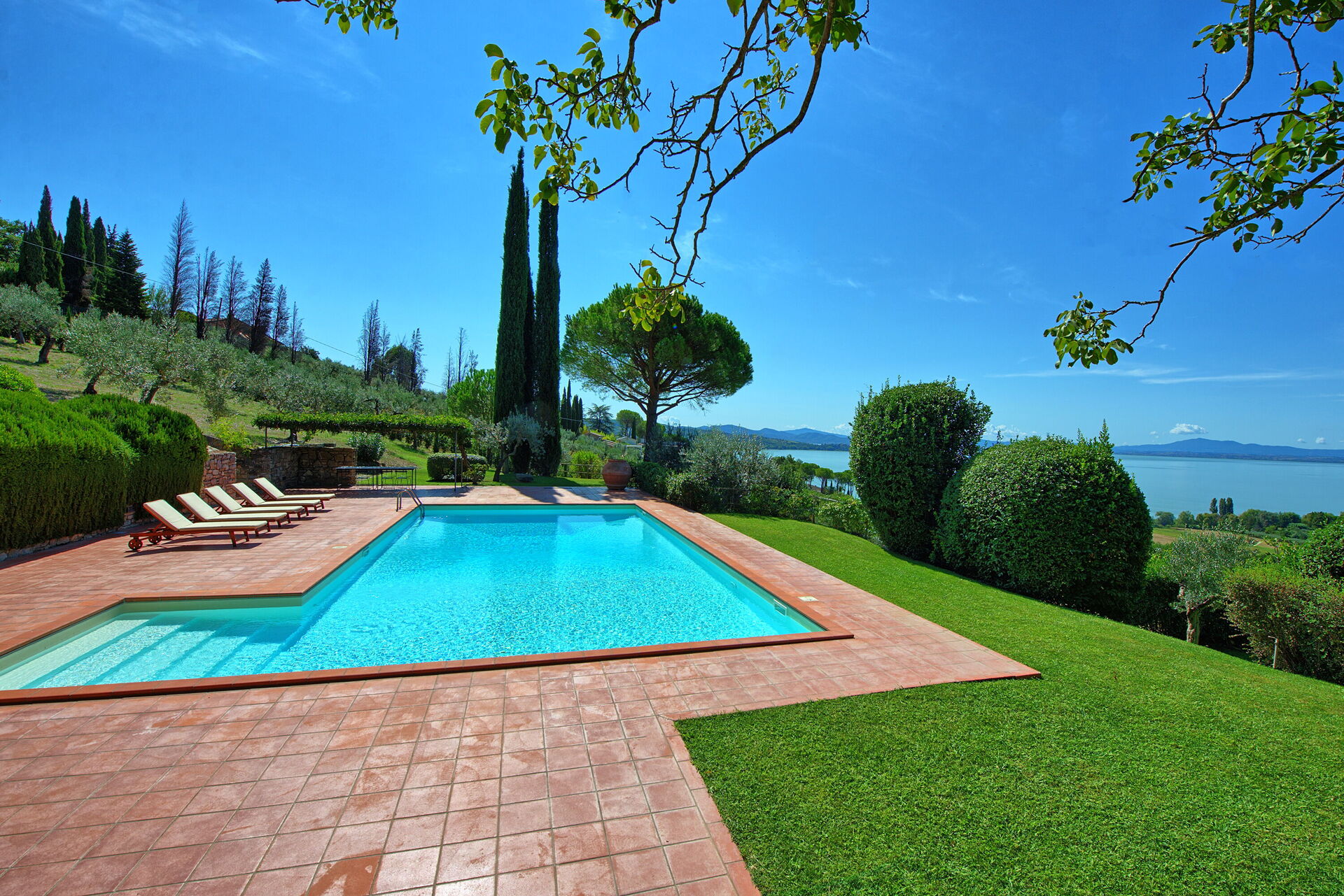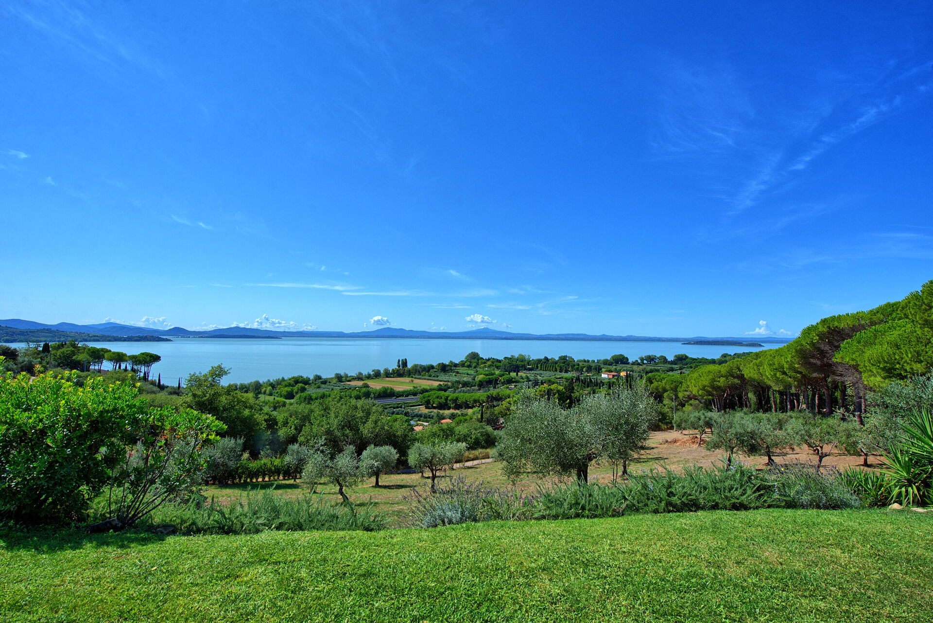 Originele villa gebouwd in 1973 (destijds gepubliceerd in het tijdschrift "Ville en Giardini"), met prachtig grote ramen en terrassen. Gelegen op de helling van een heuvel in de buurt van het meer van Trasimeno, met prachtig uitzicht over dit meer, de eilanden en de glooiende groene heuvels van Umbrië in de verte. Het interieur is gastvrij en in jaren 70 stijl ingericht (de onderste verdieping is eenvoudiger). Buiten is een grote terrasvormige tuin met zwembad en een mooie pergola met barbecue. Deze villa ligt op de grens tussen Toscane en Umbrië en biedt gemakkelijke toegang tot de belangrijkste kunststeden van beide regio's zoals Perugia, Assisi, Arezzo, Montepulciano, Cortona en ook het charmante middeleeuwse dorp Passignano. Het meer van Trasimeno (met stranden) ligt op 2 km afstand en biedt de mogelijkheid om te windsurfen, vissen en zeilen. De snelweg die Siena naar Perugia verbindt, ligt op ongeveer 500m van het huis maar is lager gelegen waardoor het geluid nihil is. De toegang tot de woning is via een smalle weg van ca. 1200m welke . De laatste 300 meter is onverhard.