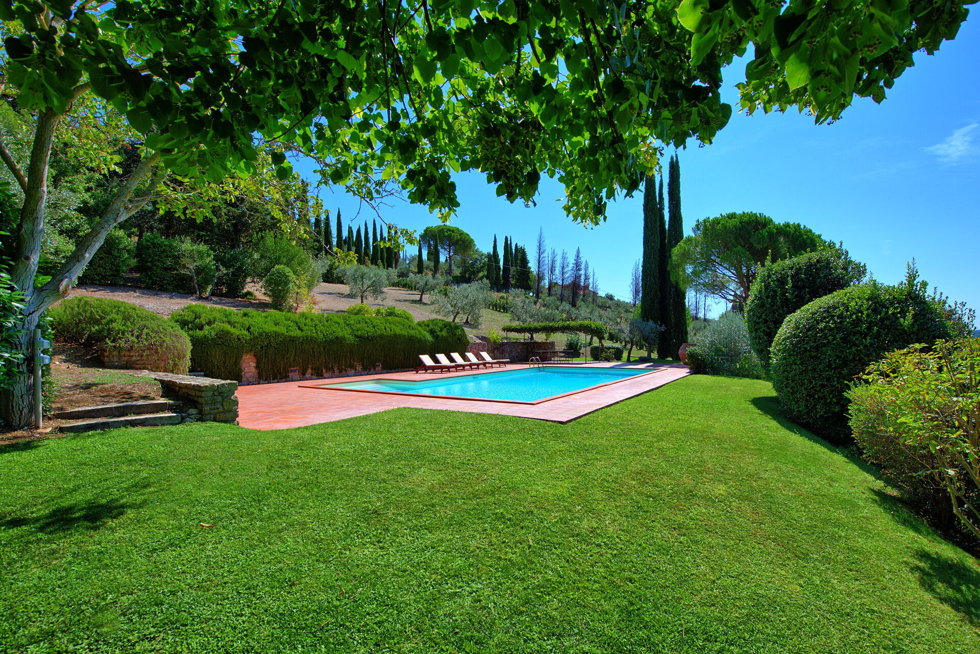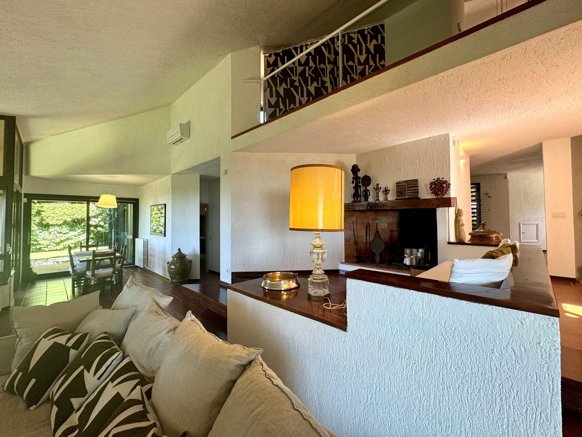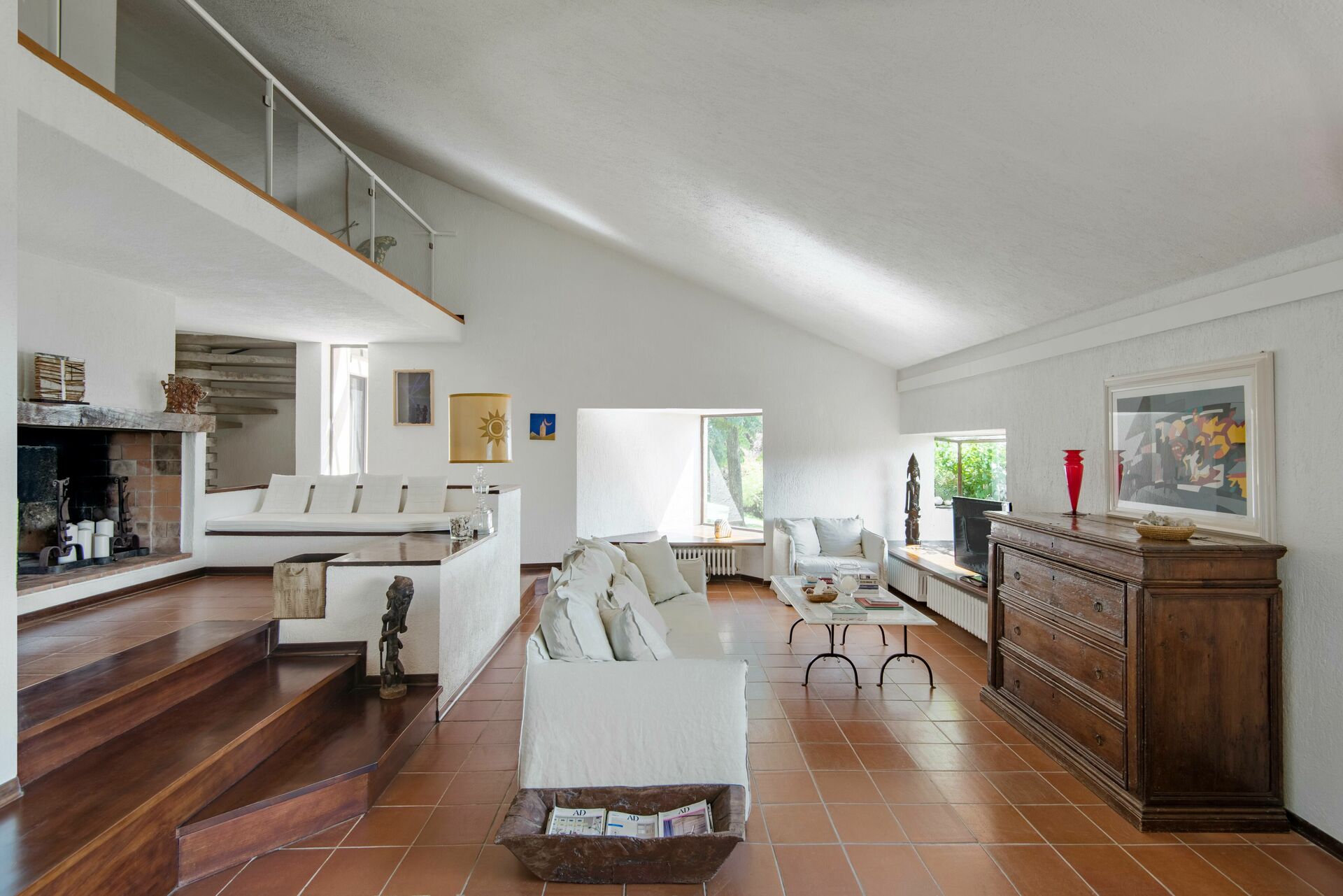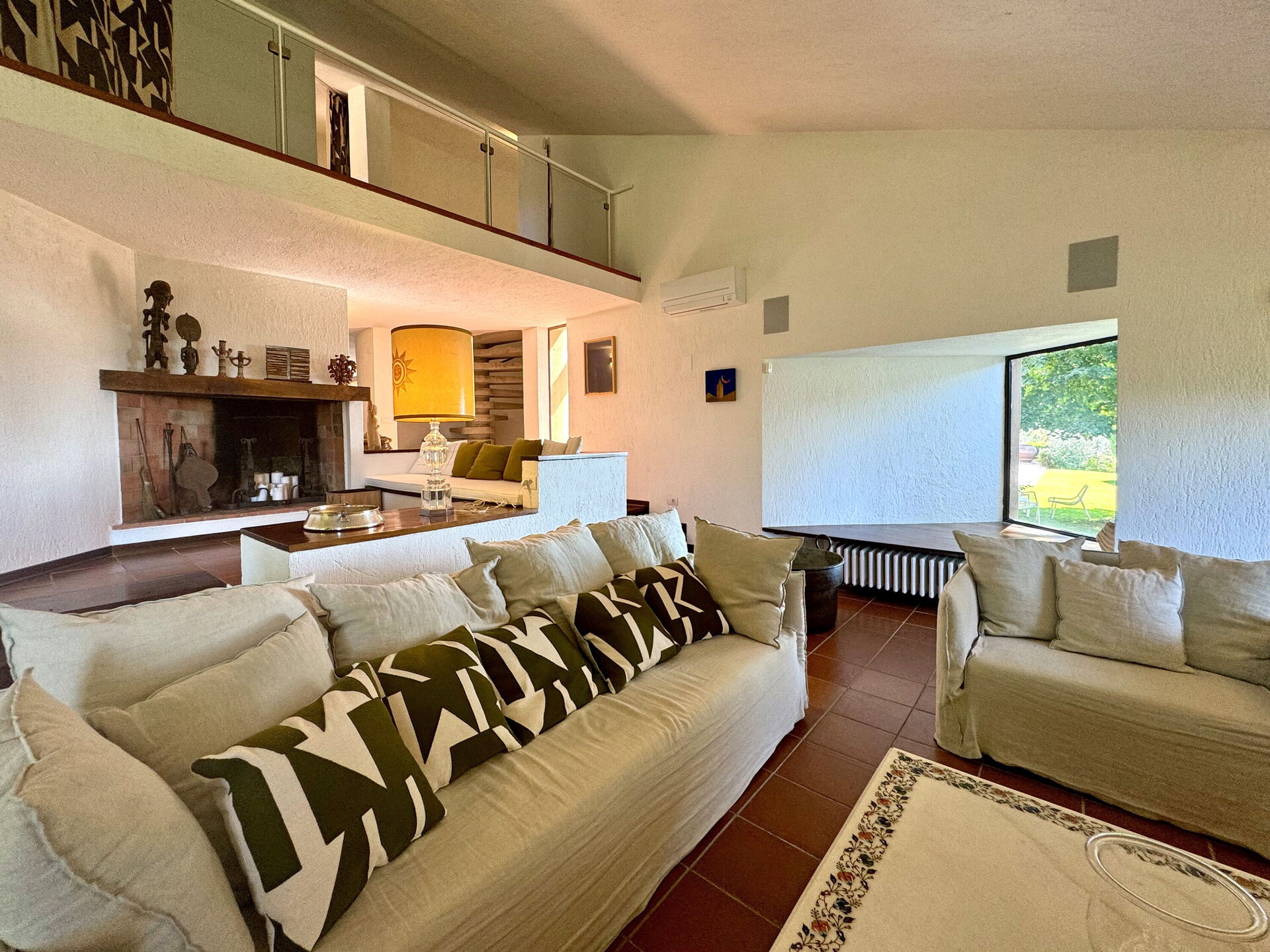 Originele villa gebouwd in 1973 (destijds gepubliceerd in het tijdschrift "Ville en Giardini"), met prachtig grote ramen en terrassen. Gelegen op de helling van een heuvel in de buurt van het meer van Trasimeno, met prachtig uitzicht over dit meer, de eilanden en de glooiende groene heuvels van Umbrië in de verte. Het interieur is gastvrij en in jaren 70 stijl ingericht (de onderste verdieping is eenvoudiger). Buiten is een grote terrasvormige tuin met zwembad en een mooie pergola met barbecue. Deze villa ligt op de grens tussen Toscane en Umbrië en biedt gemakkelijke toegang tot de belangrijkste kunststeden van beide regio's zoals Perugia, Assisi, Arezzo, Montepulciano, Cortona en ook het charmante middeleeuwse dorp Passignano. Het meer van Trasimeno (met stranden) ligt op 2 km afstand en biedt de mogelijkheid om te windsurfen, vissen en zeilen. De snelweg die Siena naar Perugia verbindt, ligt op ongeveer 500m van het huis maar is lager gelegen waardoor het geluid nihil is. De toegang tot de woning is via een smalle weg van ca. 1200m welke . De laatste 300 meter is onverhard.