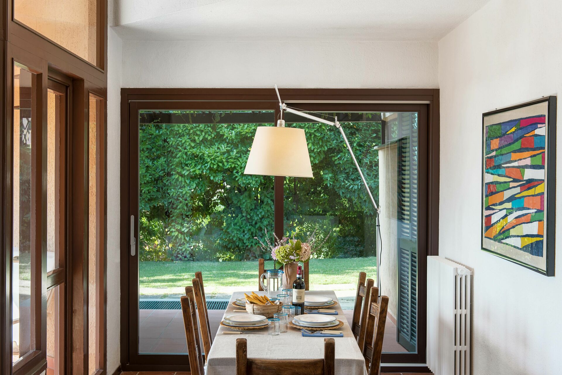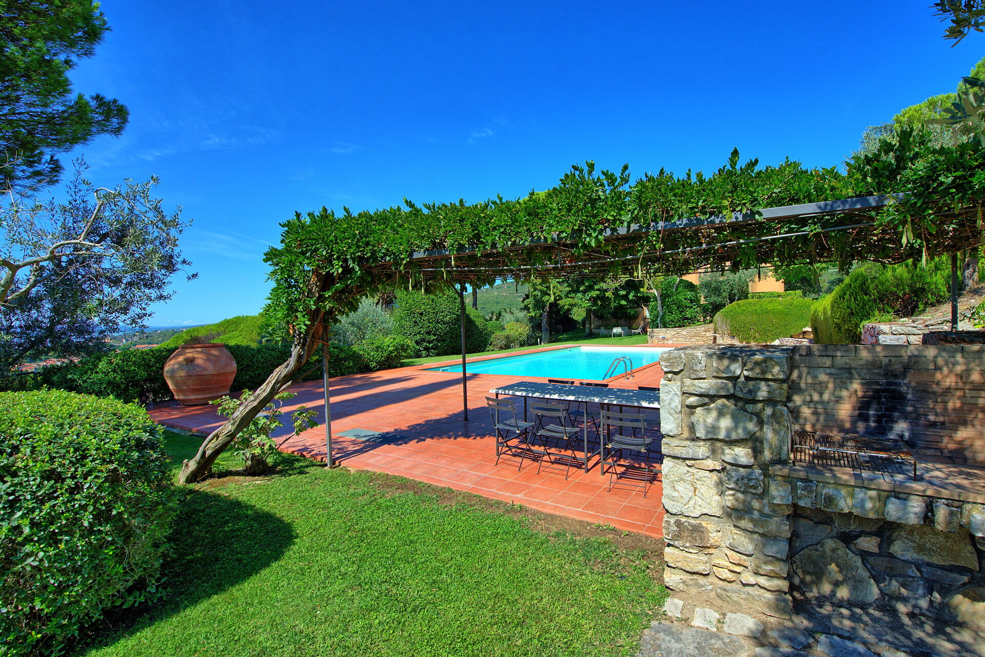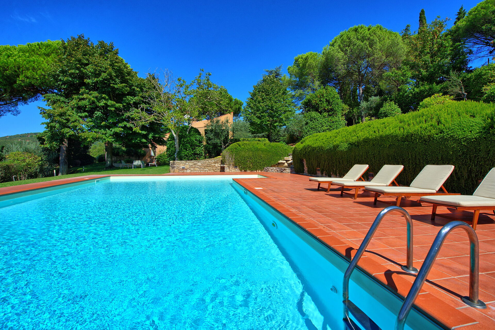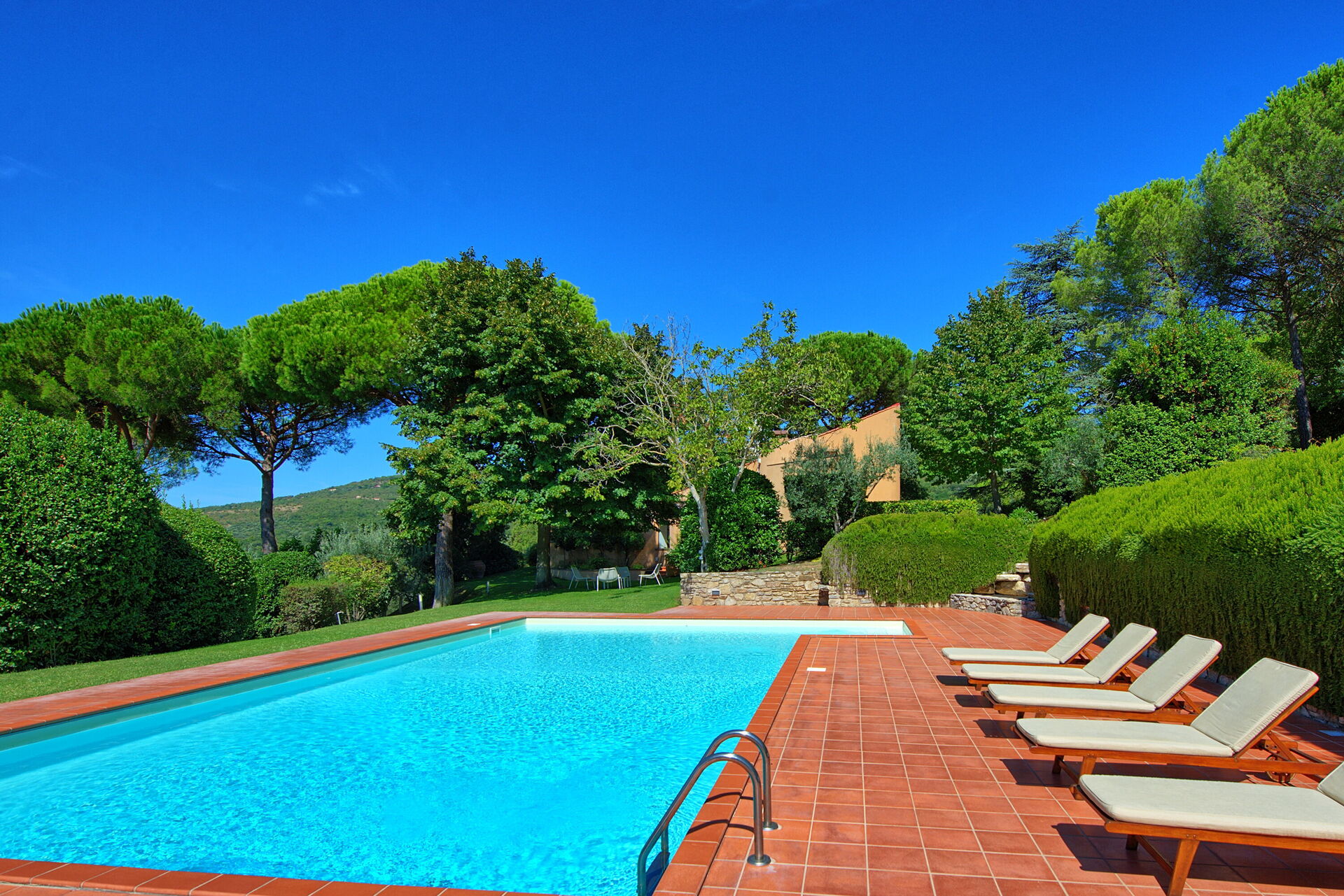 Originele villa gebouwd in 1973 (destijds gepubliceerd in het tijdschrift "Ville en Giardini"), met prachtig grote ramen en terrassen. Gelegen op de helling van een heuvel in de buurt van het meer van Trasimeno, met prachtig uitzicht over dit meer, de eilanden en de glooiende groene heuvels van Umbrië in de verte. Het interieur is gastvrij en in jaren 70 stijl ingericht (de onderste verdieping is eenvoudiger). Buiten is een grote terrasvormige tuin met zwembad en een mooie pergola met barbecue. Deze villa ligt op de grens tussen Toscane en Umbrië en biedt gemakkelijke toegang tot de belangrijkste kunststeden van beide regio's zoals Perugia, Assisi, Arezzo, Montepulciano, Cortona en ook het charmante middeleeuwse dorp Passignano. Het meer van Trasimeno (met stranden) ligt op 2 km afstand en biedt de mogelijkheid om te windsurfen, vissen en zeilen. De snelweg die Siena naar Perugia verbindt, ligt op ongeveer 500m van het huis maar is lager gelegen waardoor het geluid nihil is. De toegang tot de woning is via een smalle weg van ca. 1200m welke . De laatste 300 meter is onverhard.